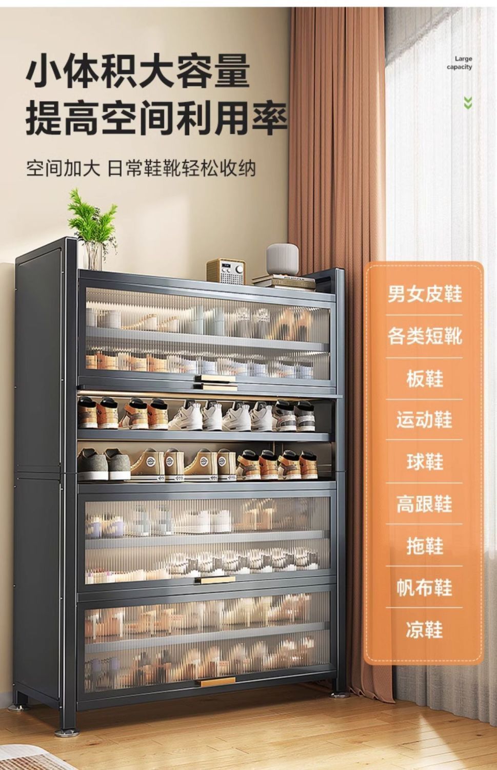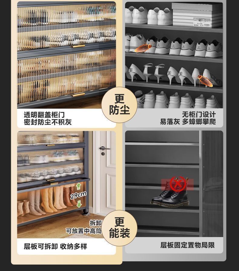 加厚款钢制鞋柜入户门走廊防潮鞋架清仓翻盖大容量铁艺定制鞋柜【