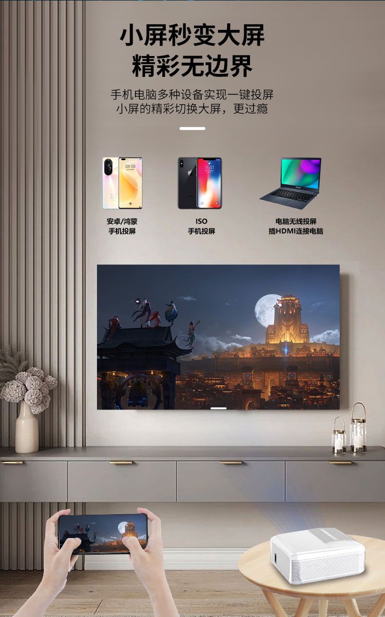 4K解码【自动对焦】投影仪家用高清超清卧室出租屋手机投屏投影机