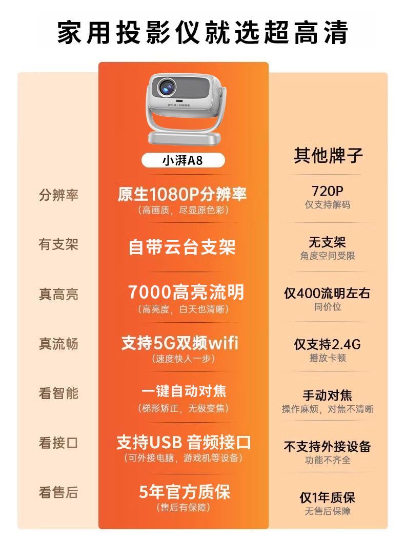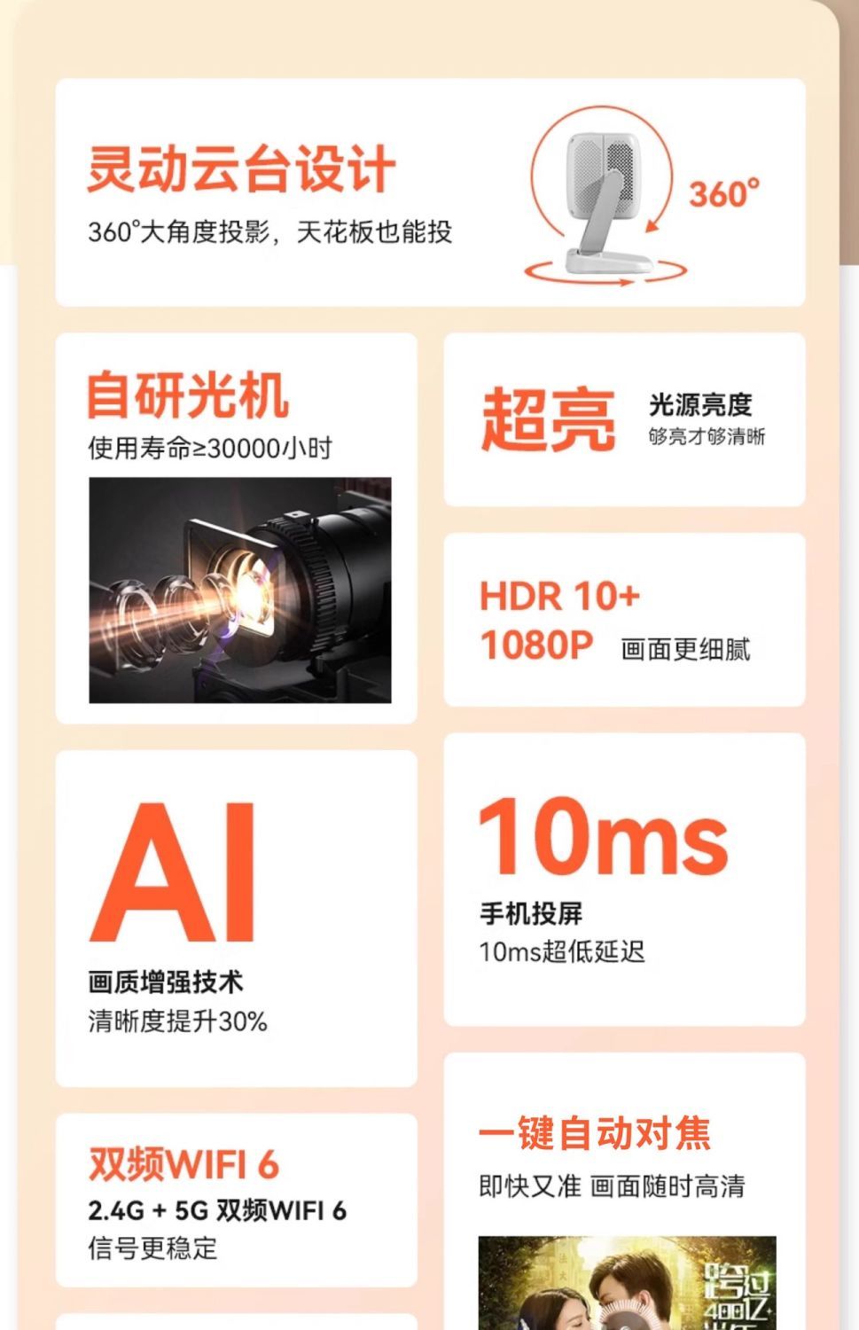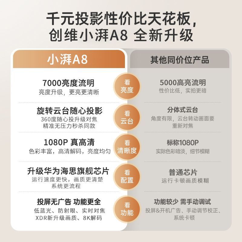 创维小湃2025新款5G云台投影仪超高清投墙卧室学生宿舍迷你投影机