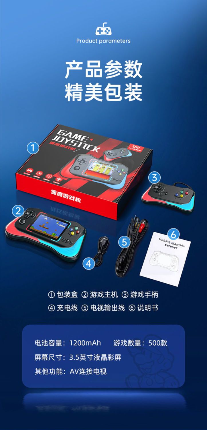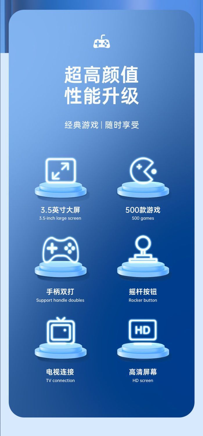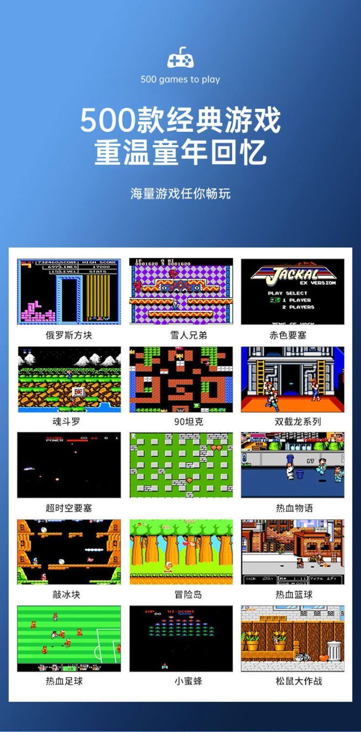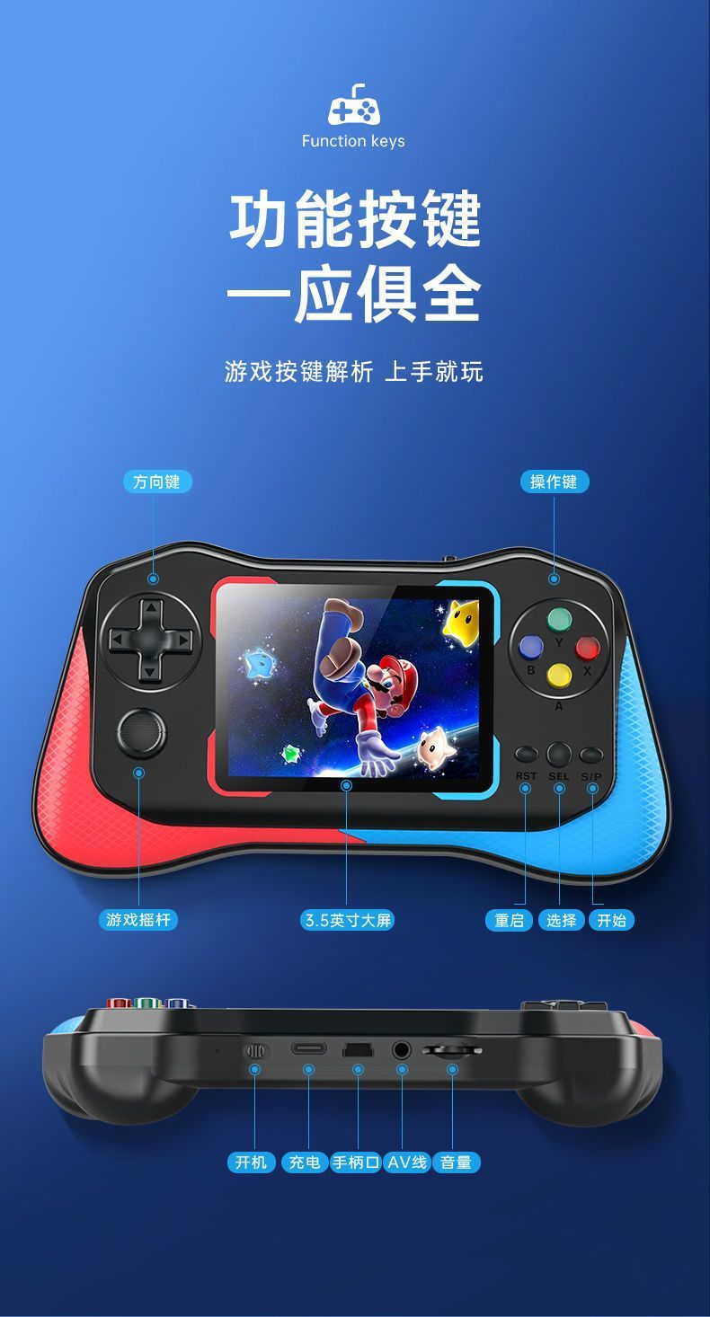 新款摇杆掌上游戏机500款游戏经典怀旧大屏儿童双人usb充电游戏机