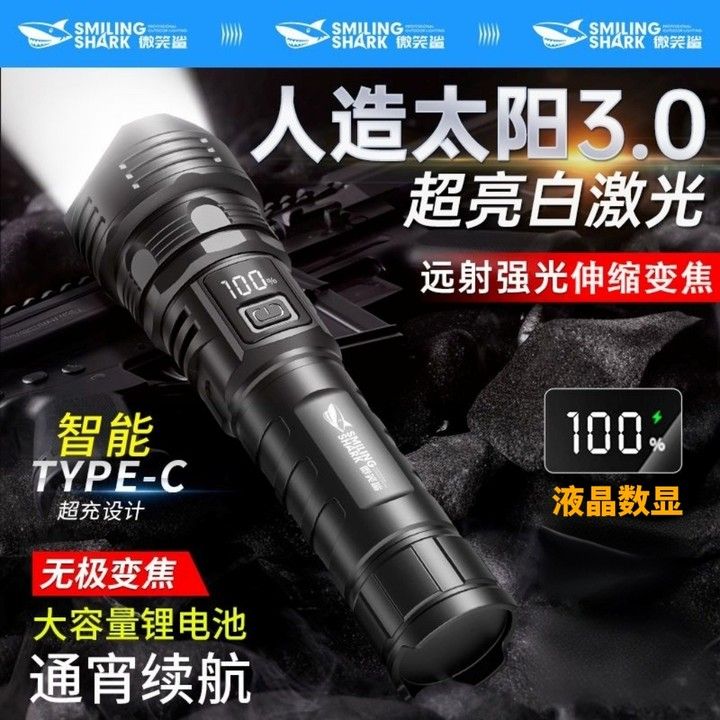 手电筒强光超亮可充电LED户外激光应急超长照明灯续航变焦远射