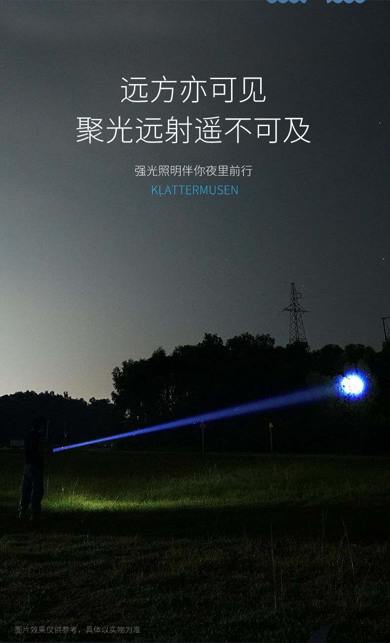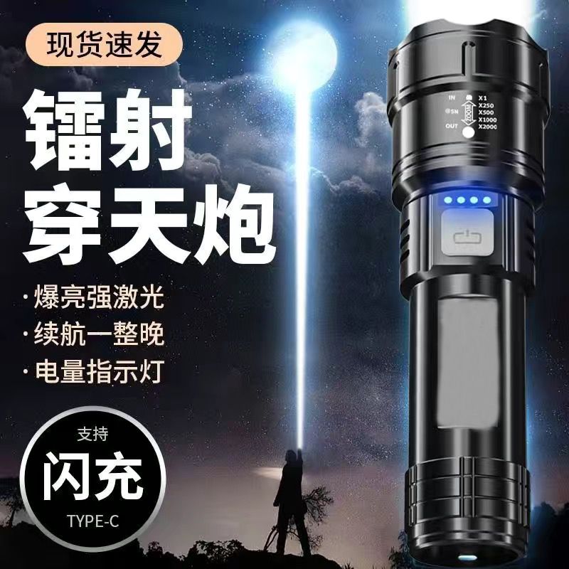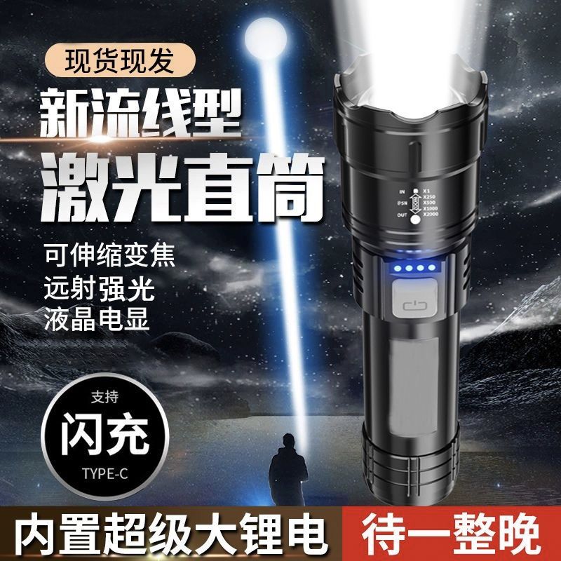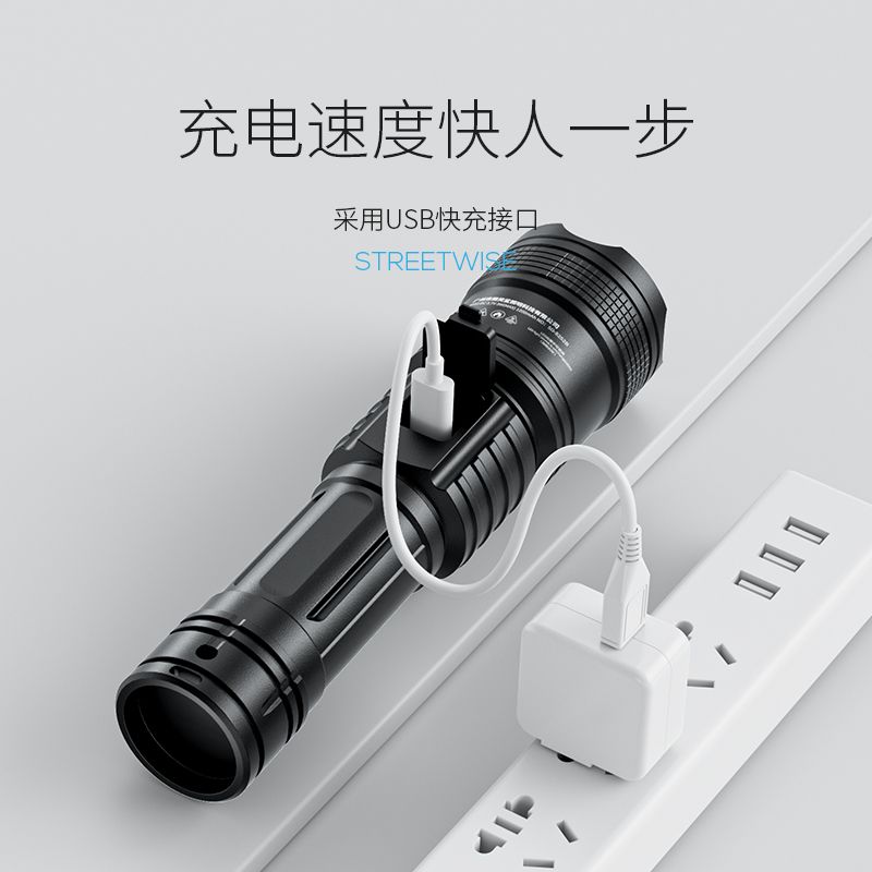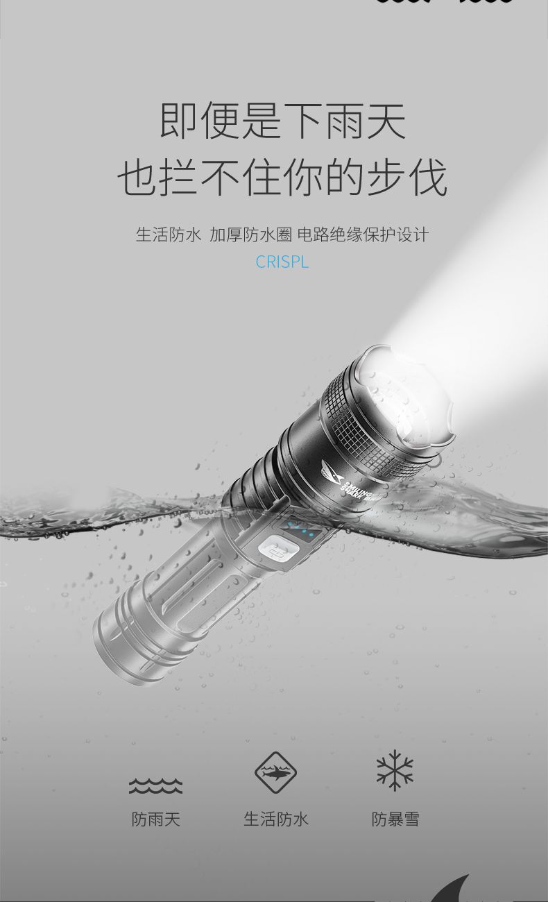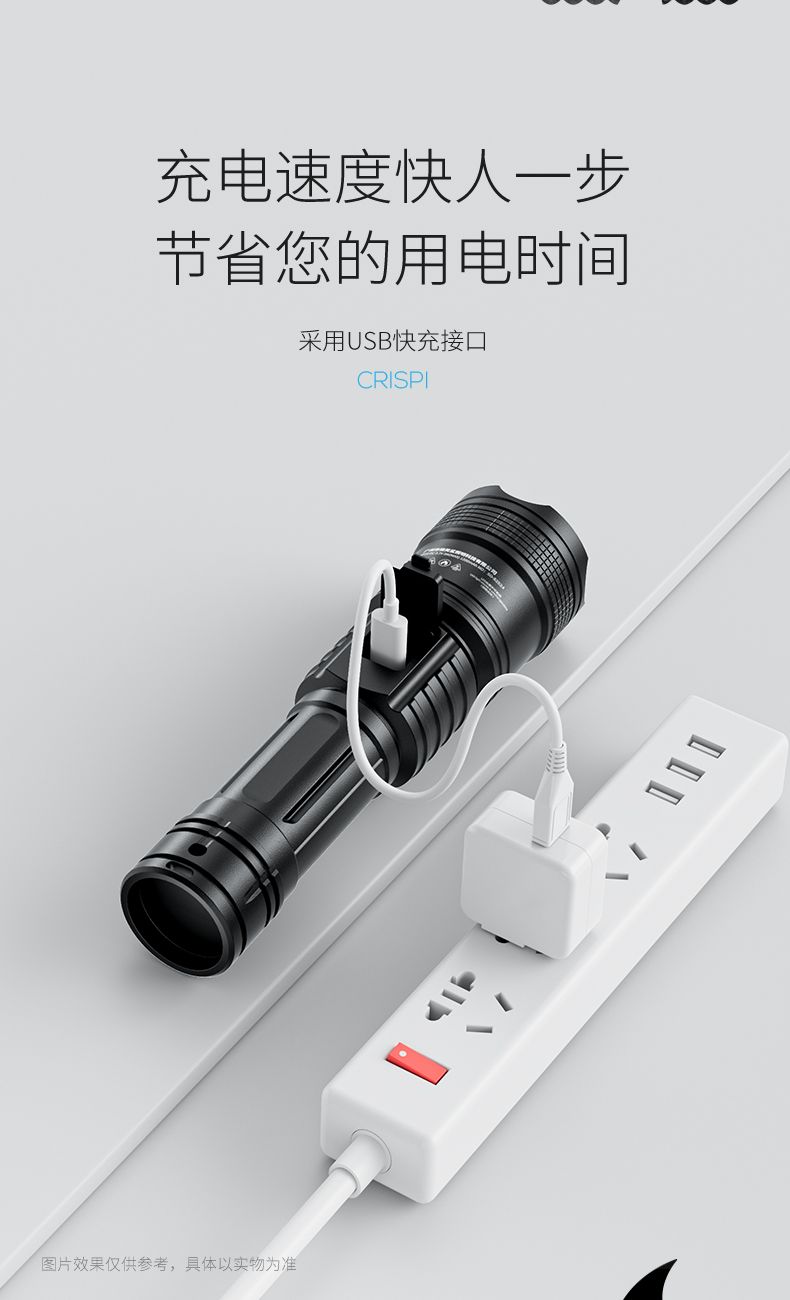 CRISPI手电筒强光可充电超亮户外应急照明灯激光灯续航超长led灯