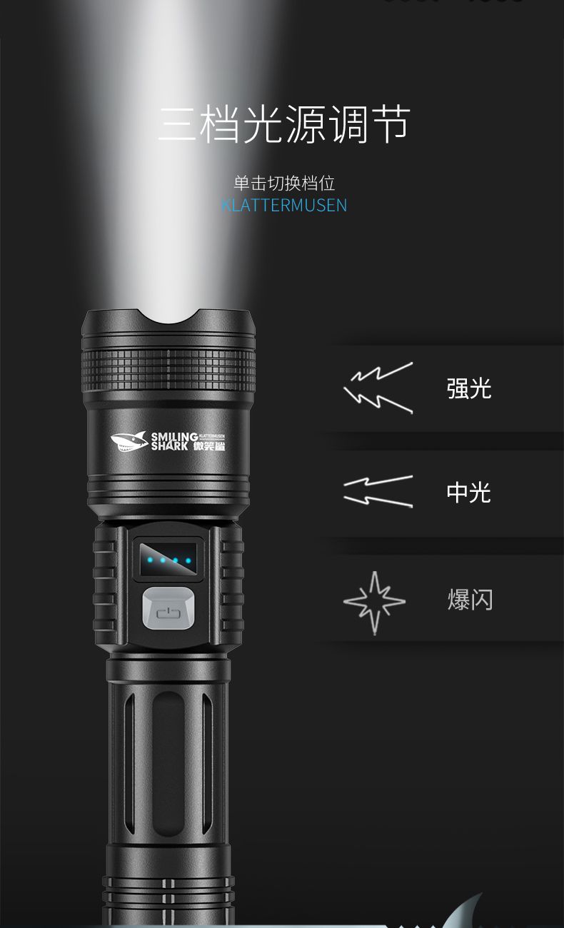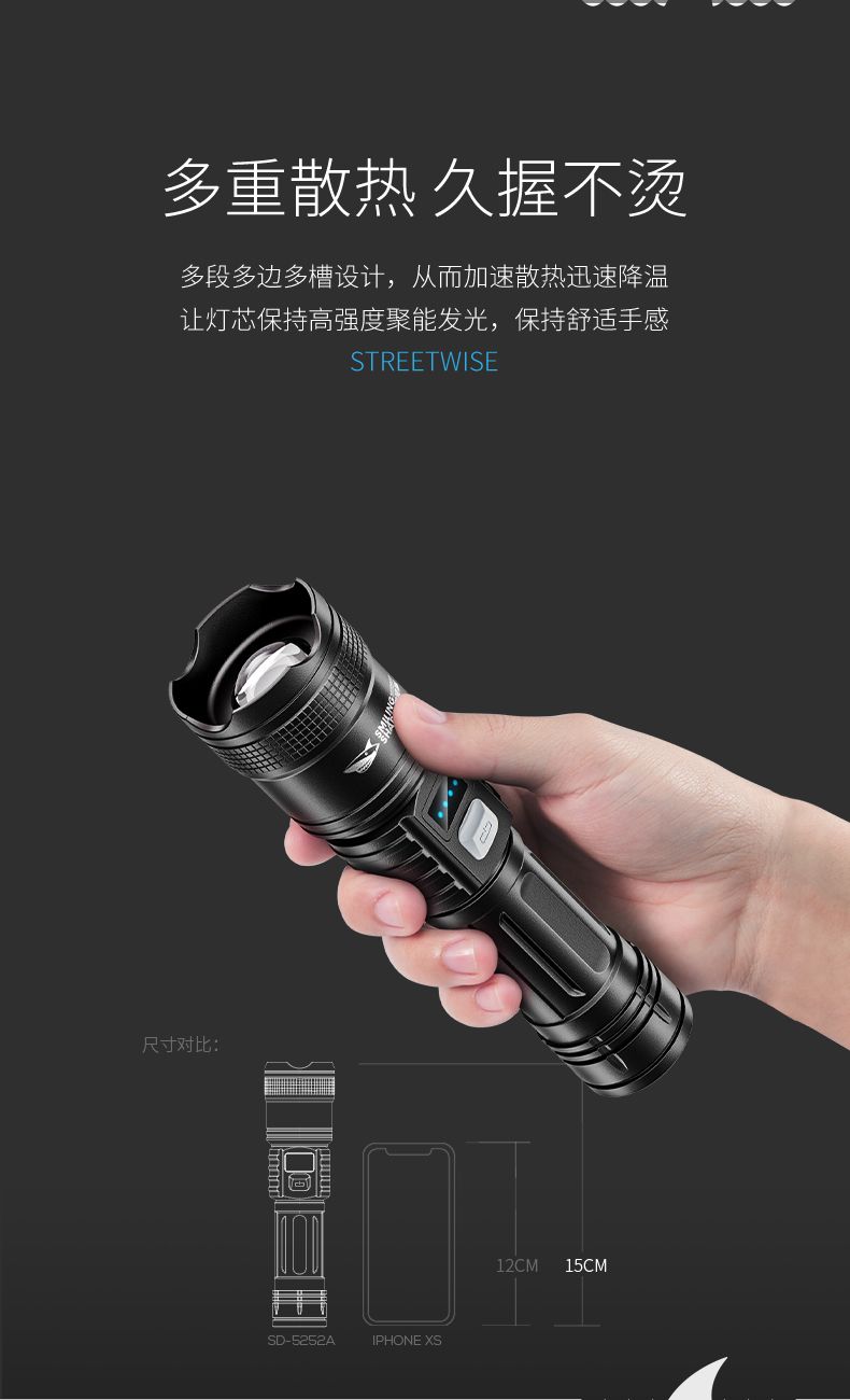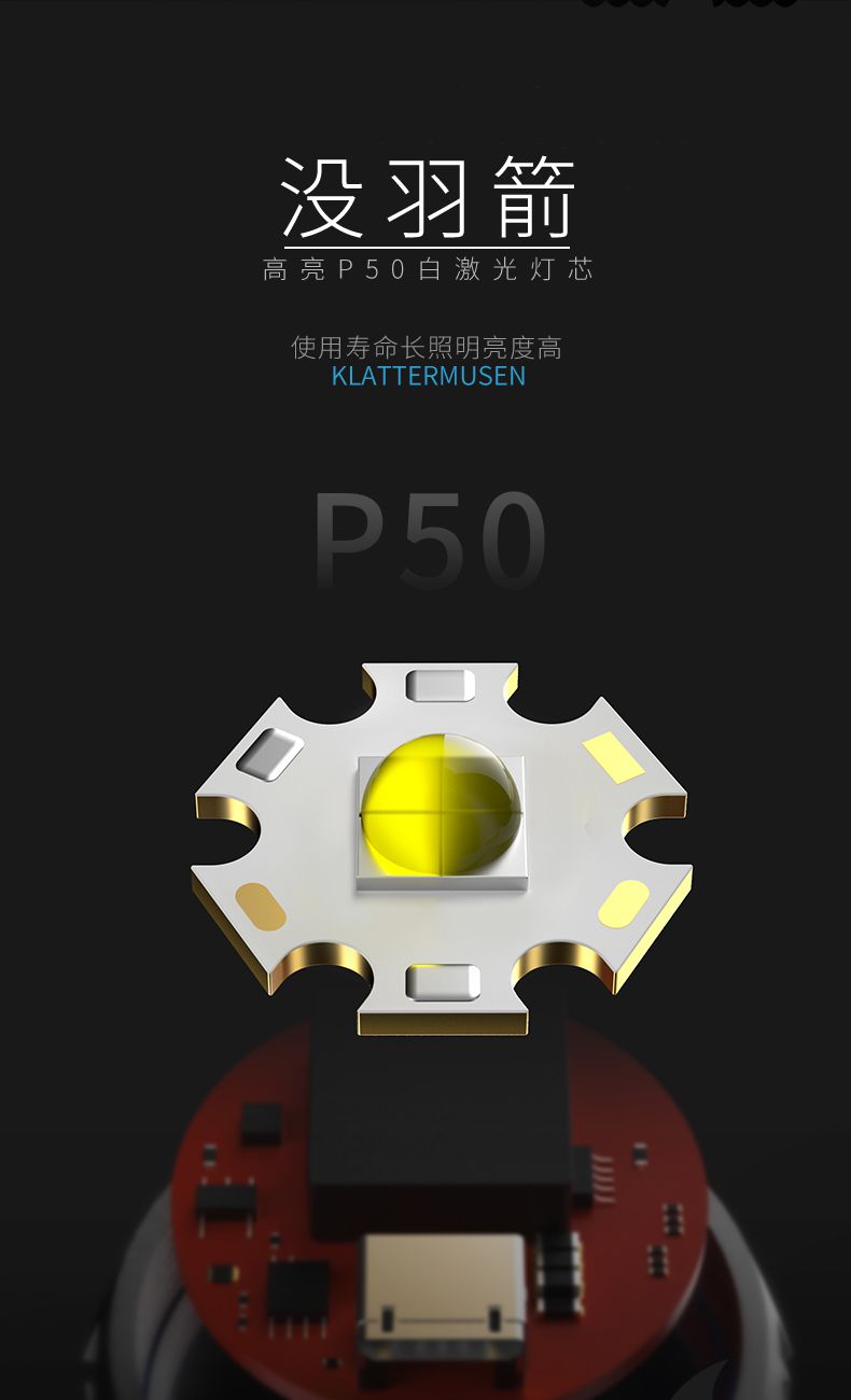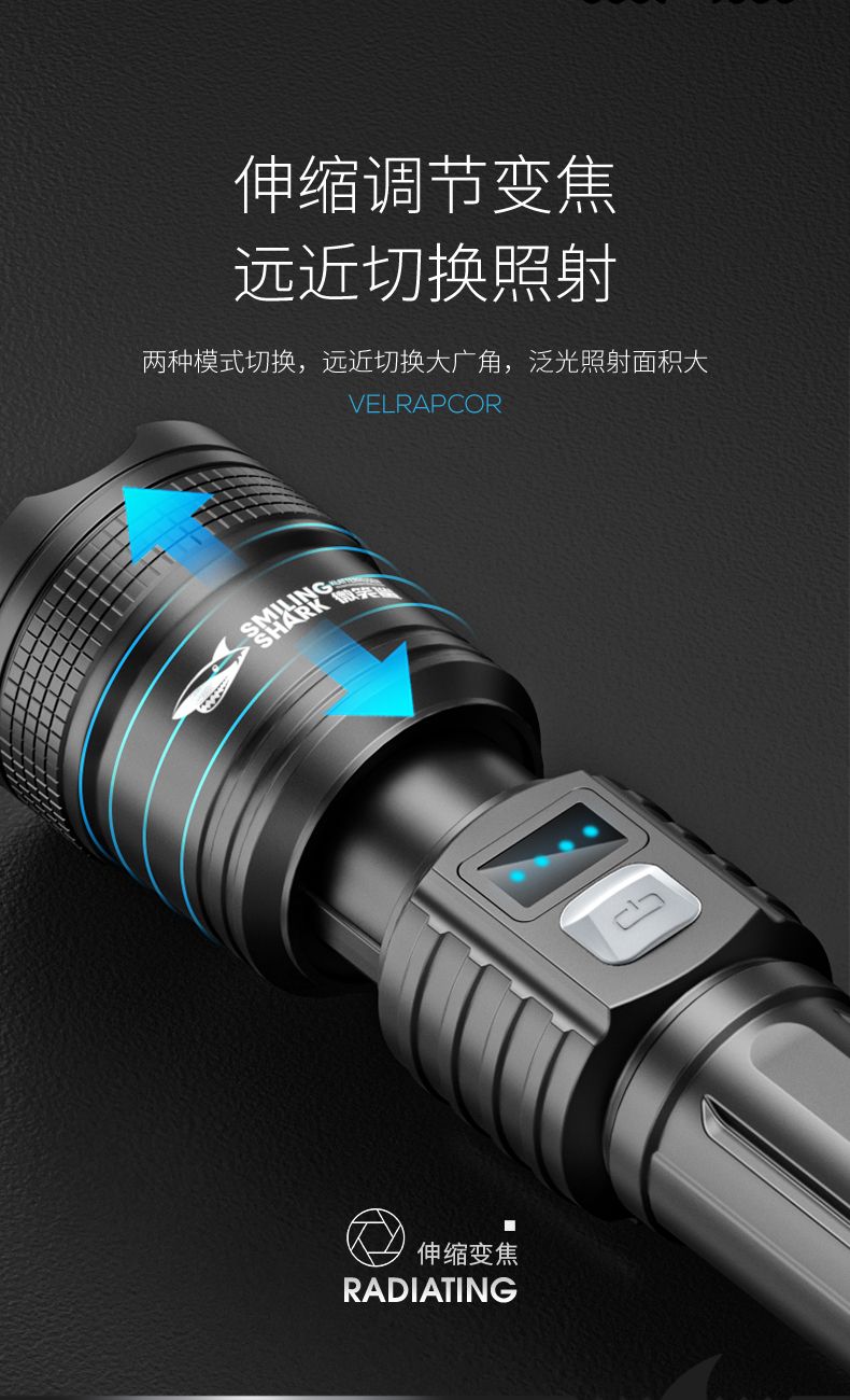 CRISPI手电筒强光可充电超亮户外应急照明灯激光灯续航超长led灯