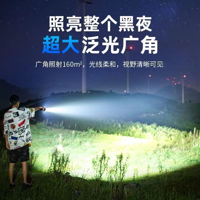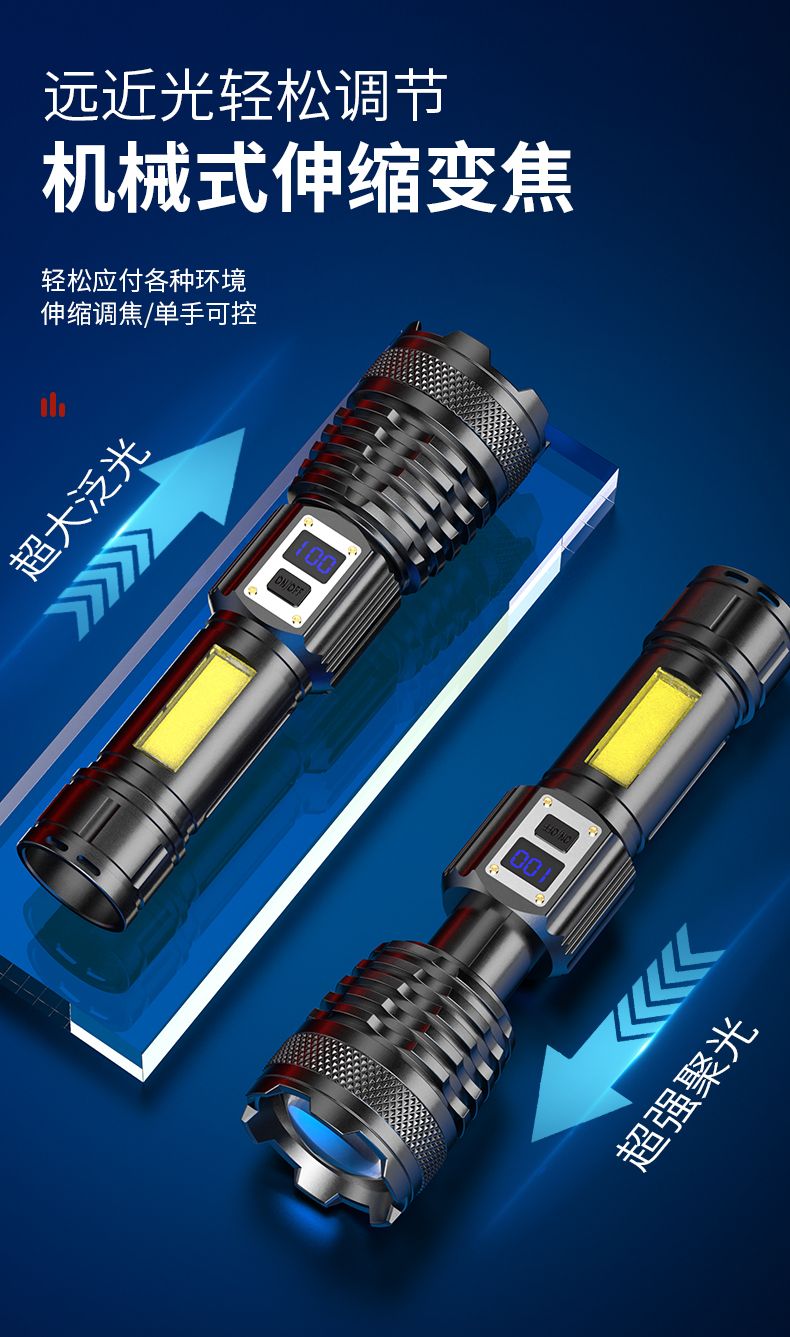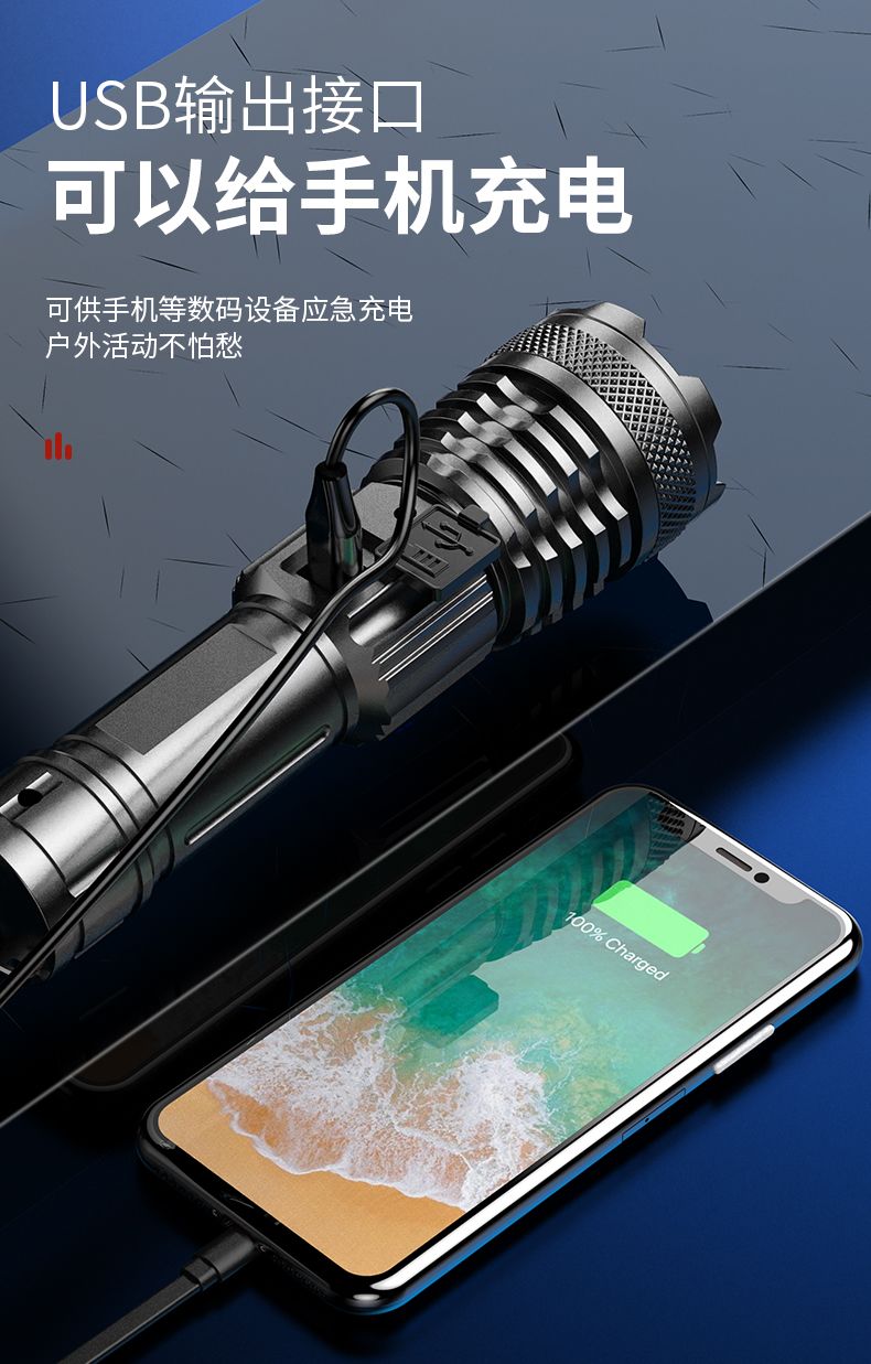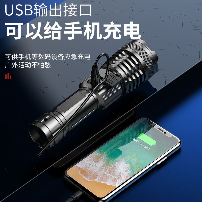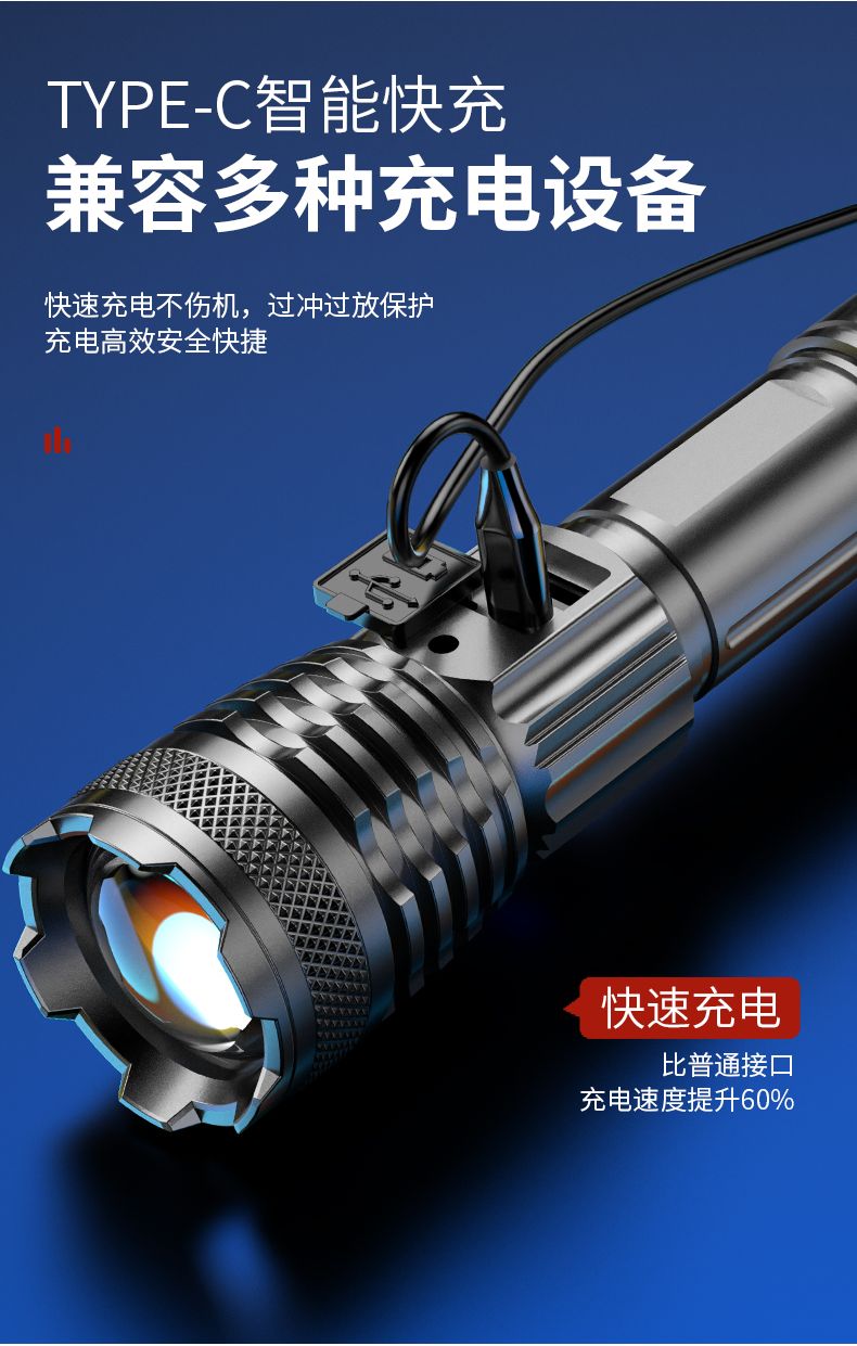【新款】强光手电筒便携充电疝气灯超亮户外变焦远射聚光led灯