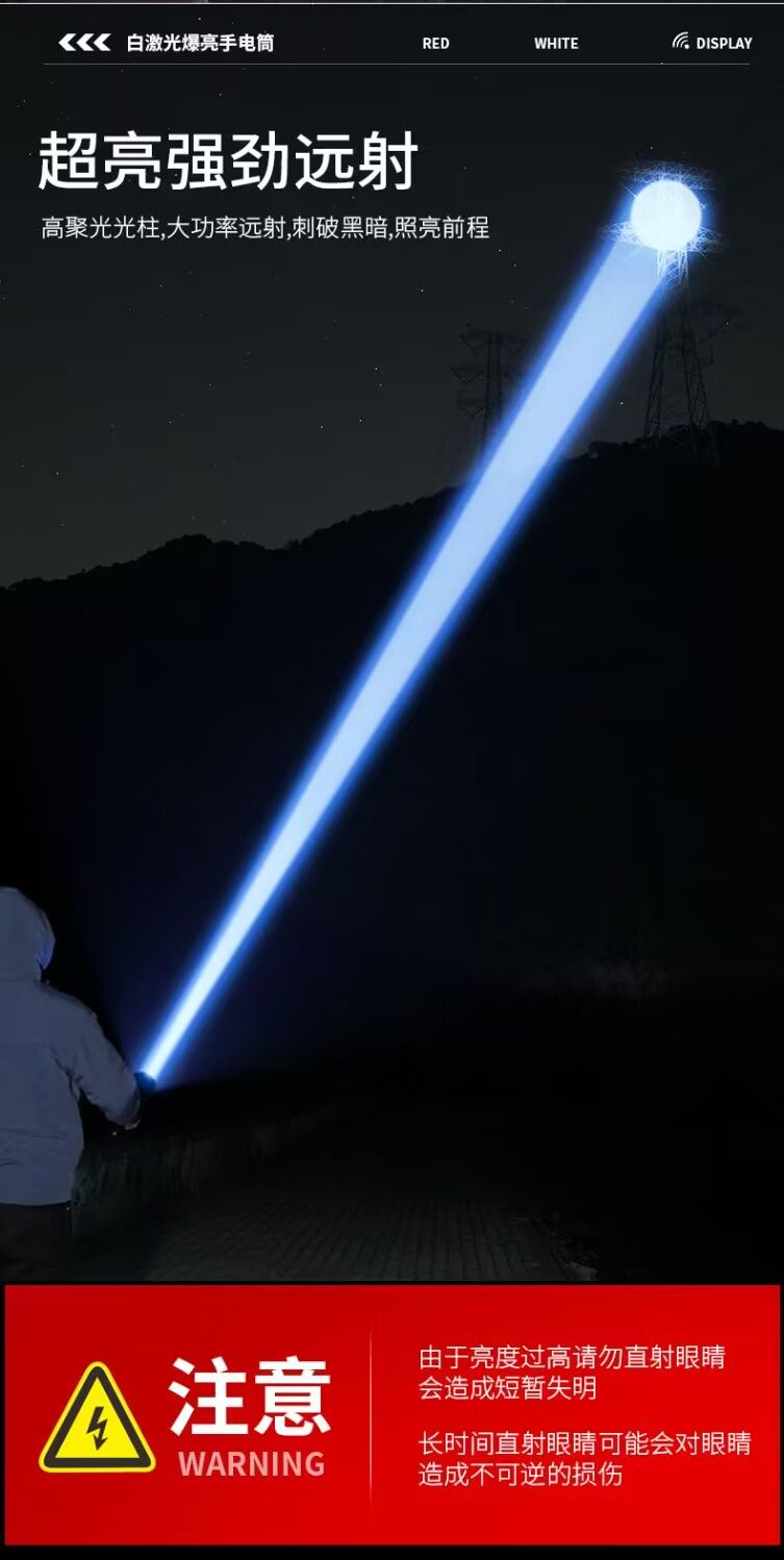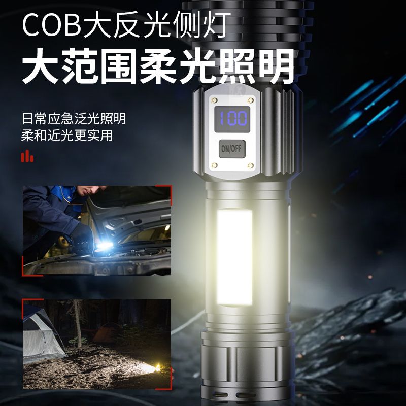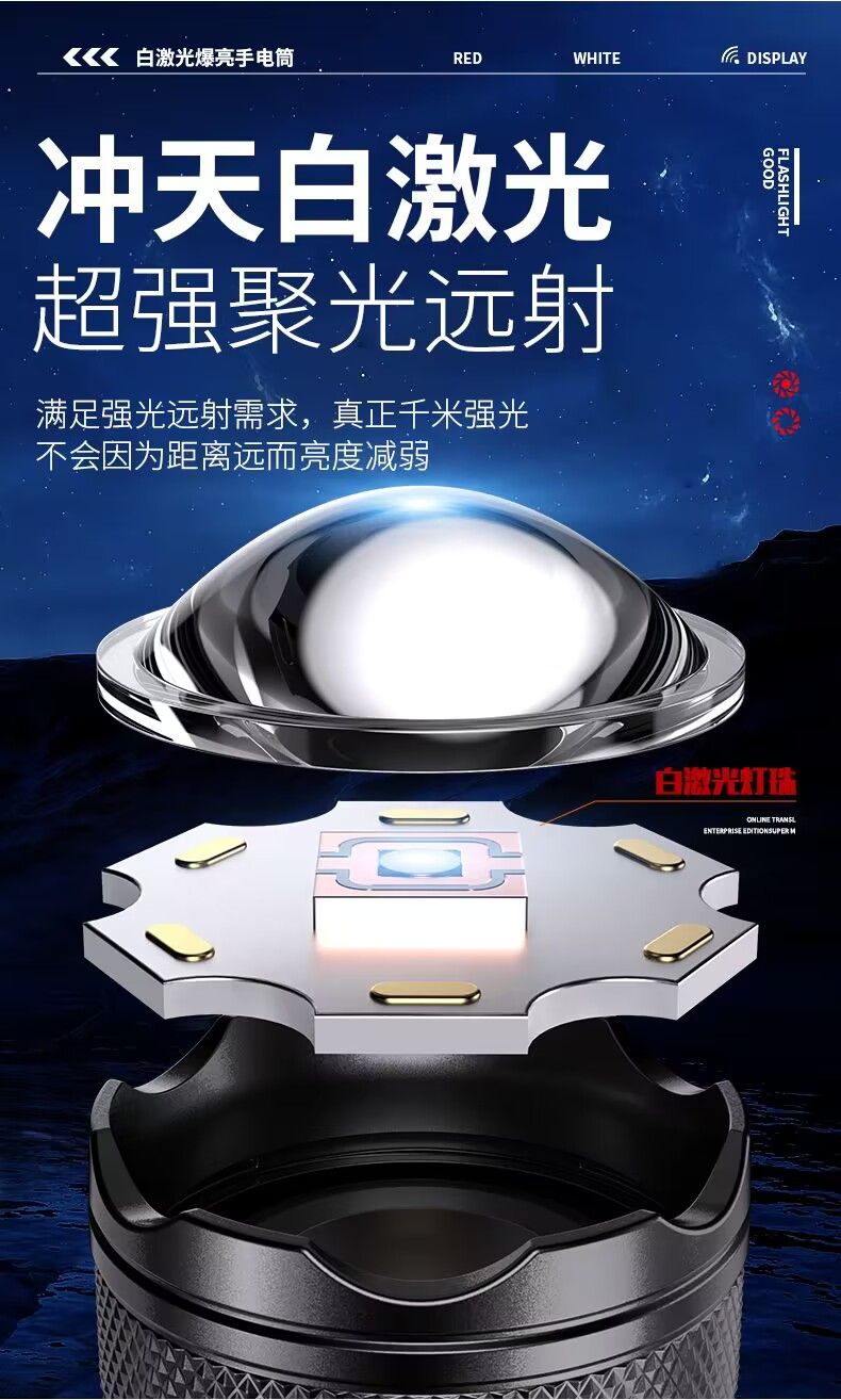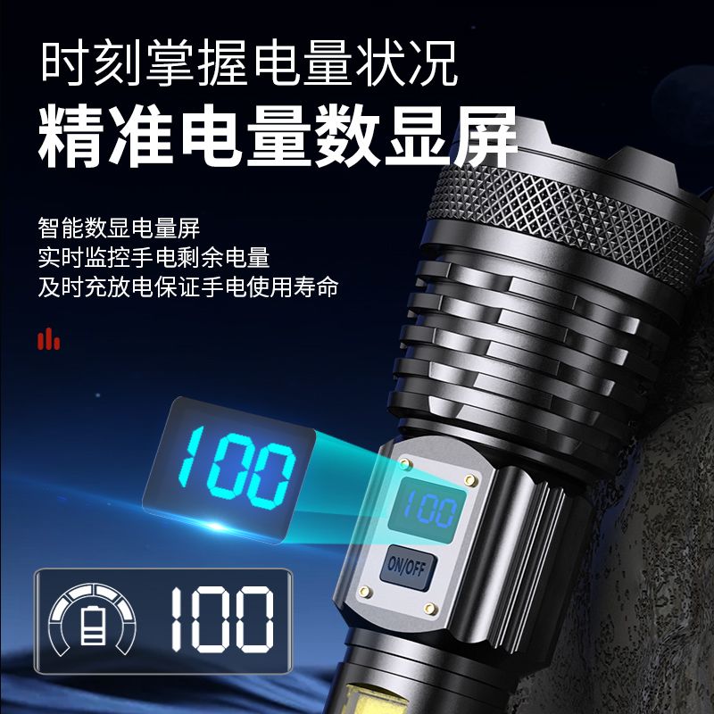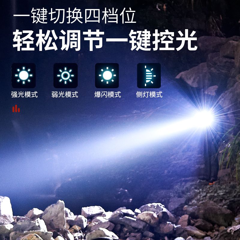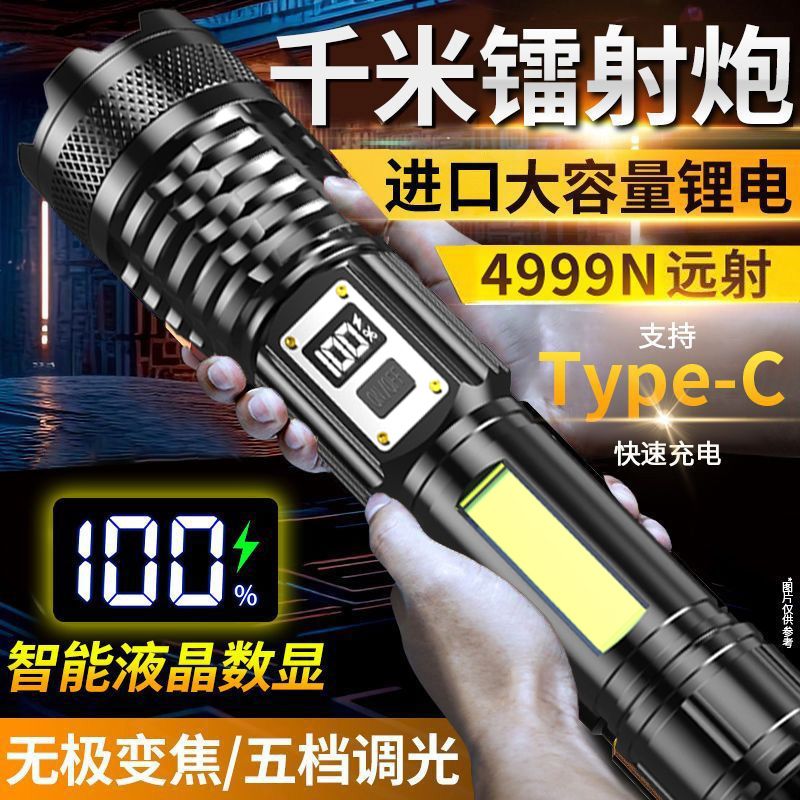【新款】强光手电筒便携充电疝气灯超亮户外变焦远射聚光led灯