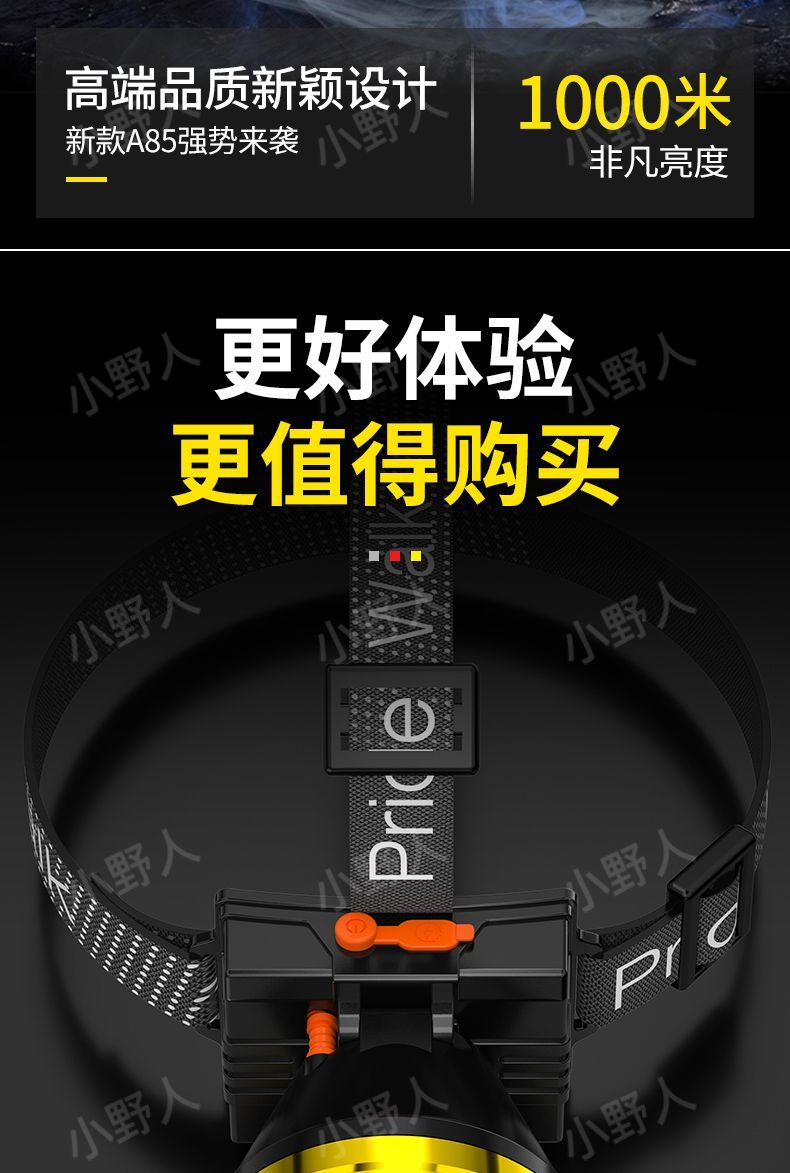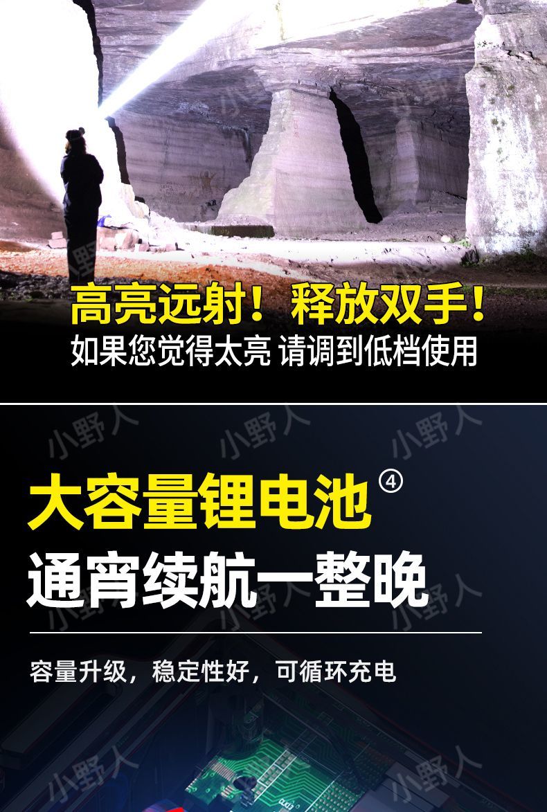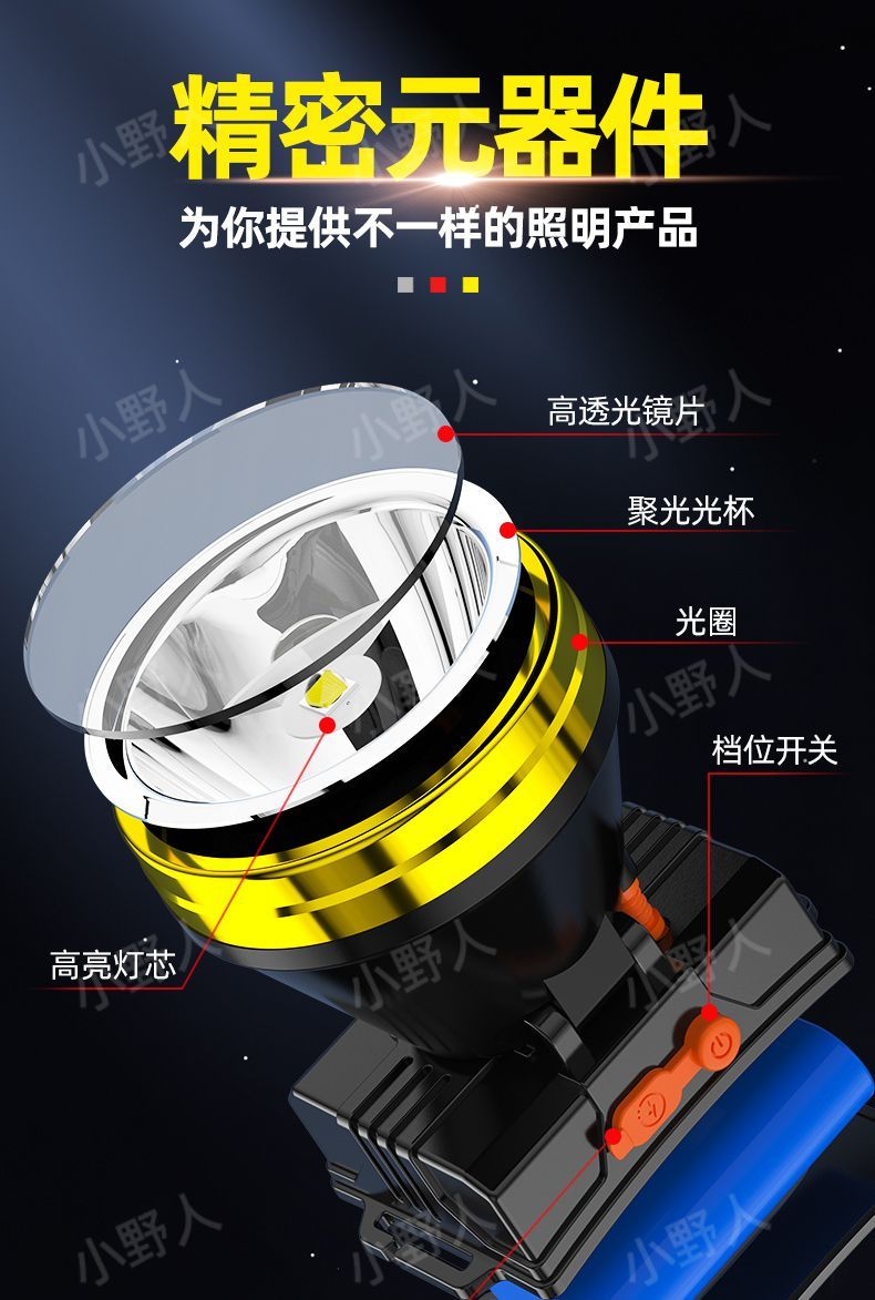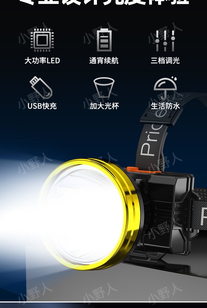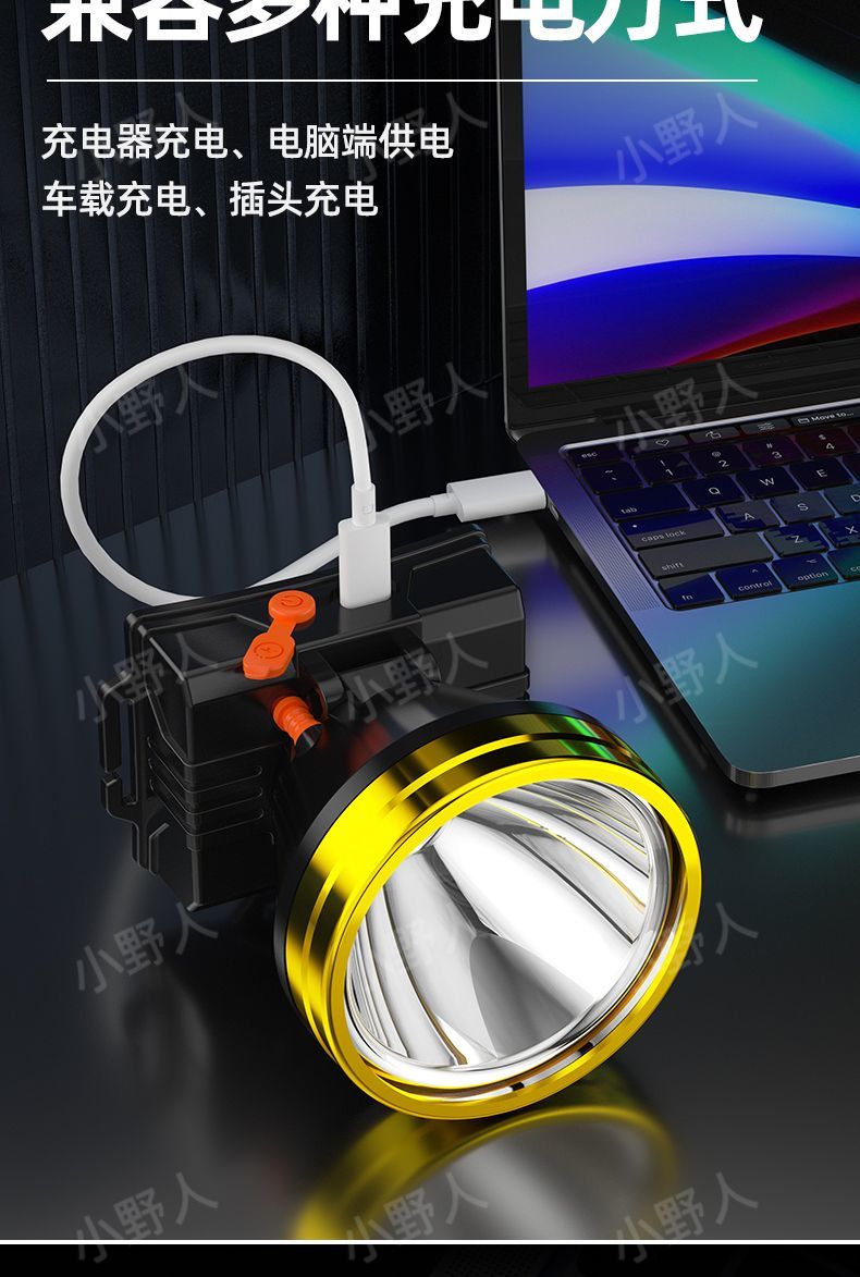 LED头灯强光远射可充电防水超亮头戴式夜钓灯矿灯超长续航手电筒