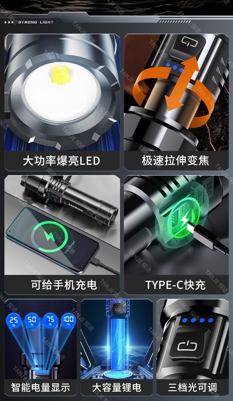 P999超强激光炮疝气灯手电筒可充电超远射强光户外照明热门推荐