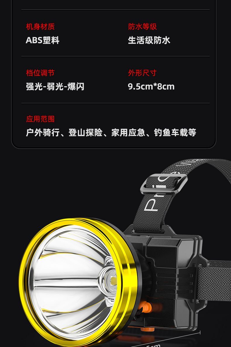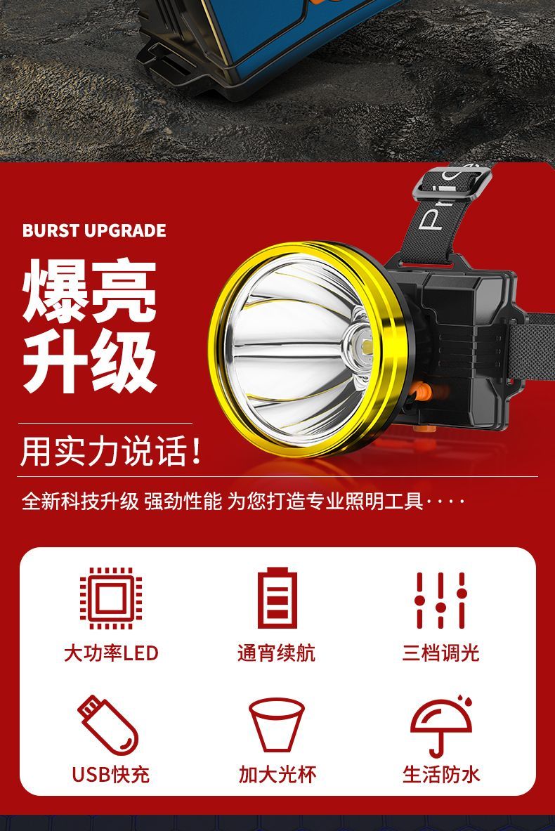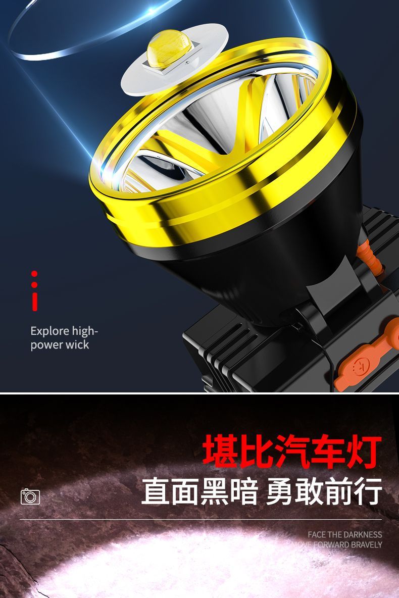 LED头灯强光远射可充电防水超亮头戴式矿灯超长续航手电筒