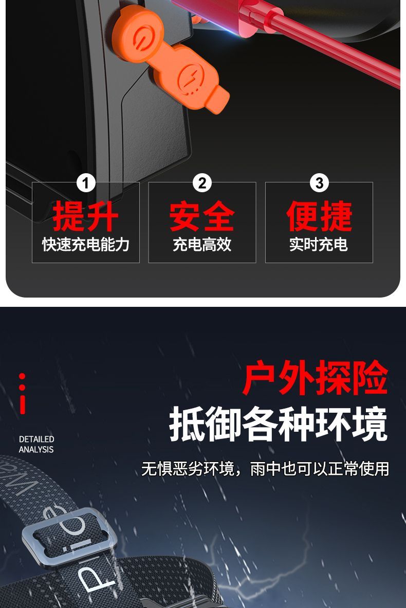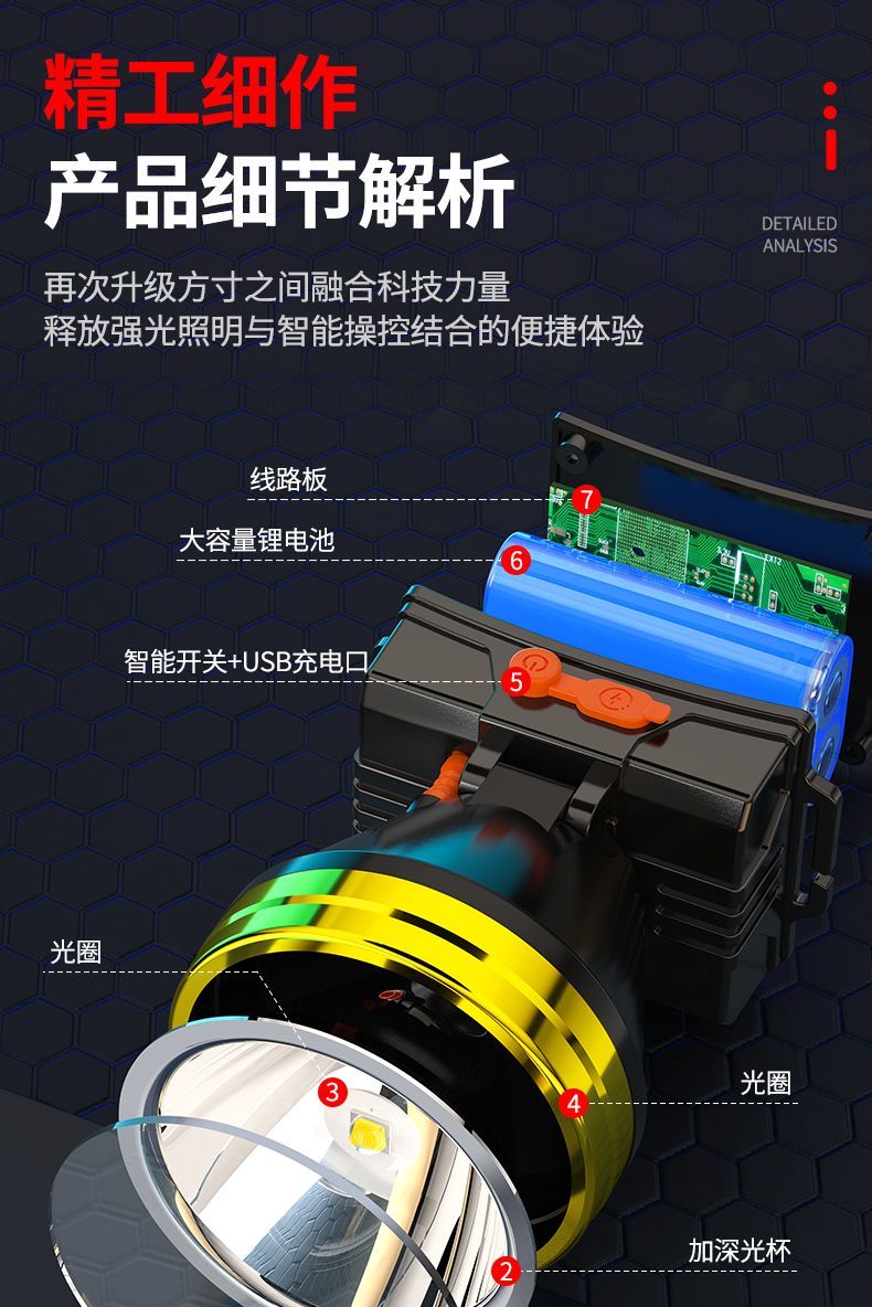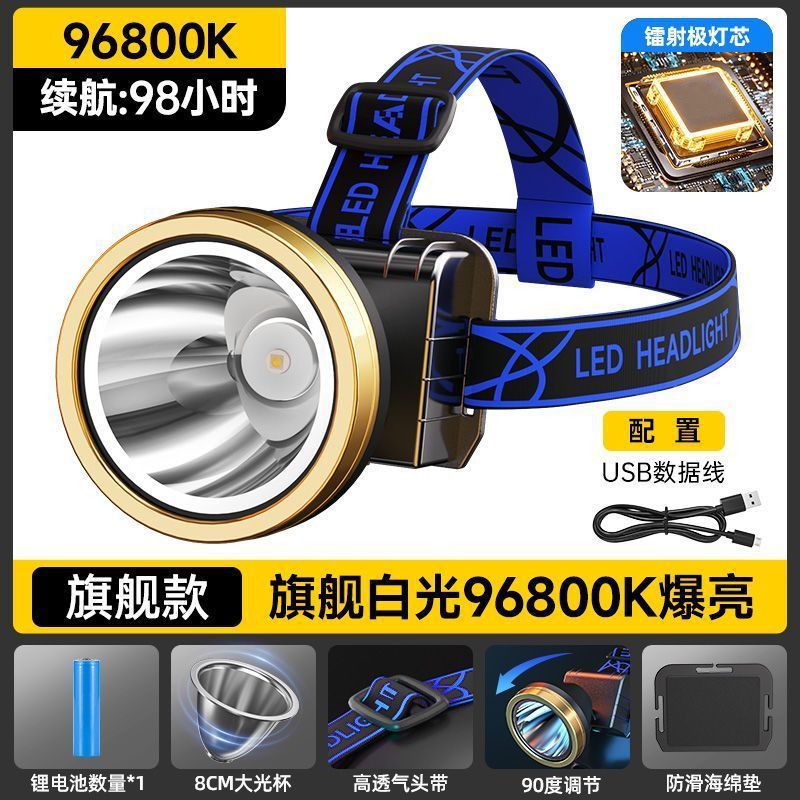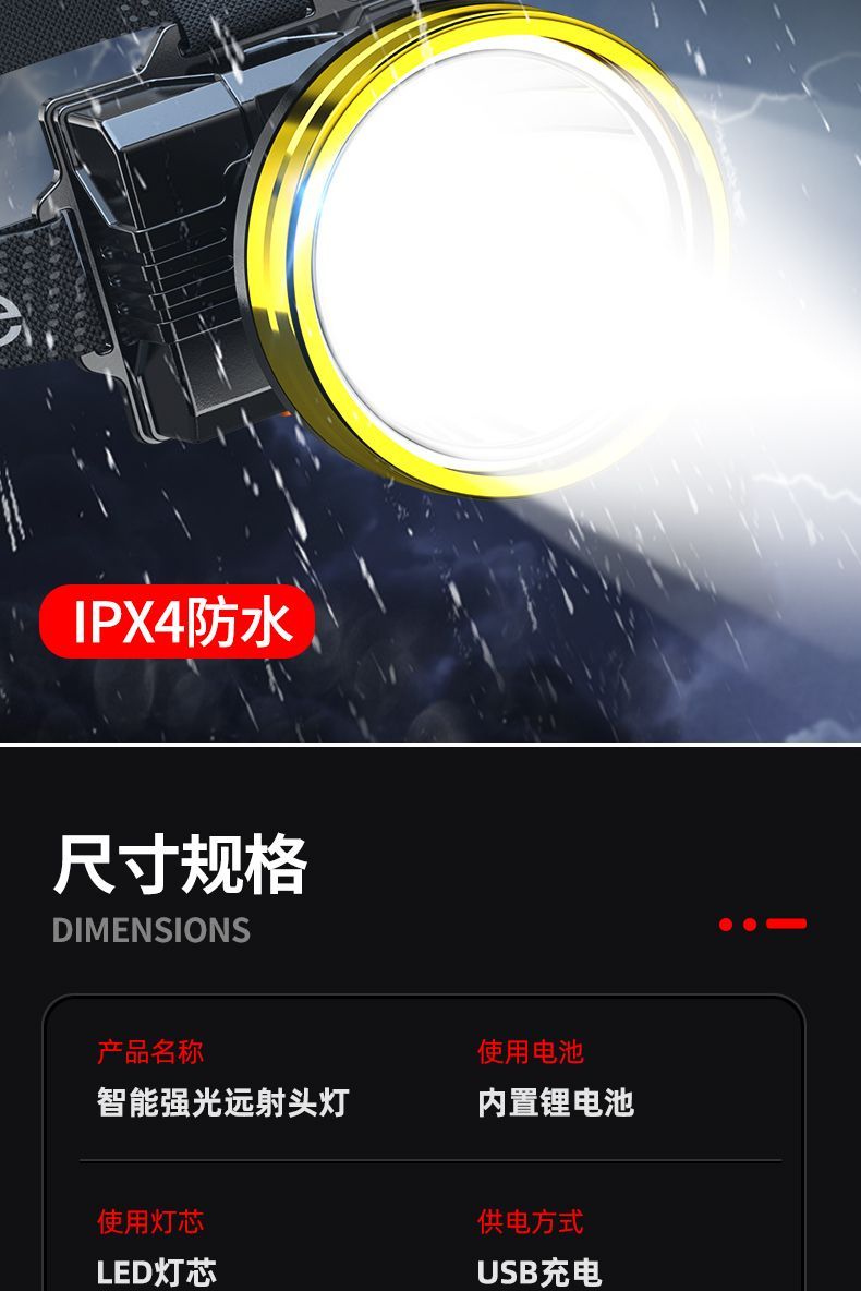 LED头灯强光远射可充电防水超亮头戴式矿灯超长续航手电筒