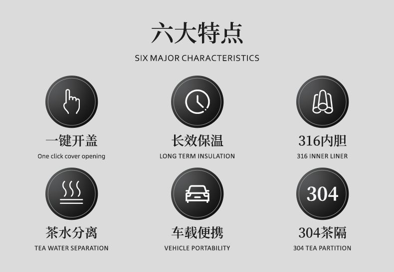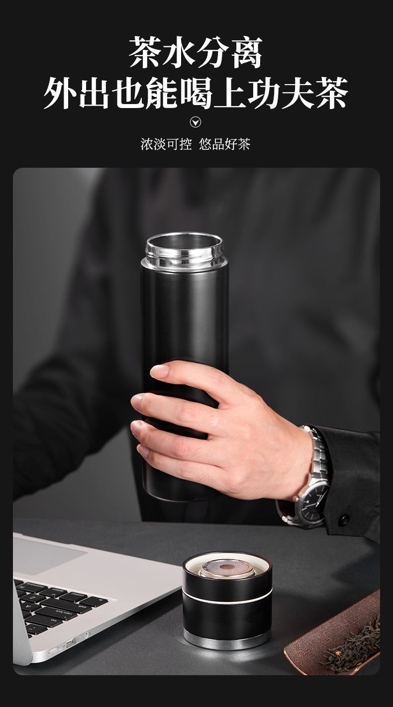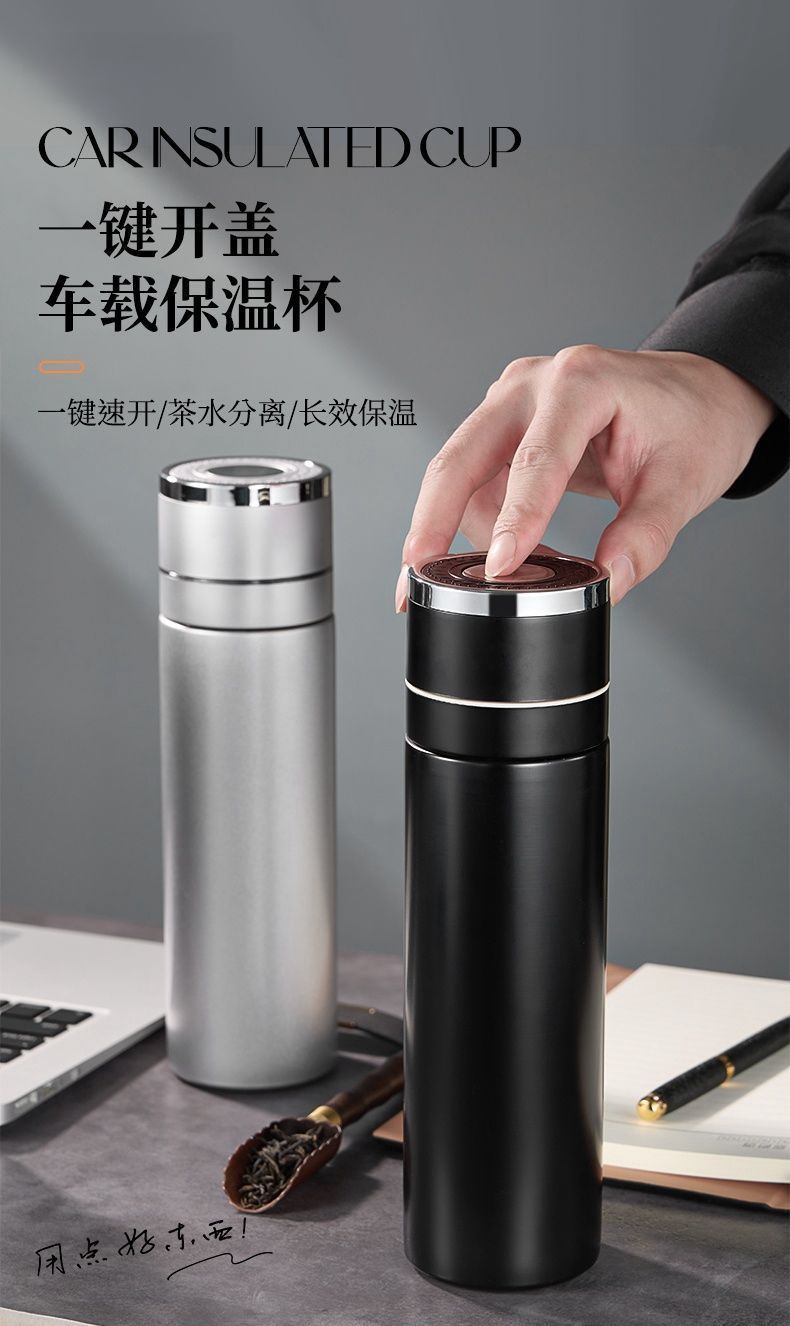 316不锈钢保温杯开盖茶水分离一键高档车载新款便携水杯茶杯