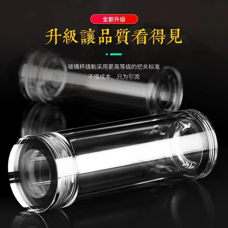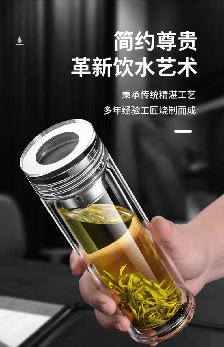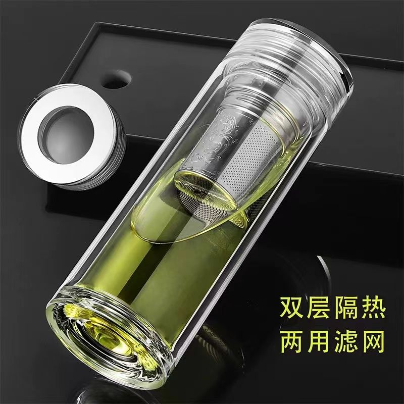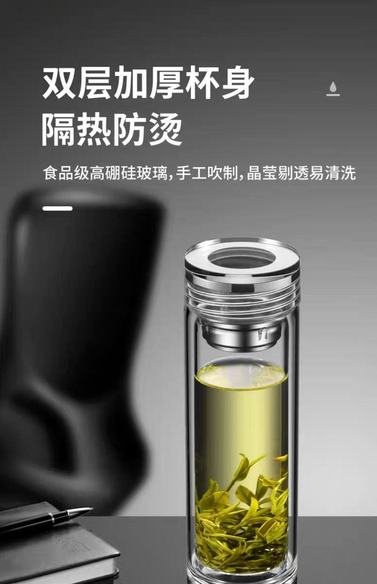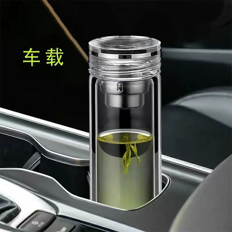 男士玻璃杯加厚双层防爆茶杯商务高档隔热水杯车载防摔便携杯子