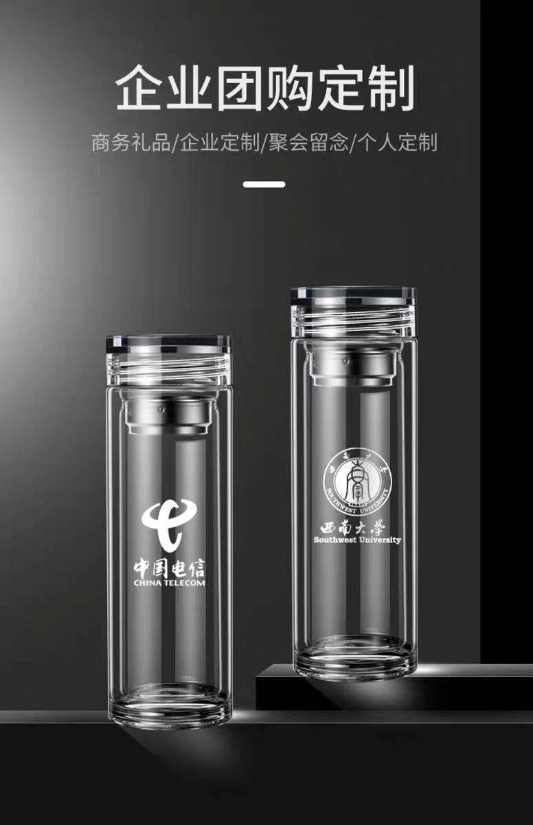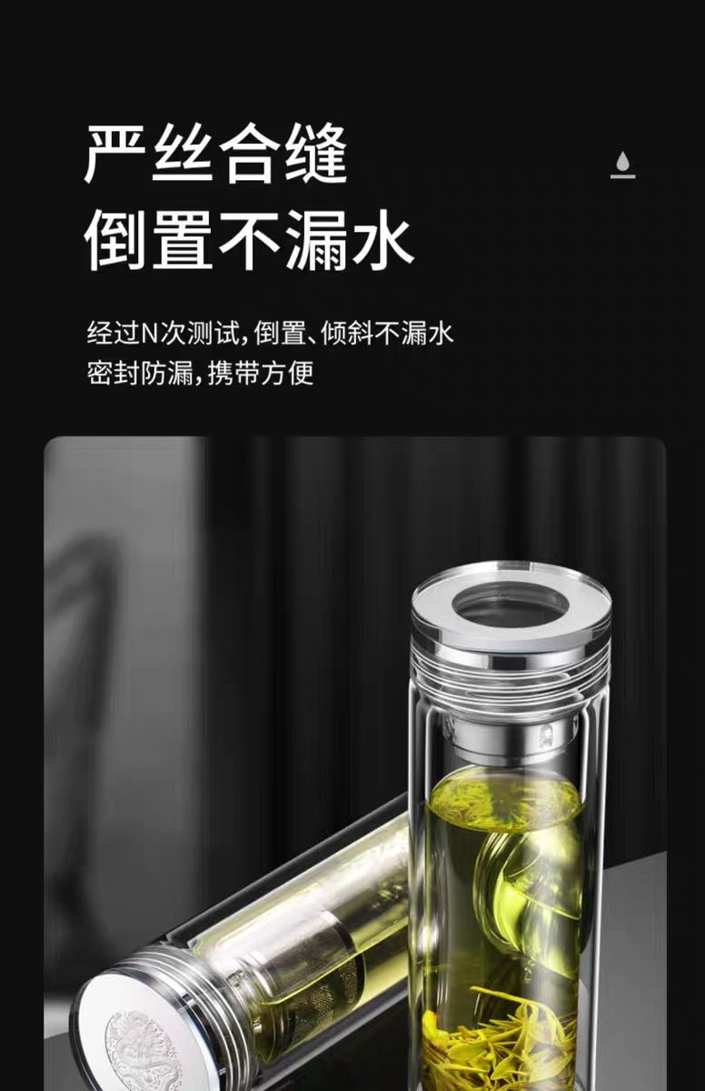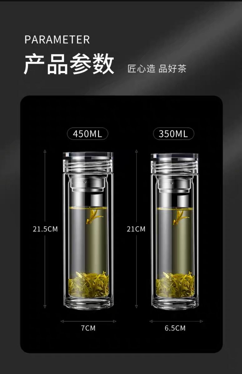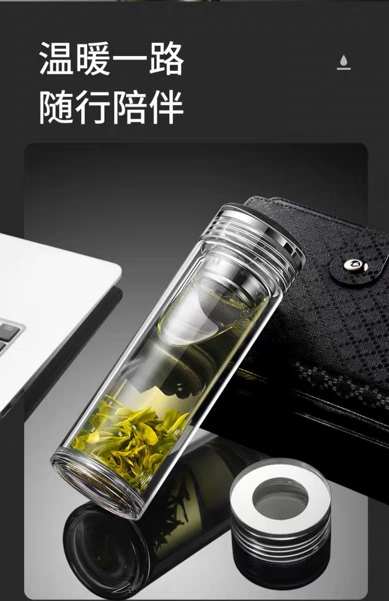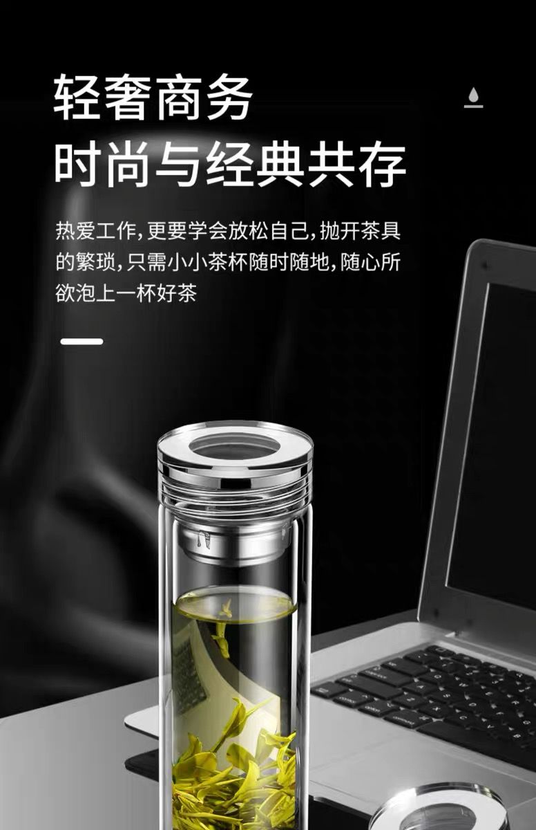 男士玻璃杯加厚双层防爆茶杯商务高档隔热水杯车载防摔便携杯子