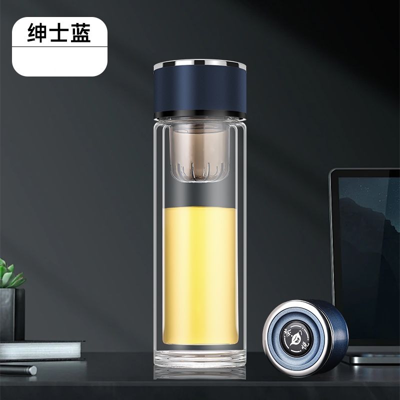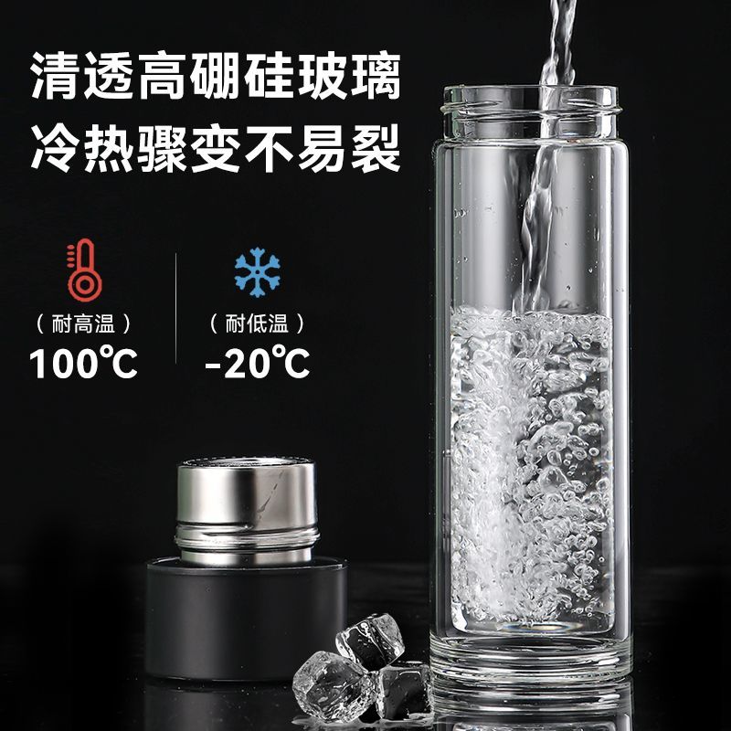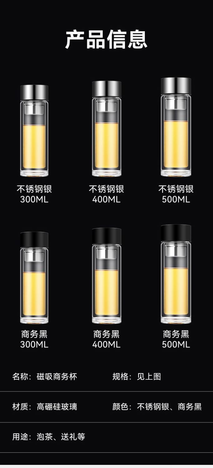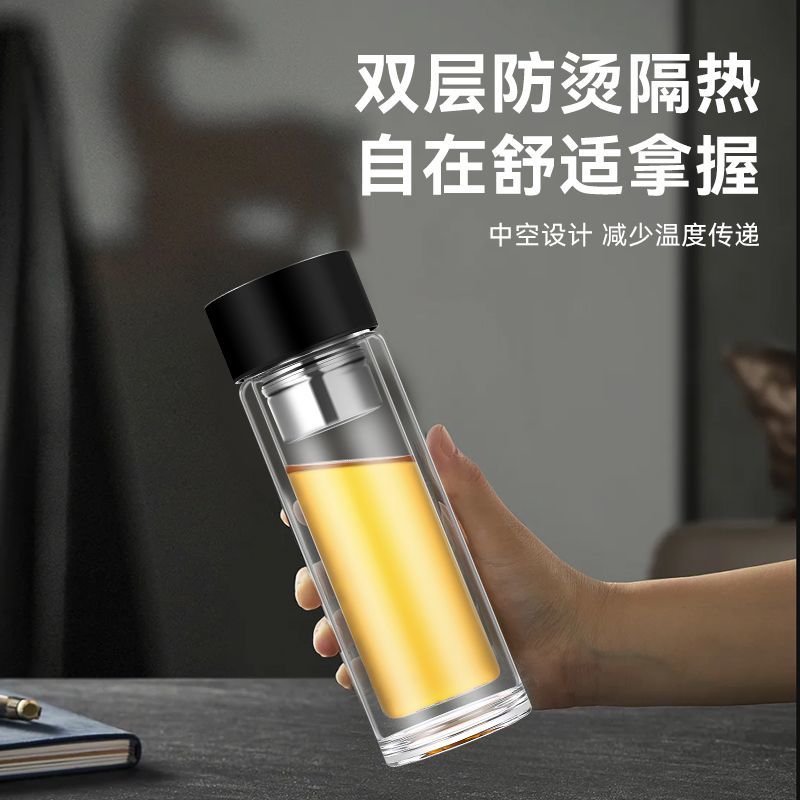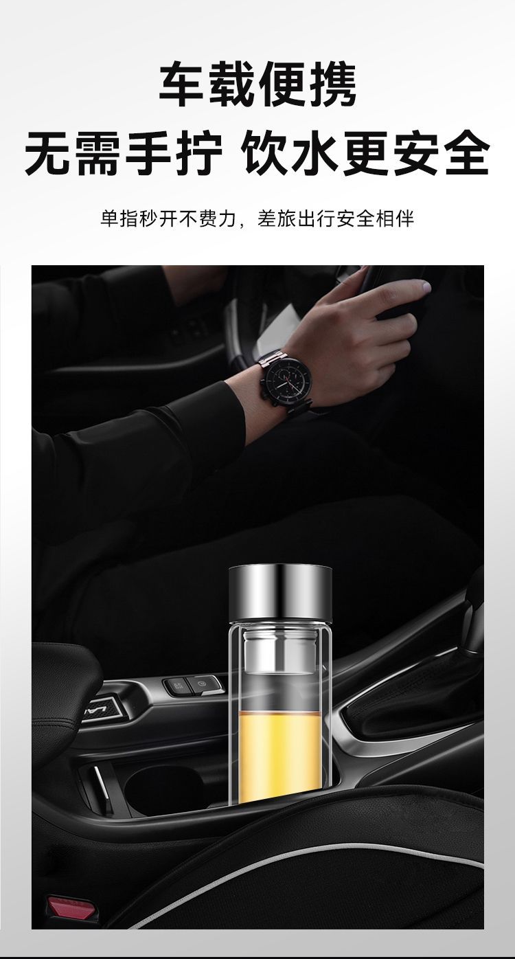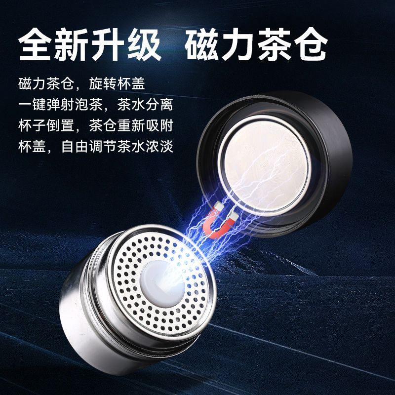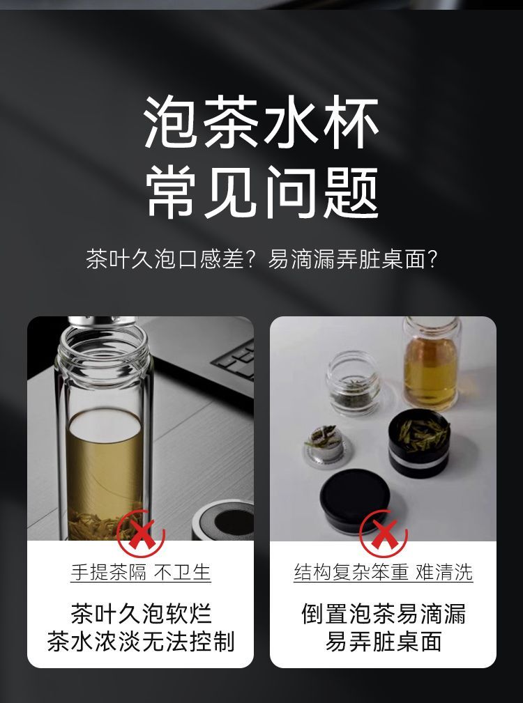 磁弹茶杯新款茶水高档分离水杯双层玻璃杯男士上班族便携耐高温