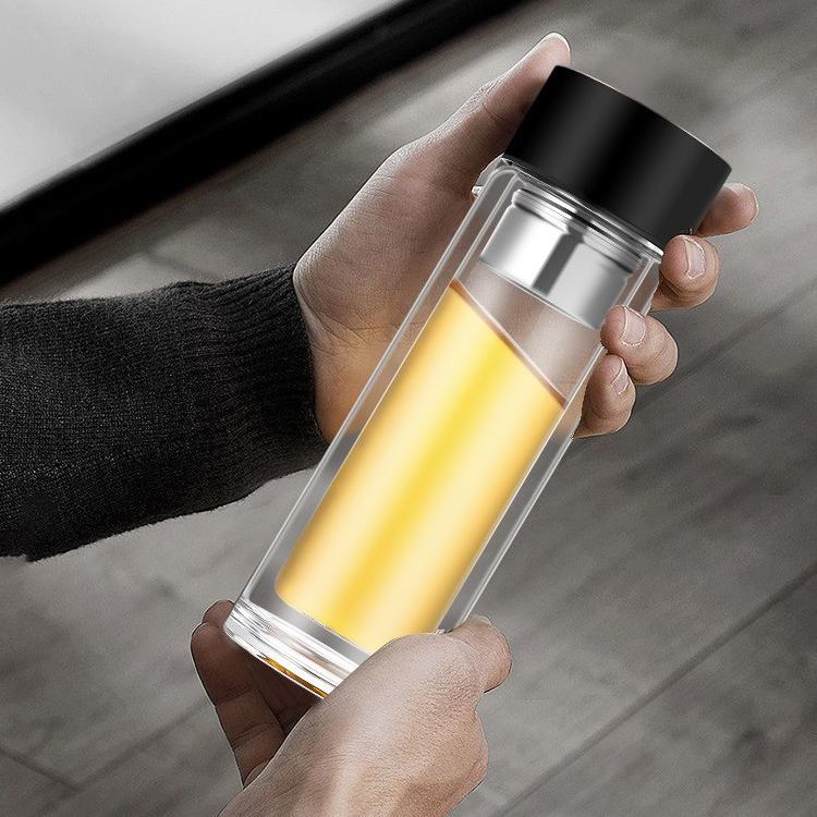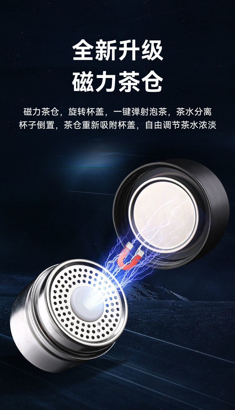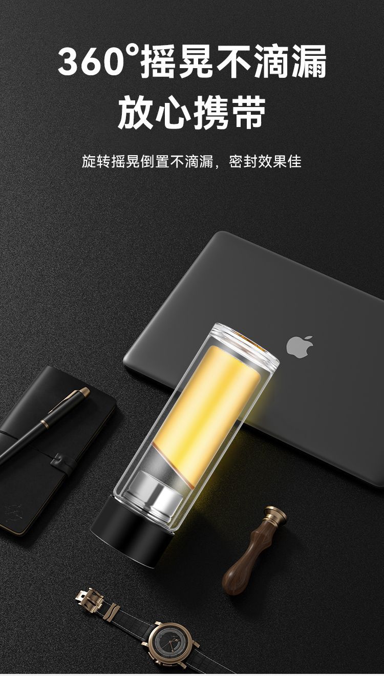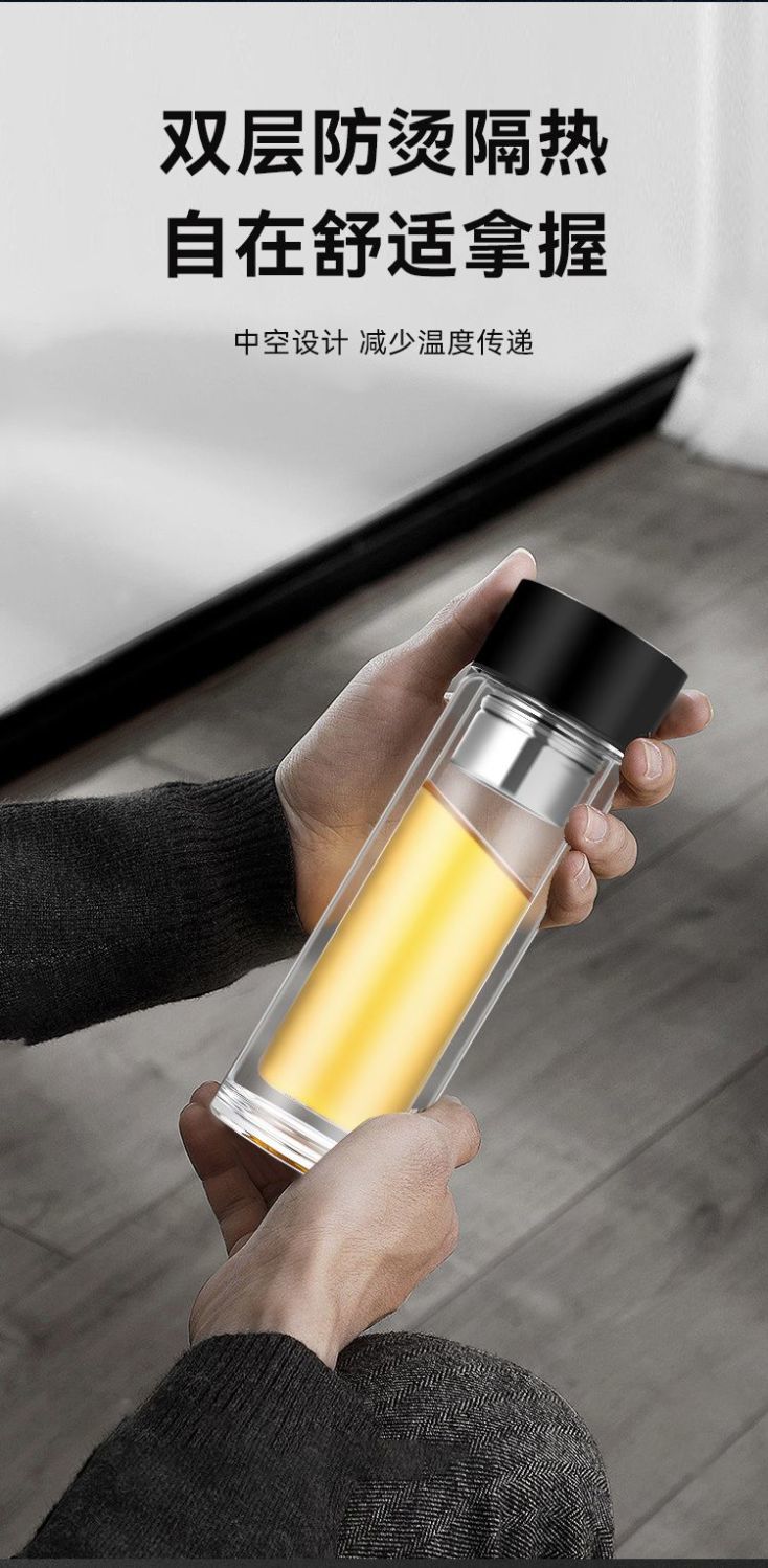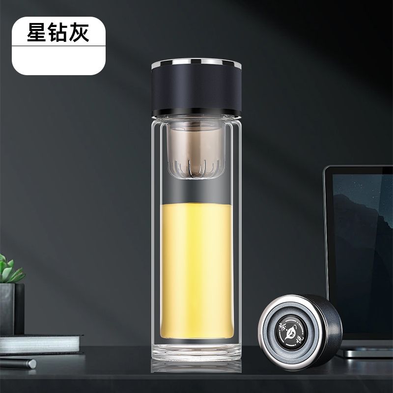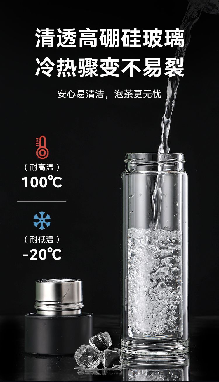 磁弹茶杯新款茶水高档分离水杯双层玻璃杯男士上班族便携耐高温