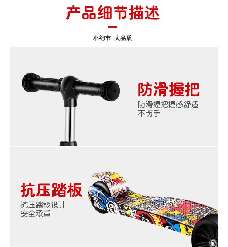滑板车儿童2-6-12岁折叠音乐闪光三轮溜溜车男女宝宝初学者滑滑车