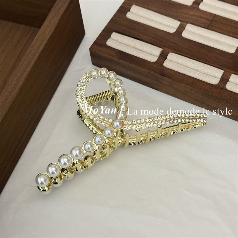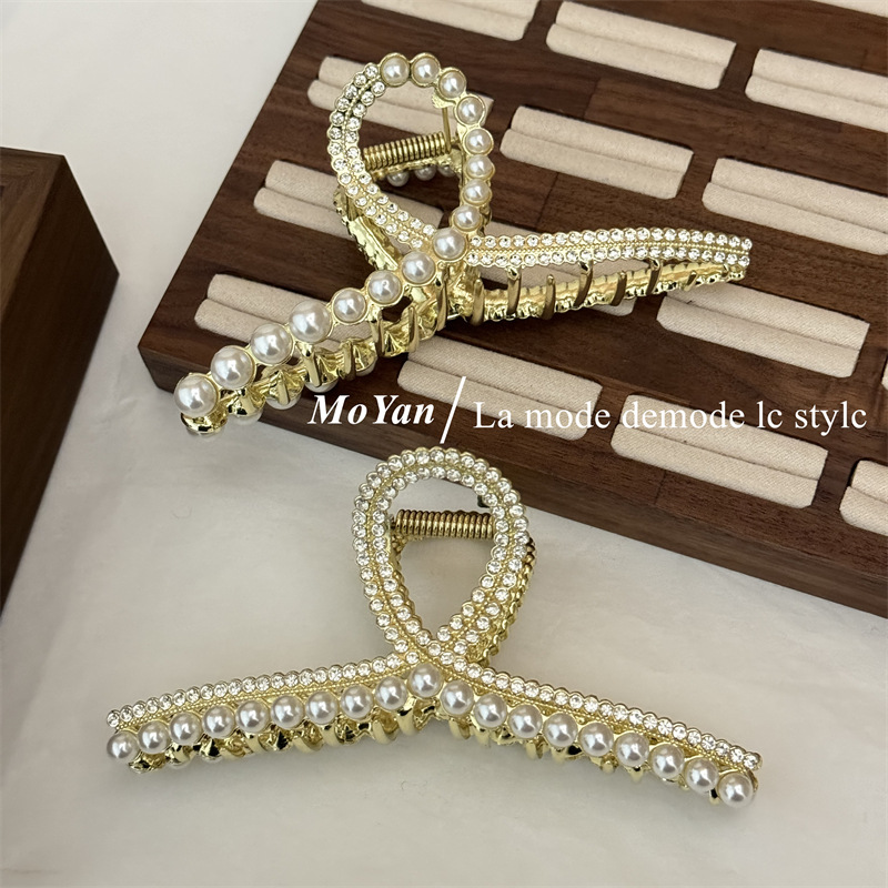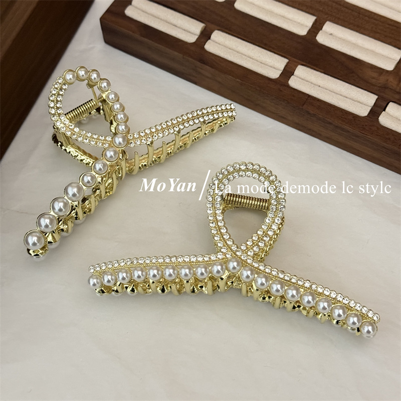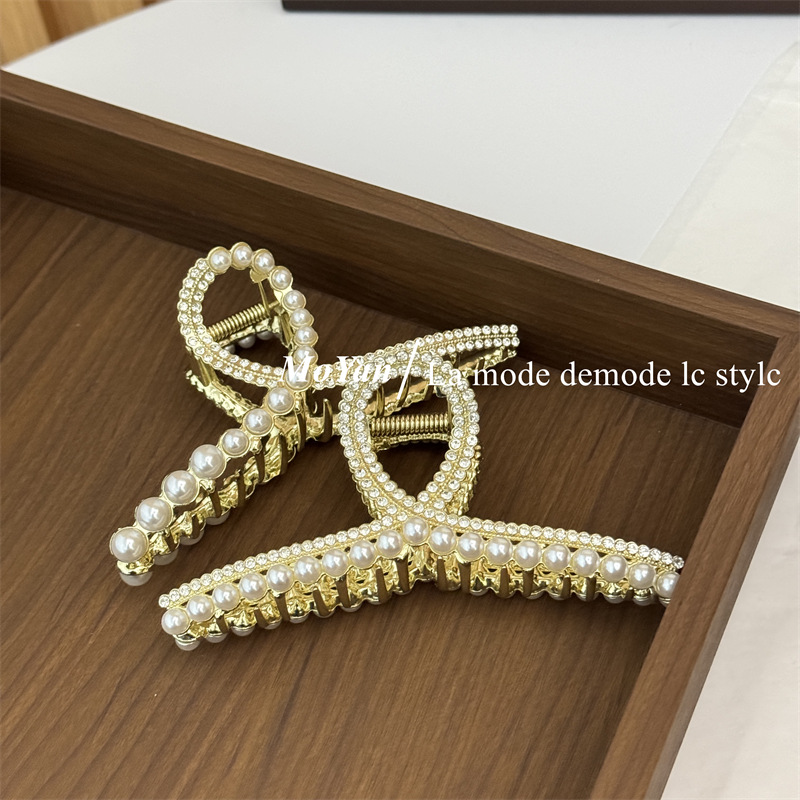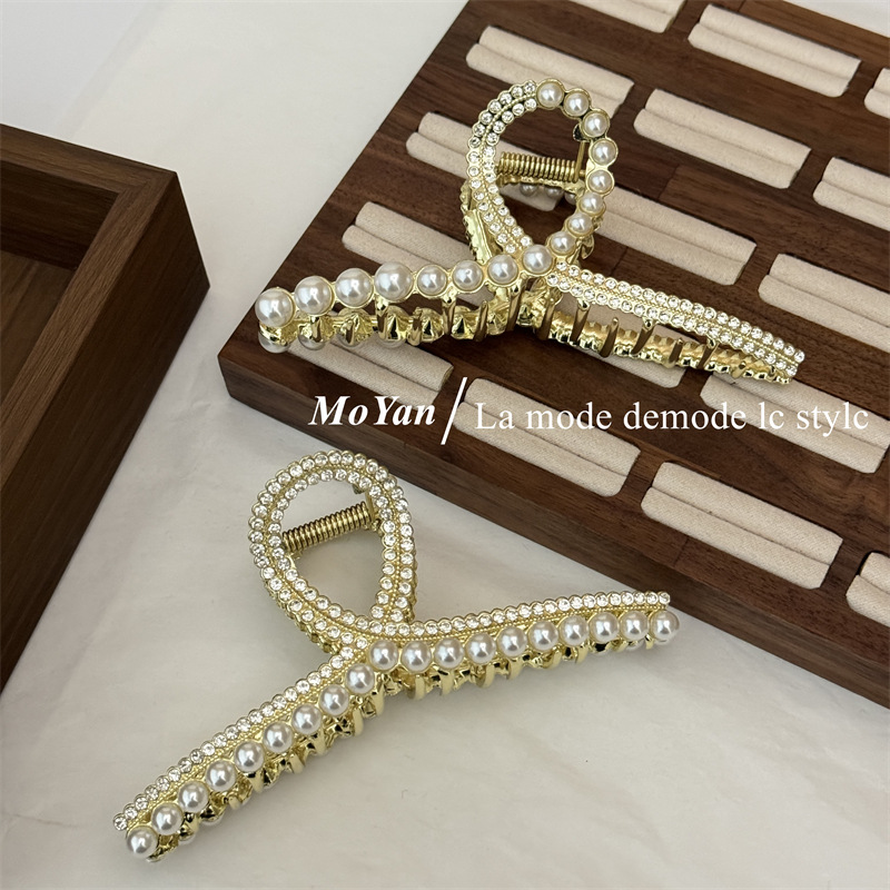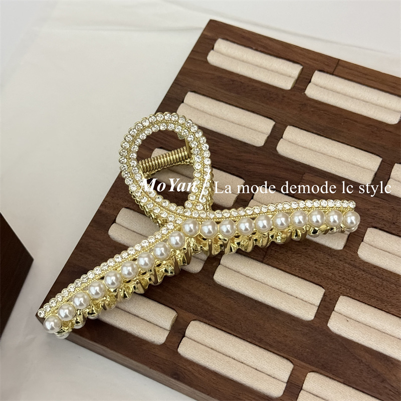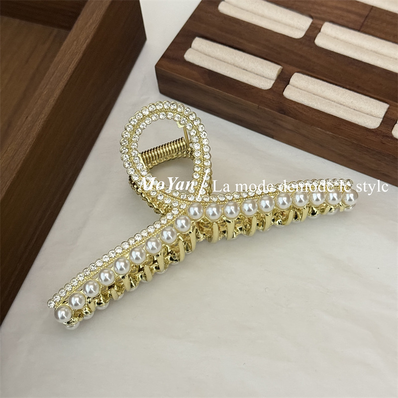 珍珠水钻发夹女抓夹发抓丸子头发卡鲨鱼夹