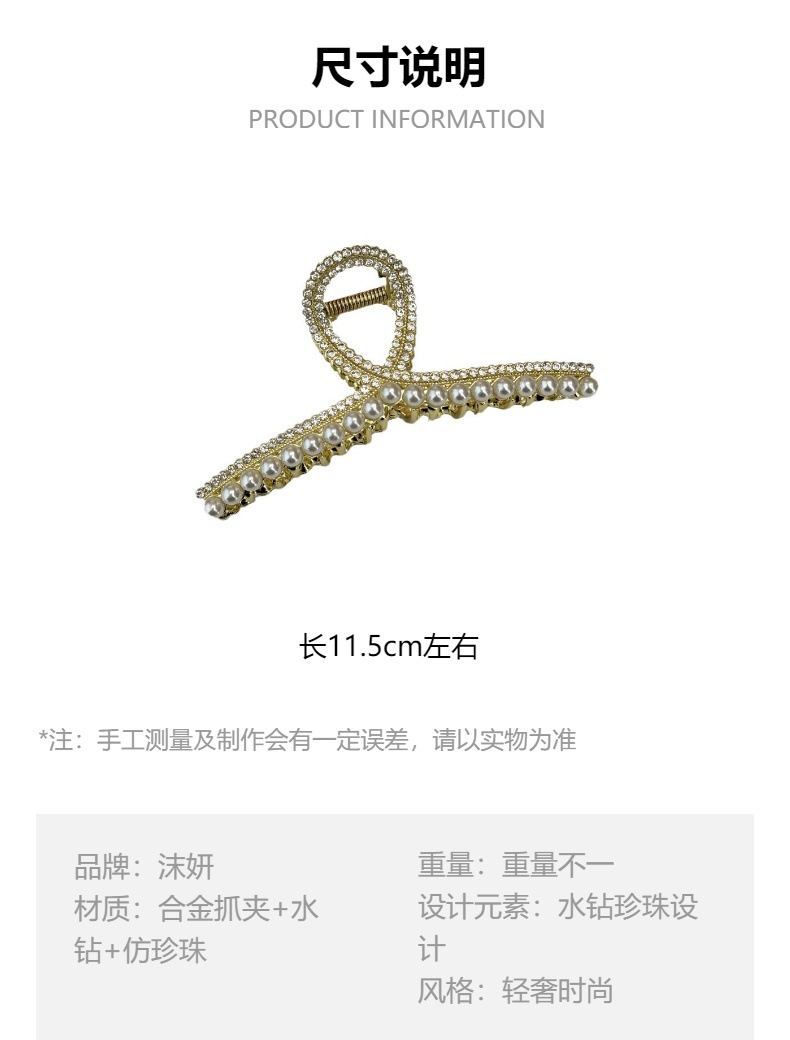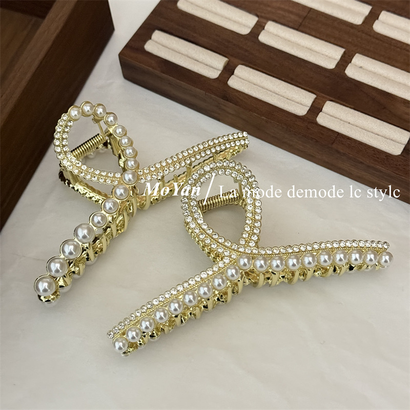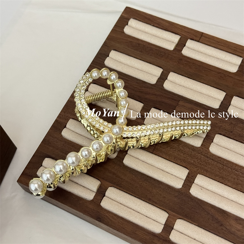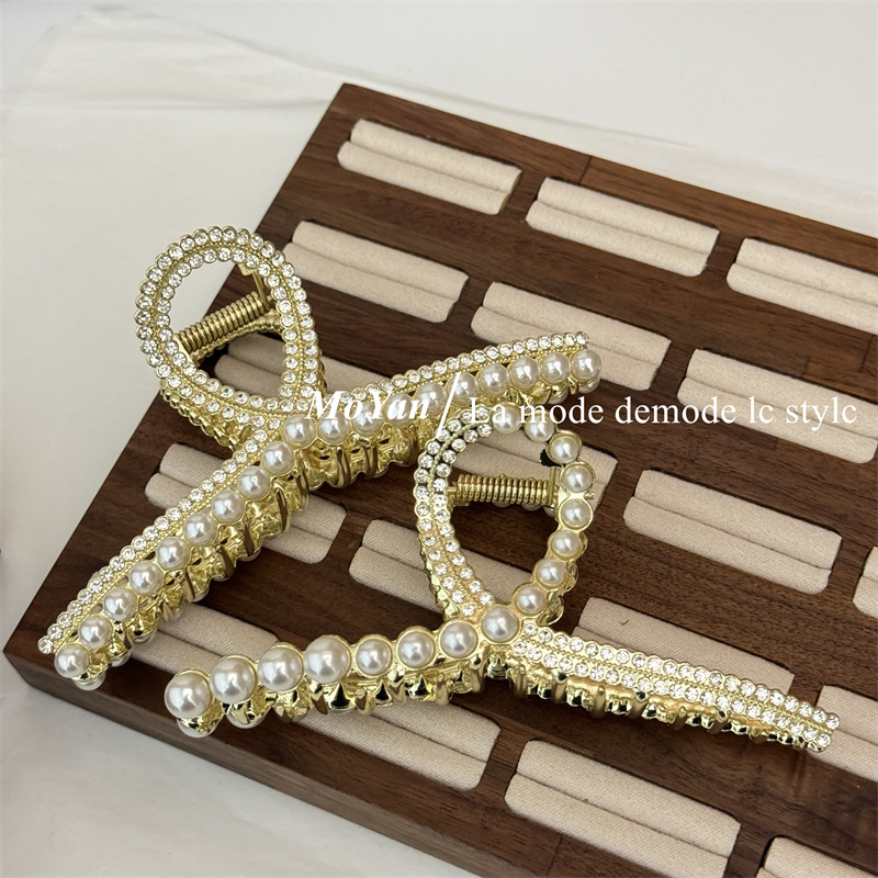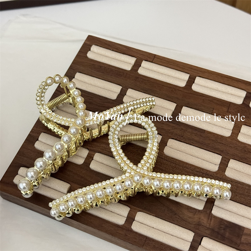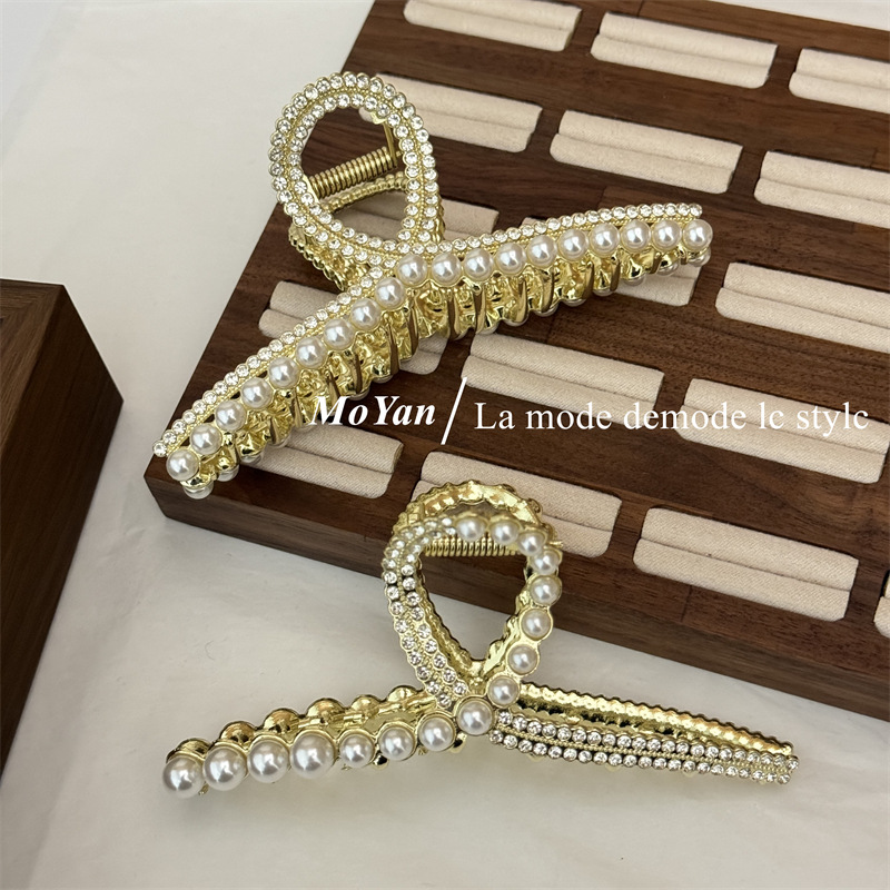 珍珠水钻发夹女抓夹发抓丸子头发卡鲨鱼夹