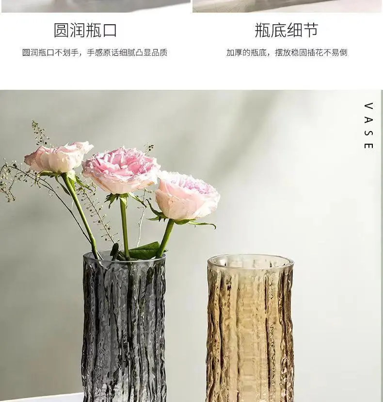 北欧大号花瓶ins风高颜值简约玻璃透明插花水培鲜花百合雪柳摆件
