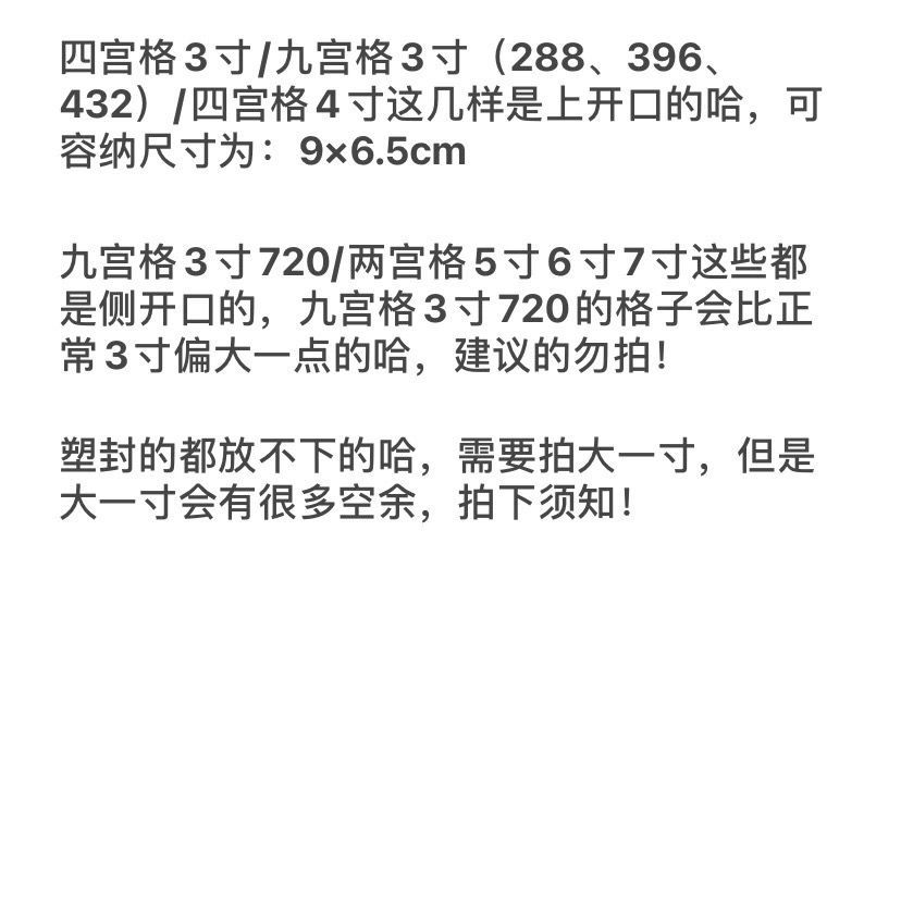 | four grids and three inches (160 pieces can be put)(四宫格三寸(可放160张)) | USD $1.81 | 999999 piece available |