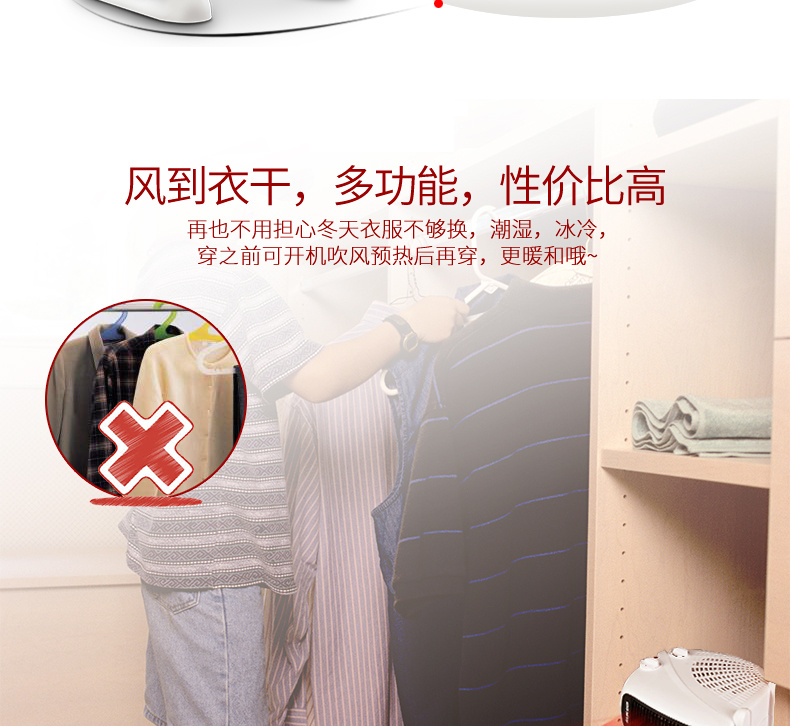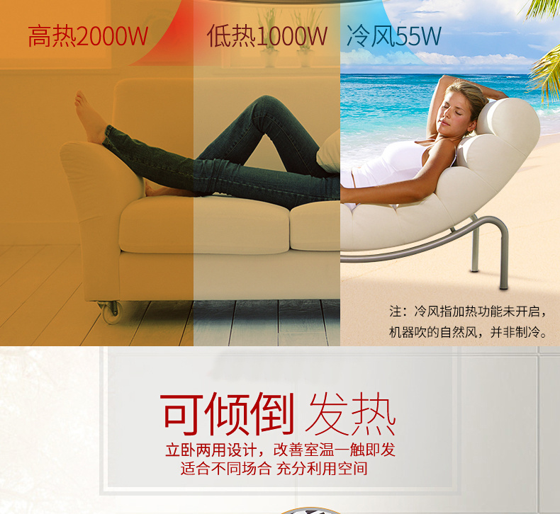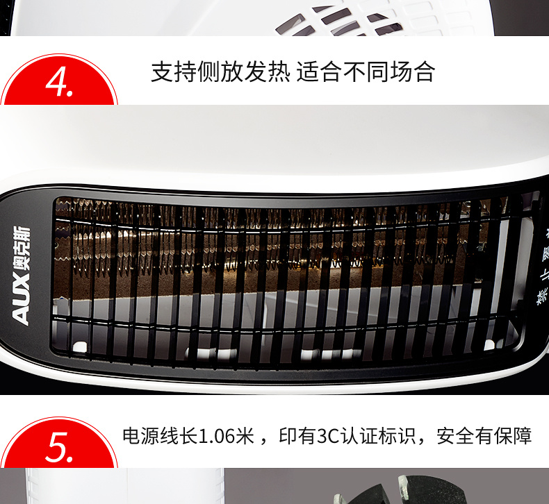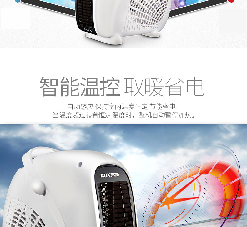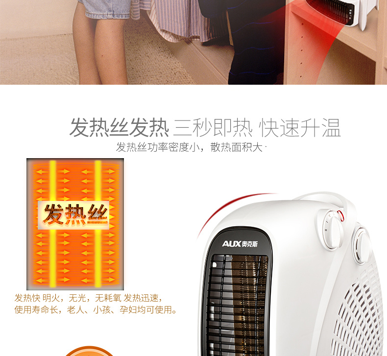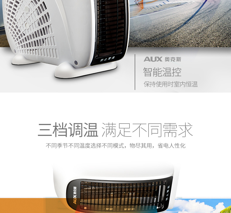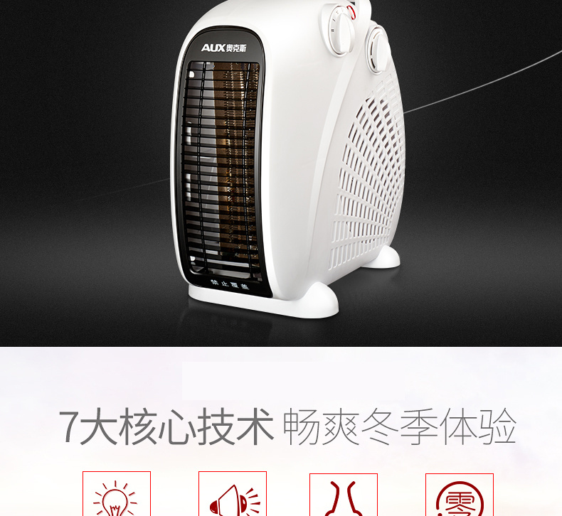 奥克斯取暖器家用 暖风机办公室冷暖两用电暖气迷你电暖器小太阳