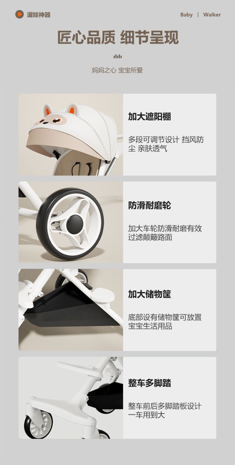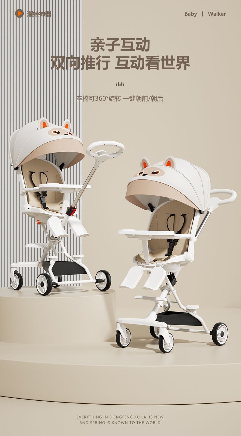 带娃遛娃神器可坐可躺高景观婴儿推车轻便折叠双向儿童宝宝手推车