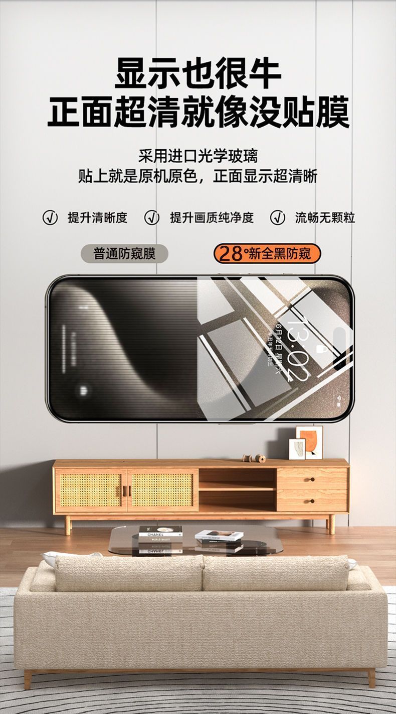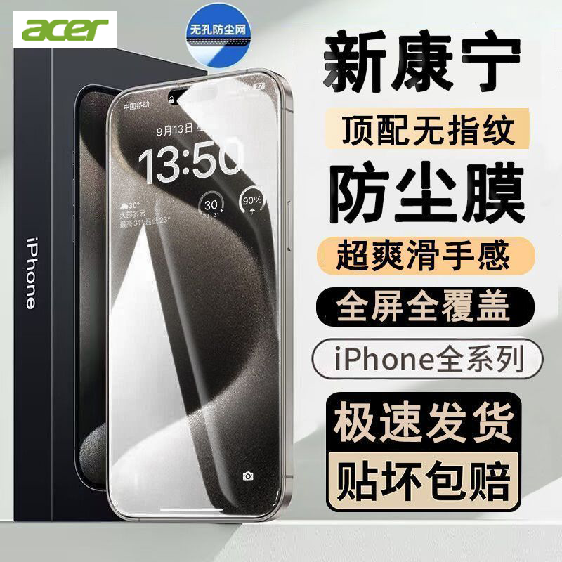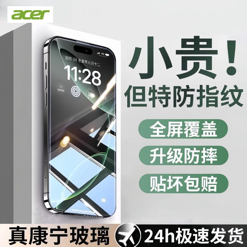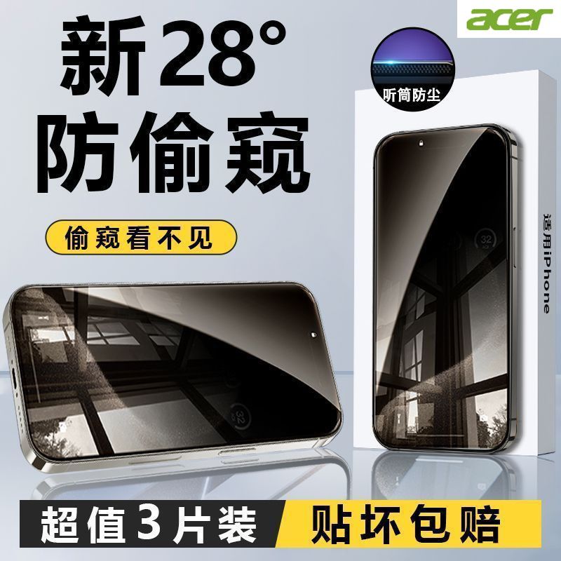 宏碁适用苹果钢化膜iphone16pro康宁15/14防窥不伤眼13钢化膜12