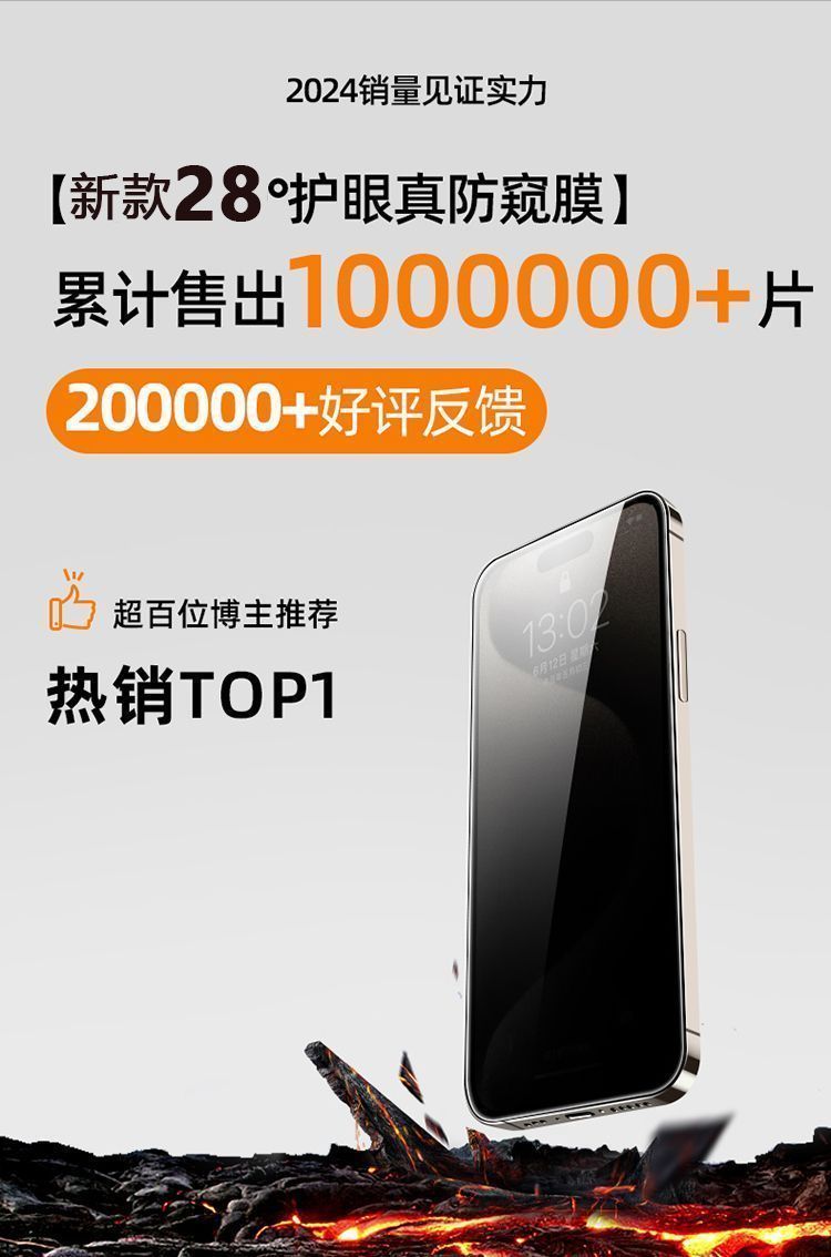 | 【蓝光1+防窥1】顺滑跟手/超防爆【进口康宁猩猩膜】 | USD $3.4 | 999999 piece available |