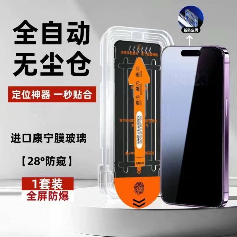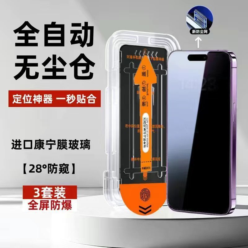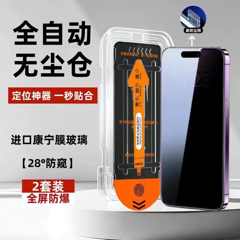 适用苹果15康宁钢化膜iPhone14pro防窥13/12全包无尘全屏手机膜
