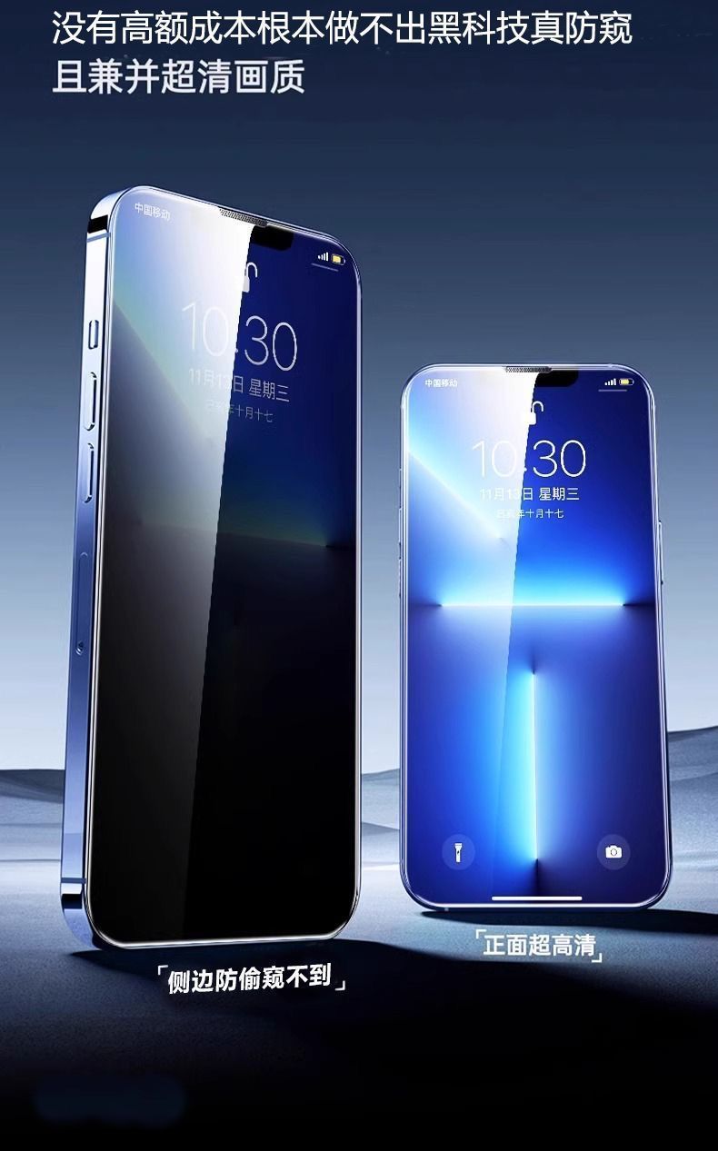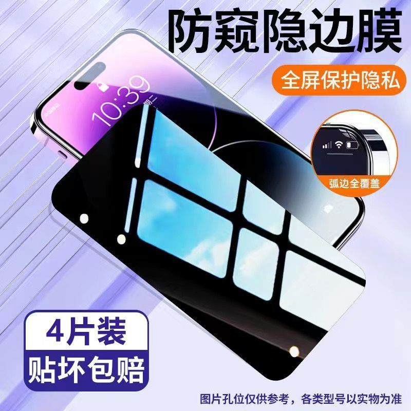 苹果15/14防窥膜iPhone13/12/11promax钢化膜XR/XS全屏678p手机膜