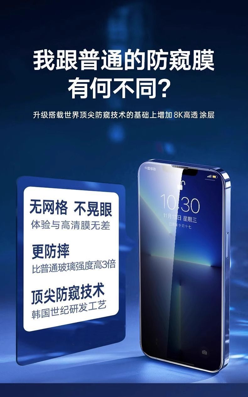 | 钻石康宁防爆*全屏不碎边【黑科技防窥】4片装 | USD $3.4 | 999999 piece available |