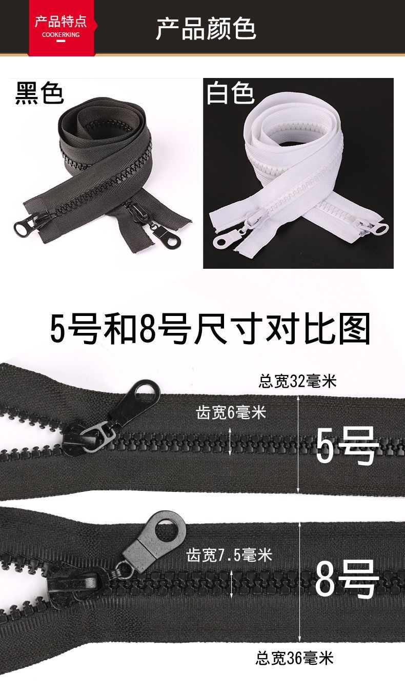 8号羽绒服拉链粗齿长款双头双开衣服外套专用大拉锁拉链头配件