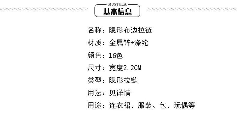 隐形拉链黑白彩色裙子玩具抱枕裤子服装锁头防爆防滑布边被套配件