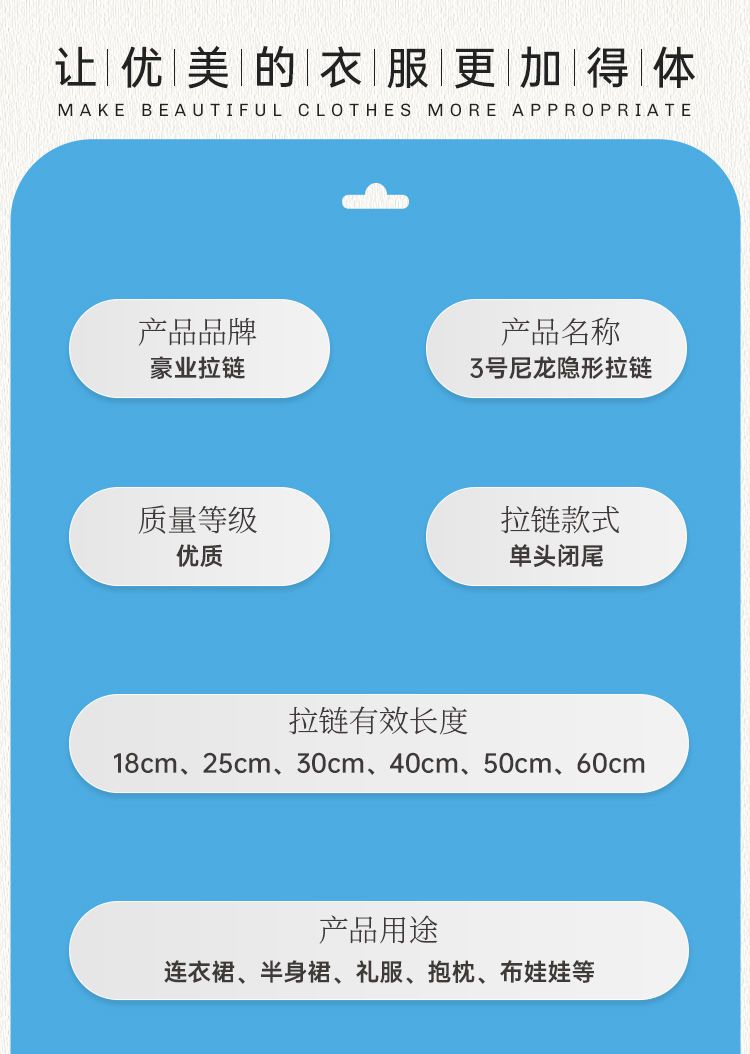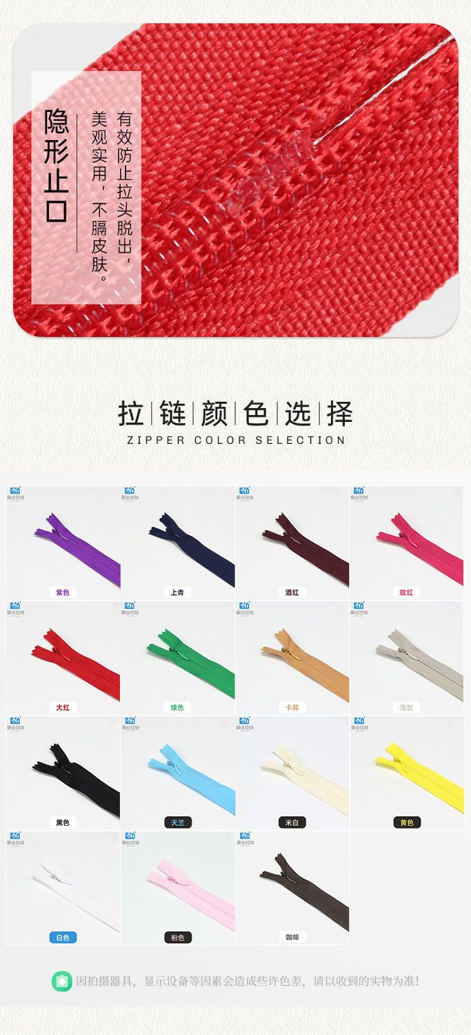 【5条装】隐形拉链3号尼龙闭尾抱枕连衣裙后背裤子侧拉链暗链