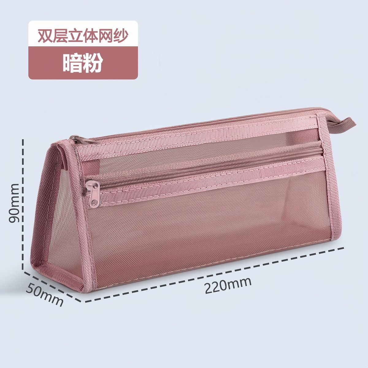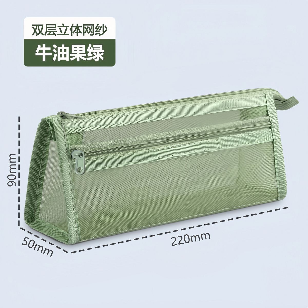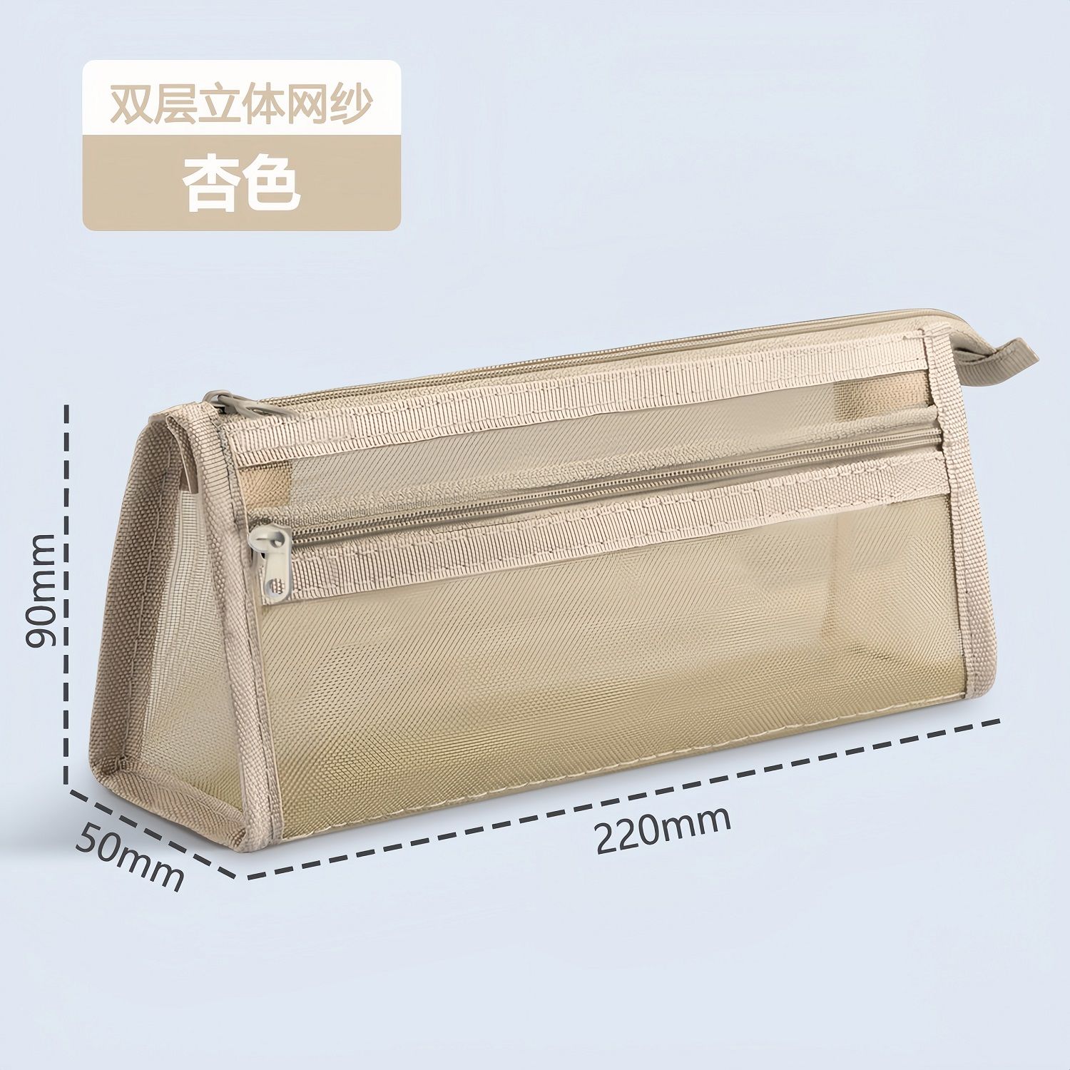 莫兰迪笔袋ins风简约透明网纱双层大容量学生考试拉链文具收纳袋
