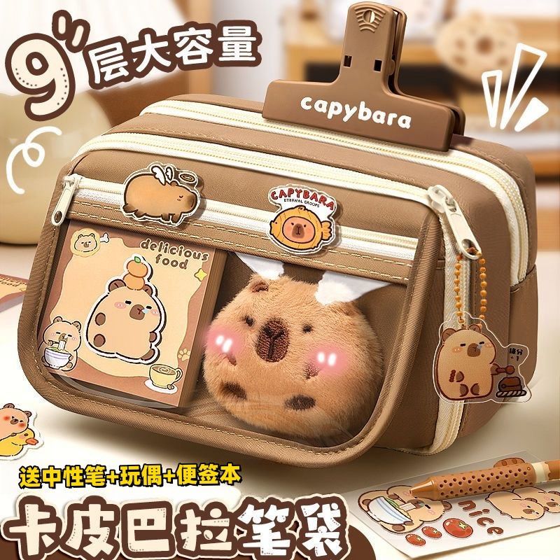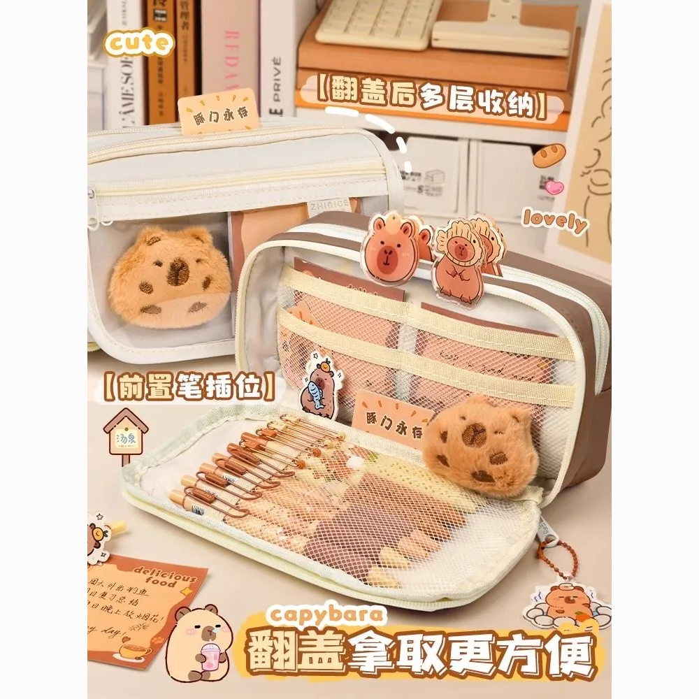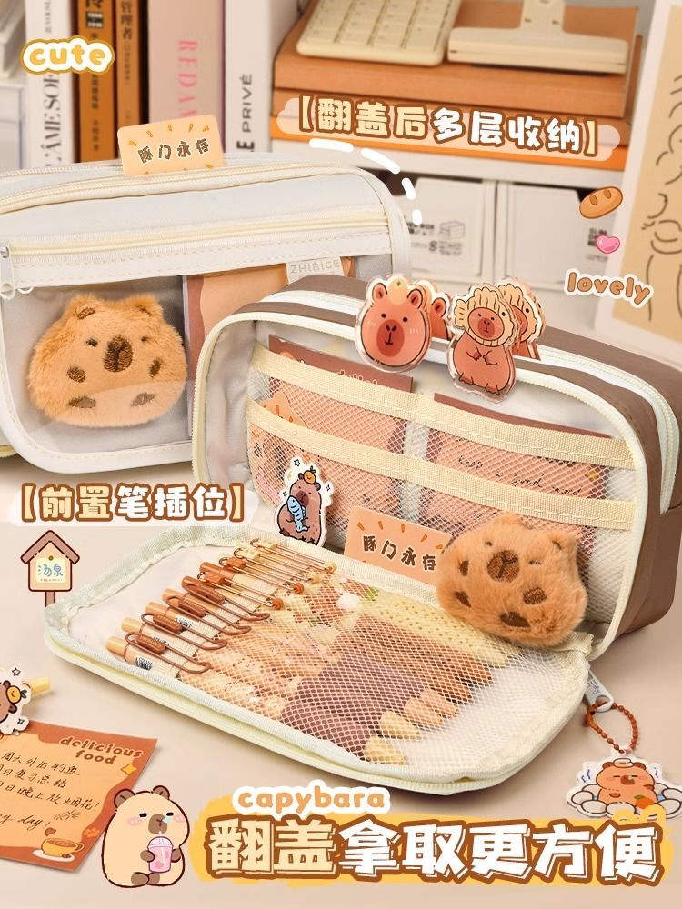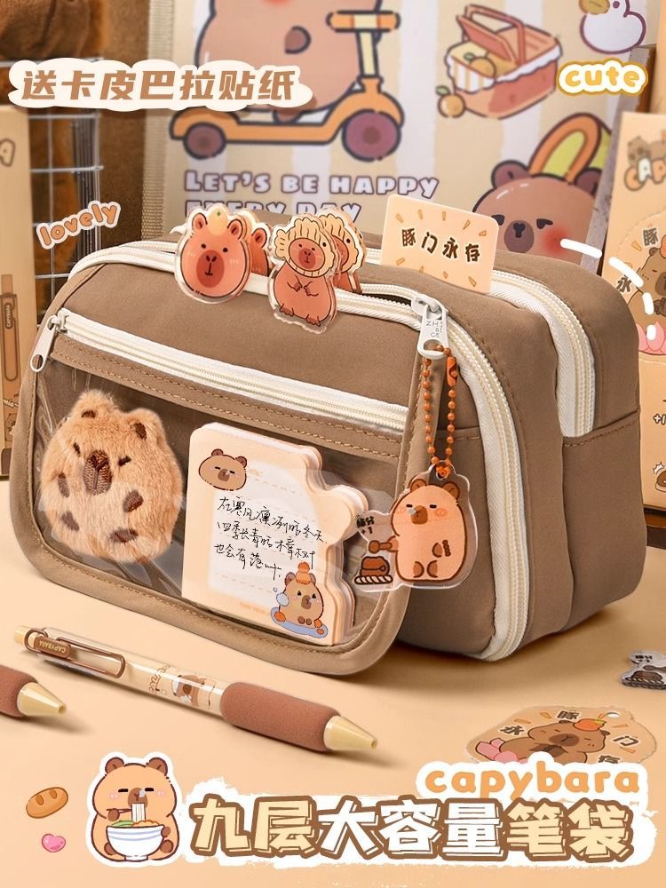 卡皮巴拉大容量笔袋女孩初中文具新款翻盖铅笔盒高颜值文具盒铅笔