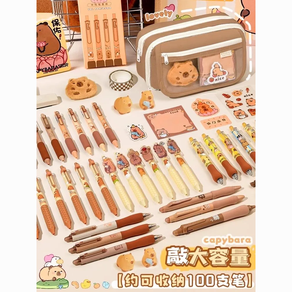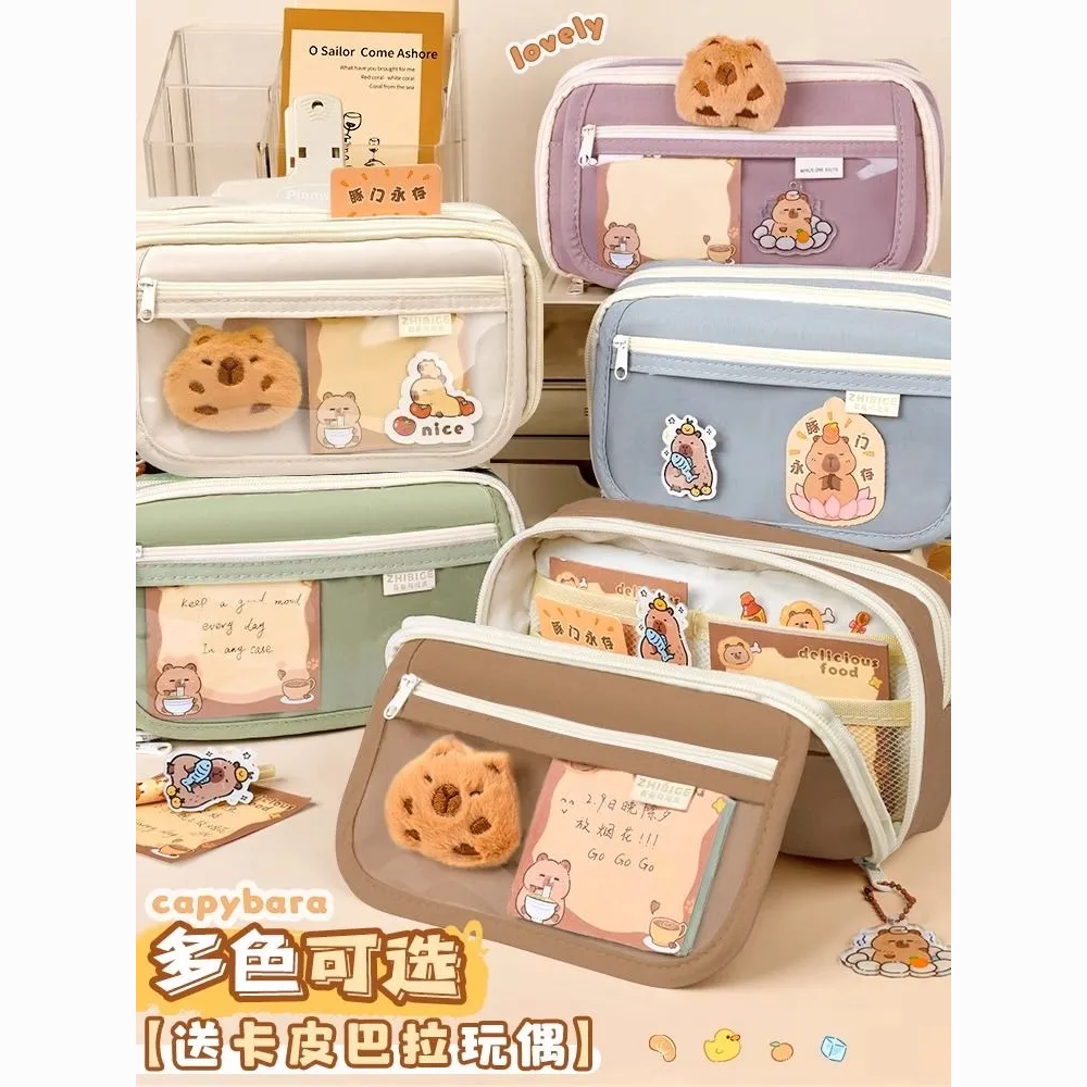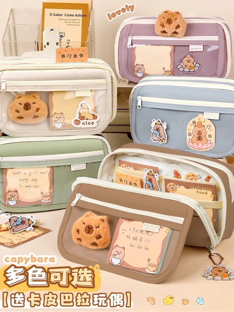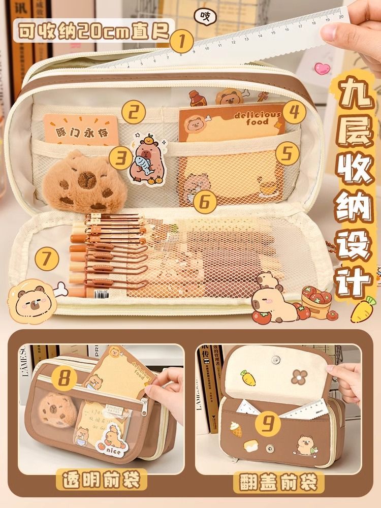 卡皮巴拉大容量笔袋女孩初中文具新款翻盖铅笔盒高颜值文具盒铅笔