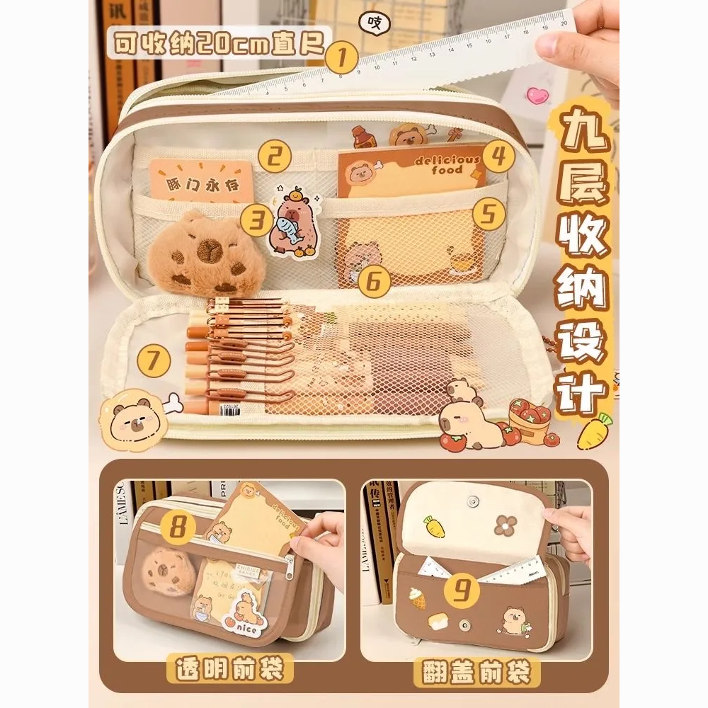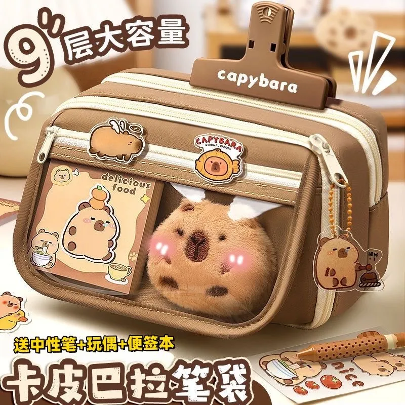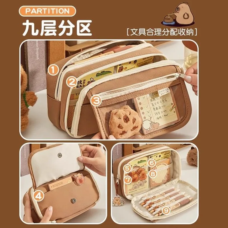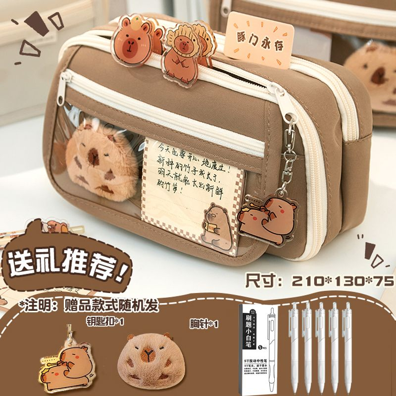| 九层大容量笔袋-卡皮咖色/送卡皮胸针+挂件 | USD $3.04 | 999999 piece available |