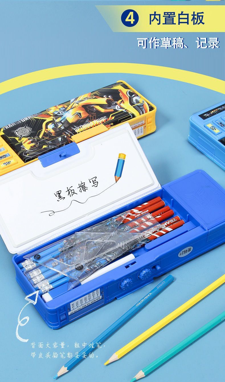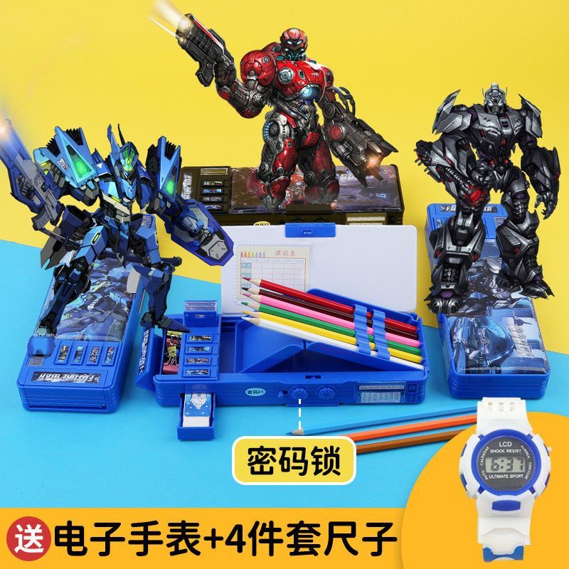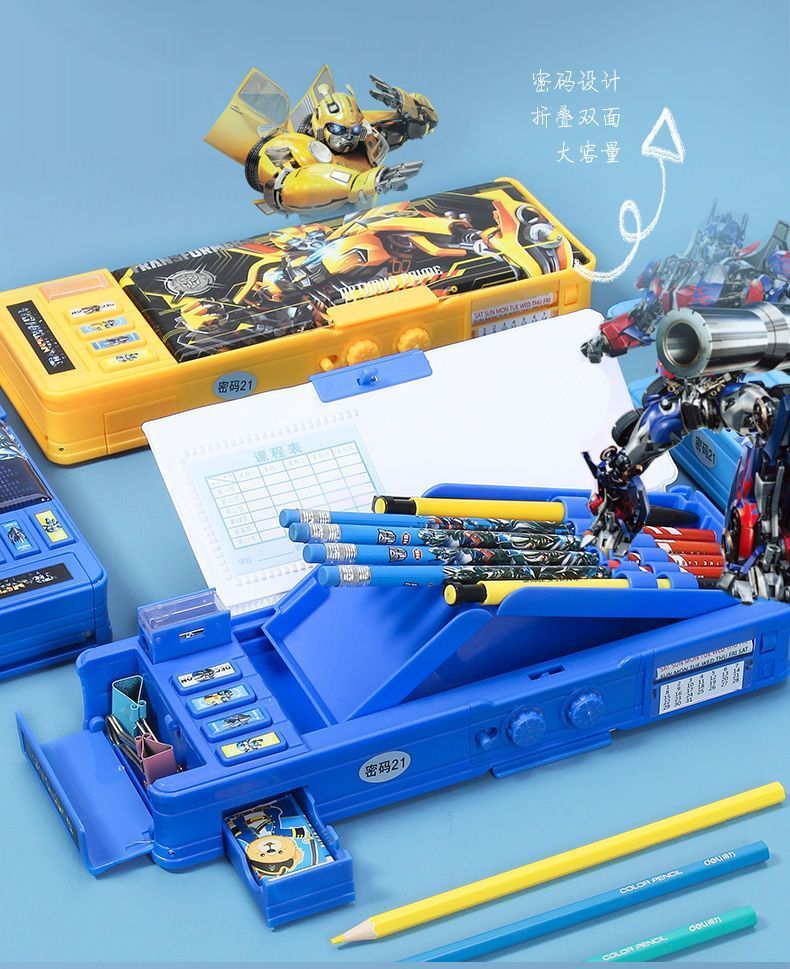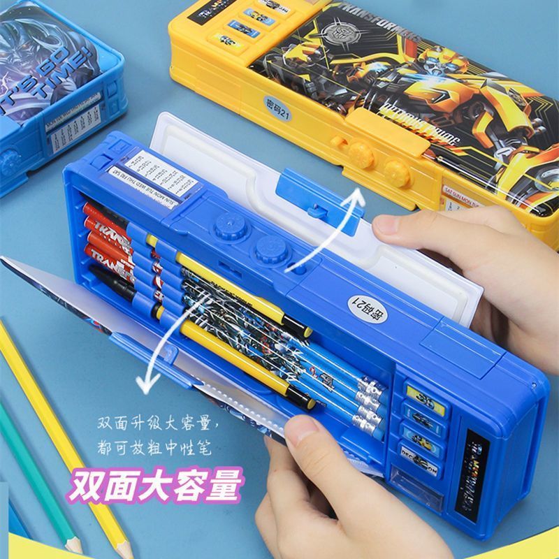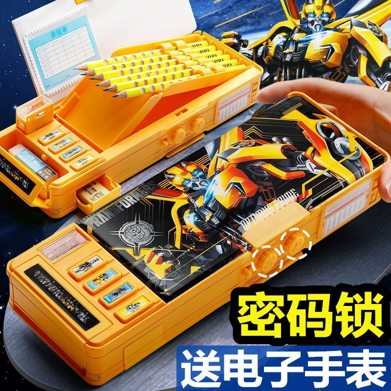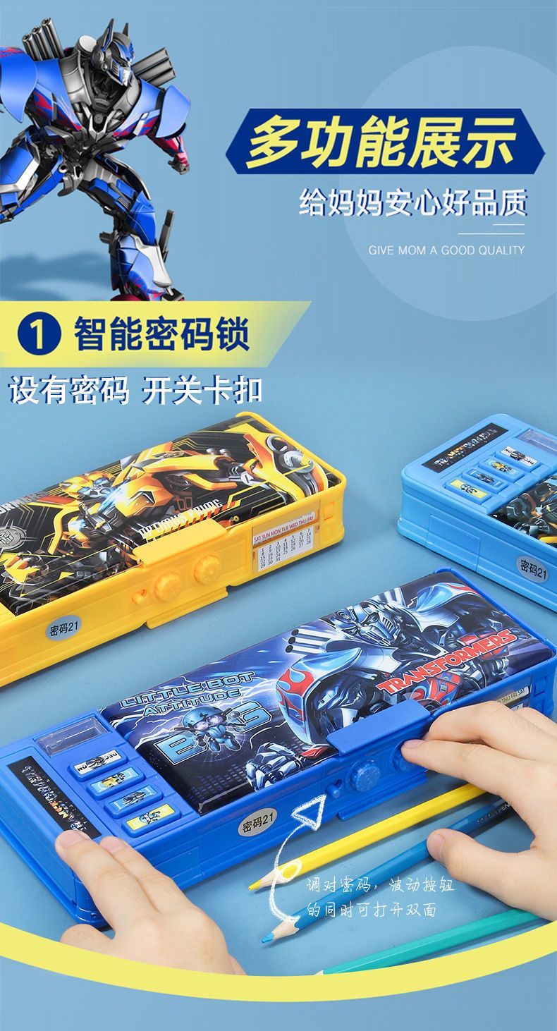 变形金刚文具盒男童小学生多功能按键蛋仔铅笔盒密码锁双面大容量