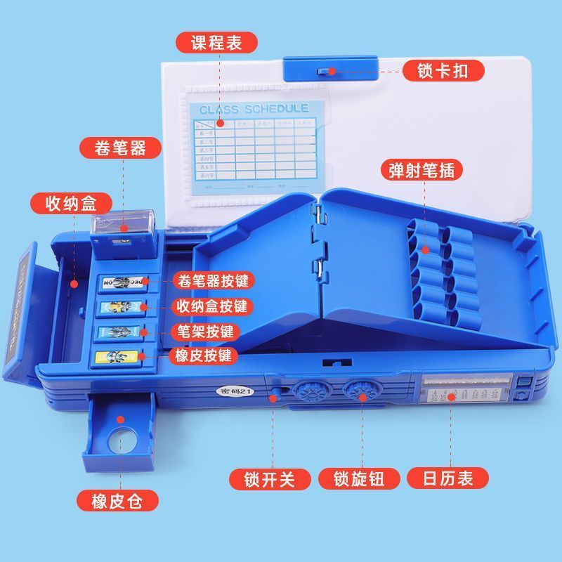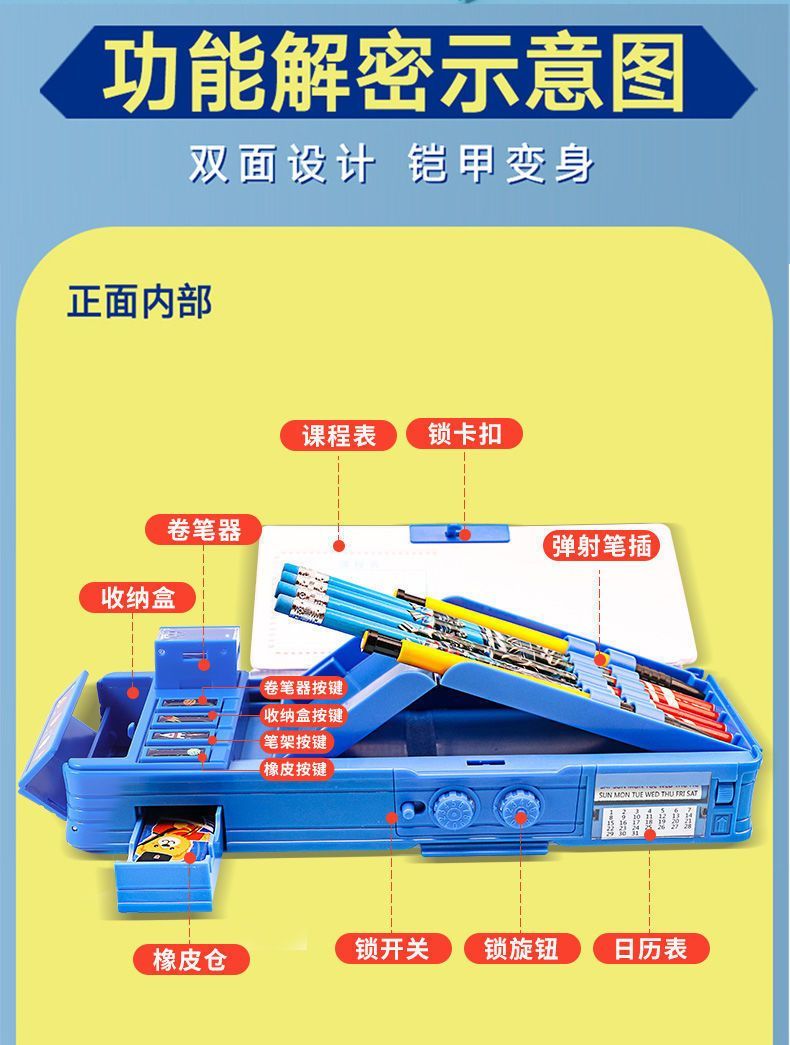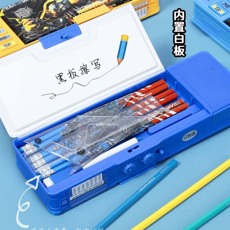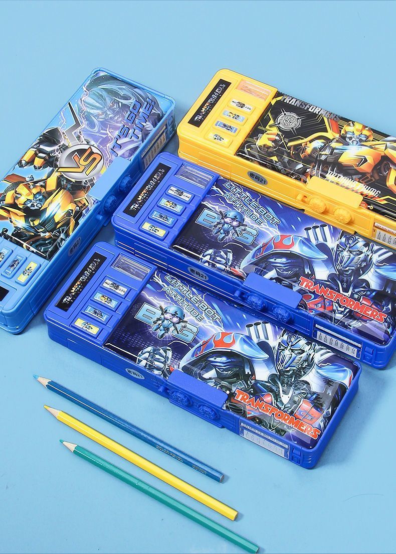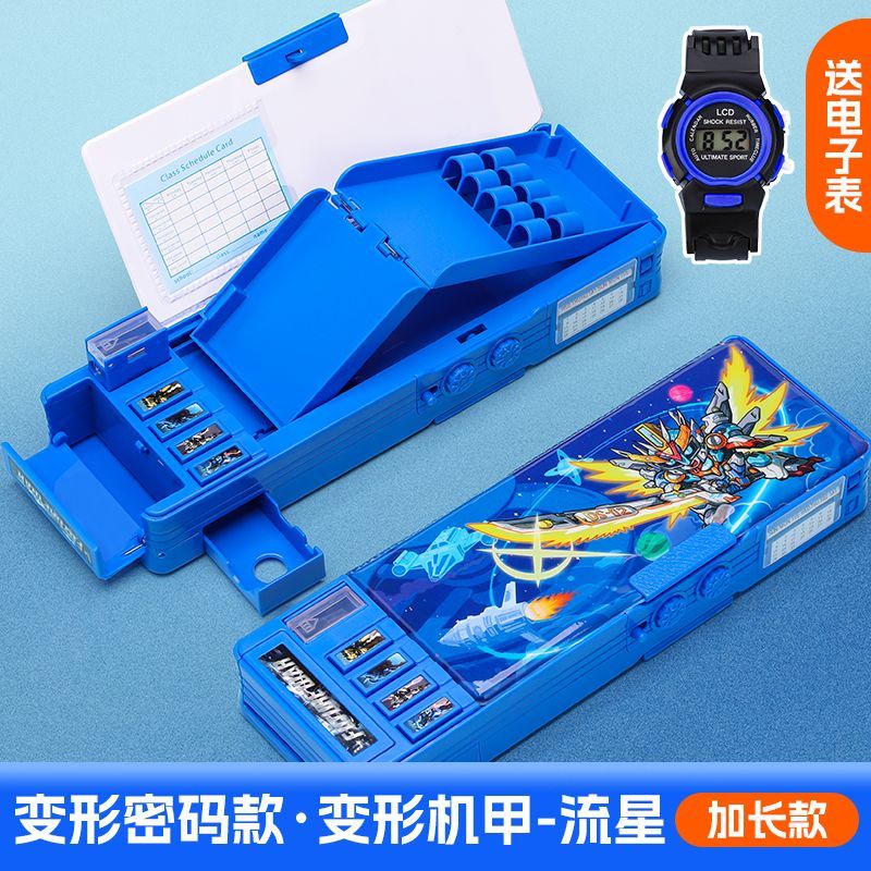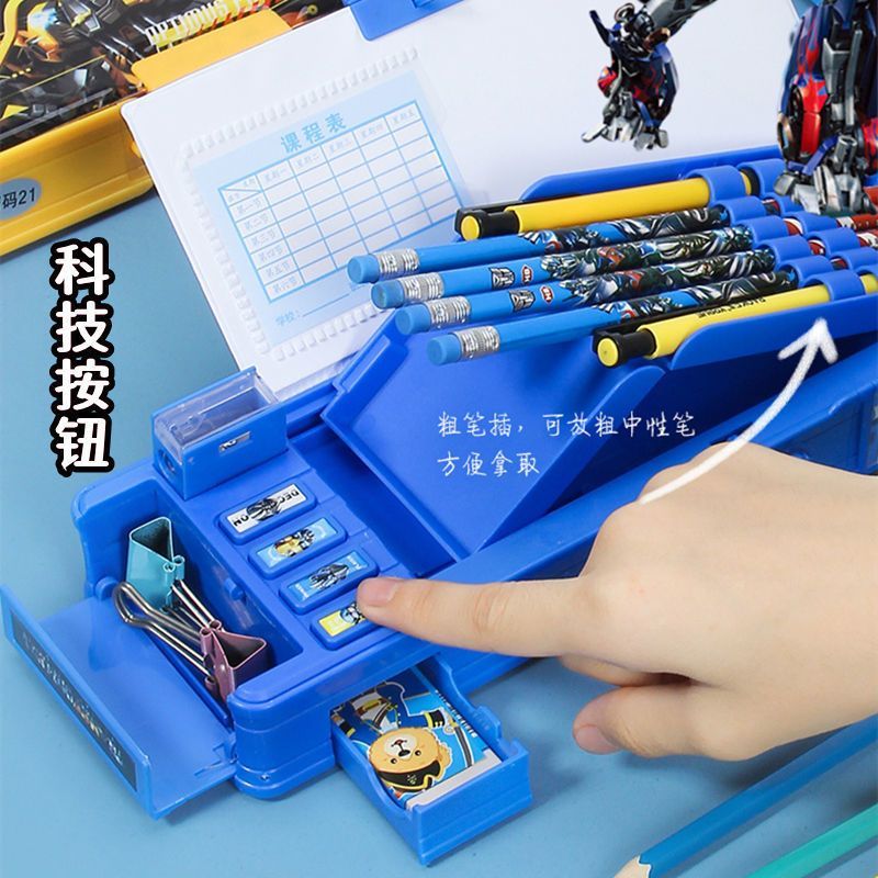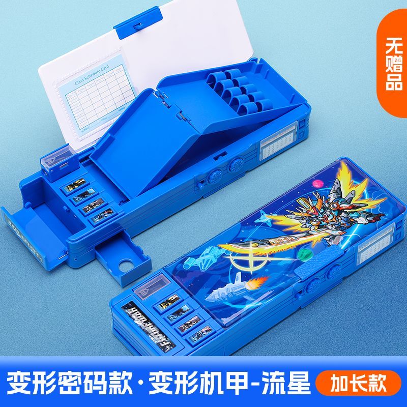 变形金刚文具盒男童小学生多功能按键蛋仔铅笔盒密码锁双面大容量