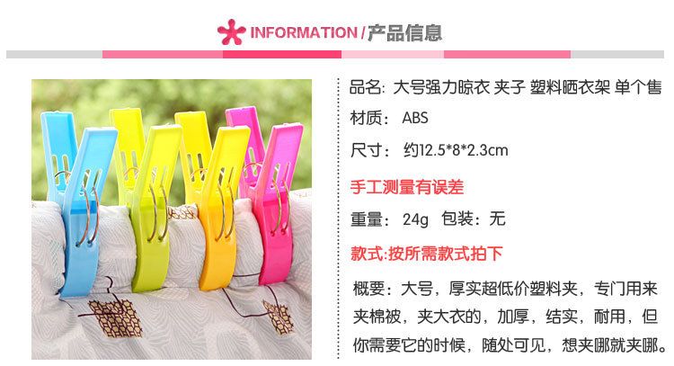 大号防风被子夹塑料夹防风衣夹大夹子衣服夹强力晒晾衣架夹棉被夹
