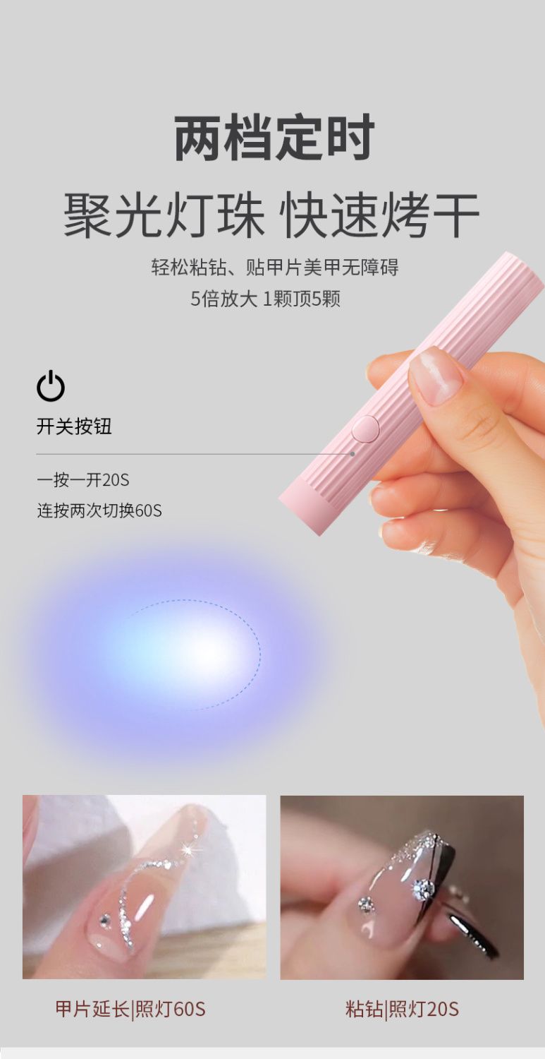 手持紫外线美甲一字灯小型便携充电美甲灯蓄电聚光款速干迷你光疗