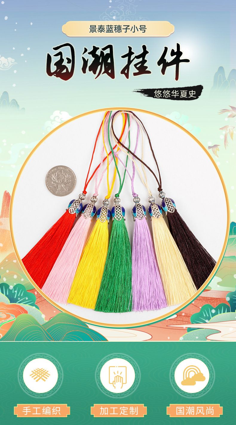 景泰蓝流苏穗子迷你皇冠柔顺亮光冰丝穗子书签配饰梳子手机吊穗子