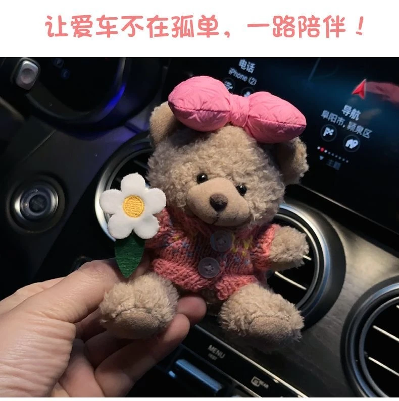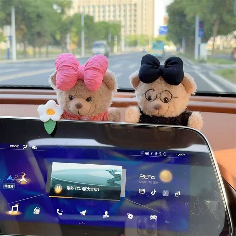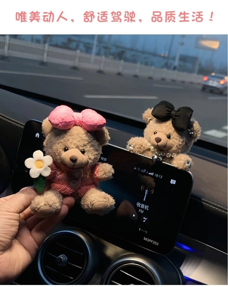 汽车创意可爱用品毛绒小熊屏幕摆件卡通车载装饰车内饰品中控女神