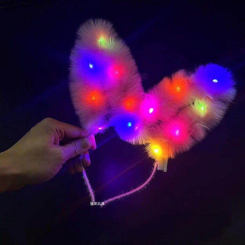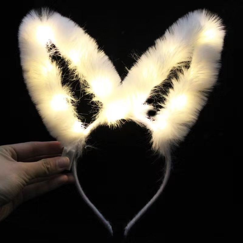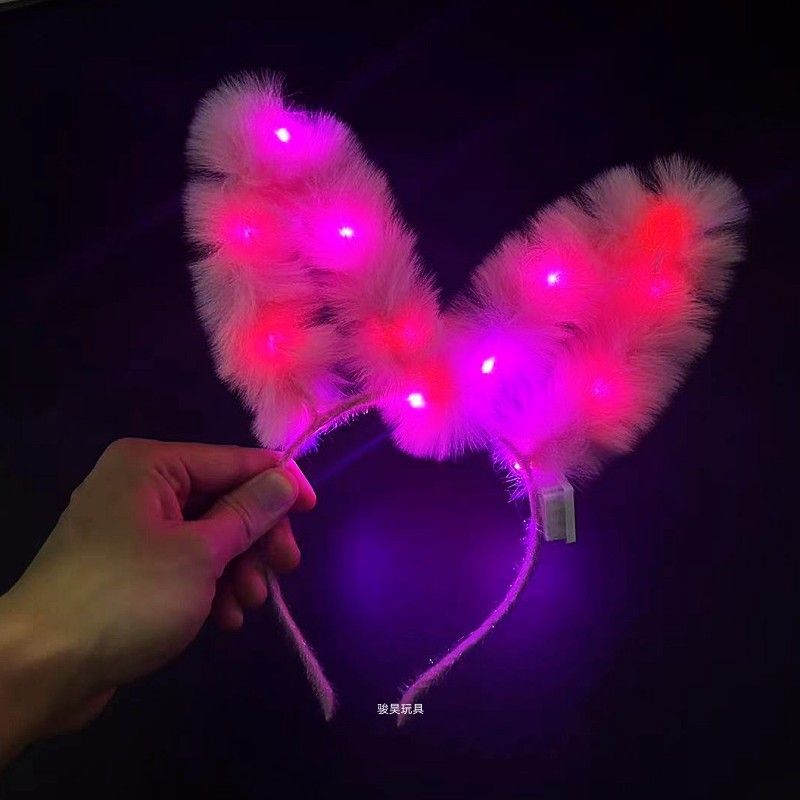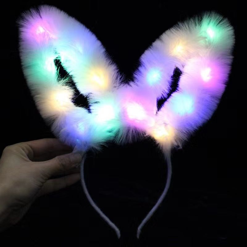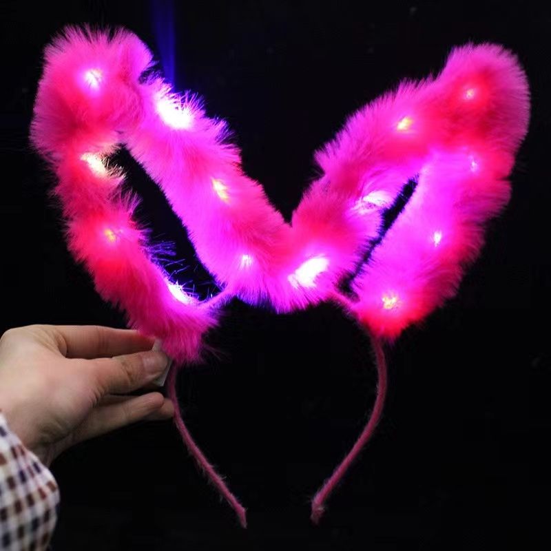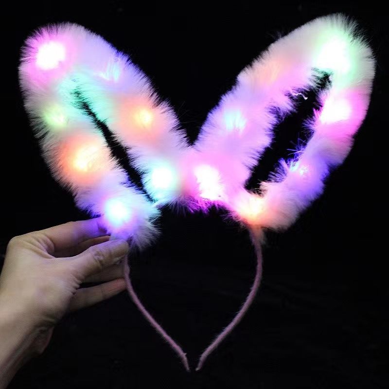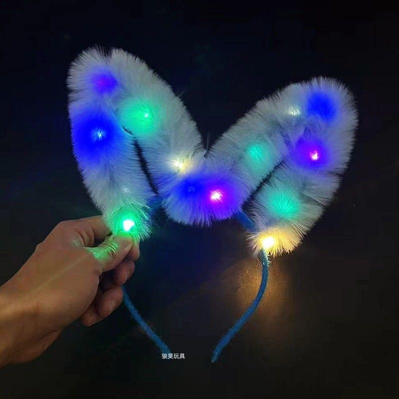 新款兔耳朵发光发箍演唱会演出活动道具带灯发箍儿童闪光头饰摆摊