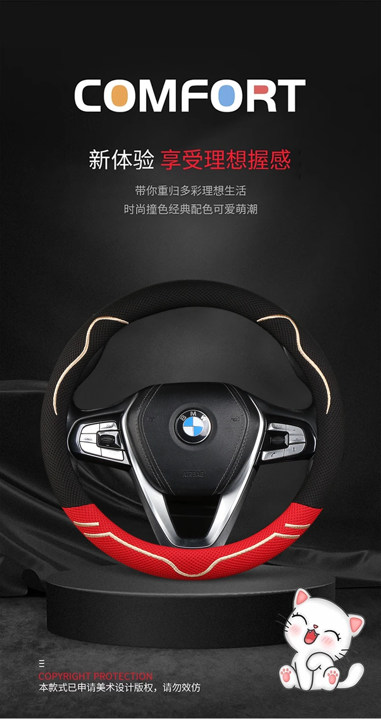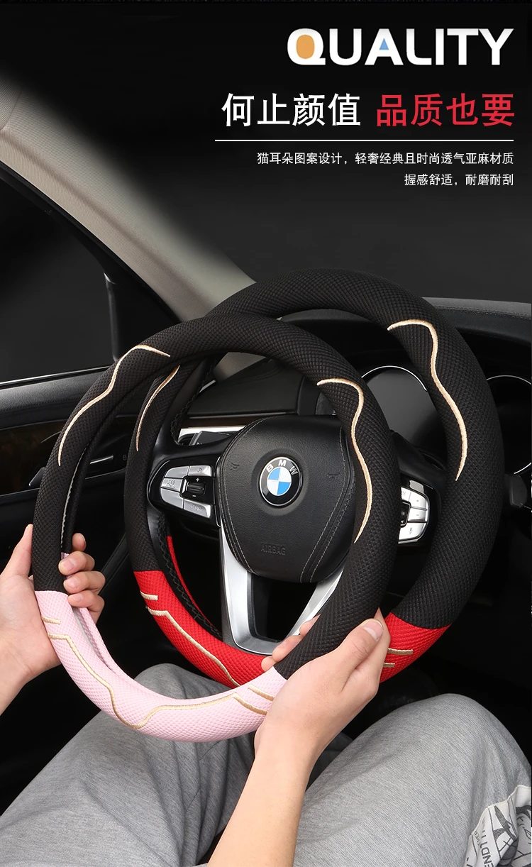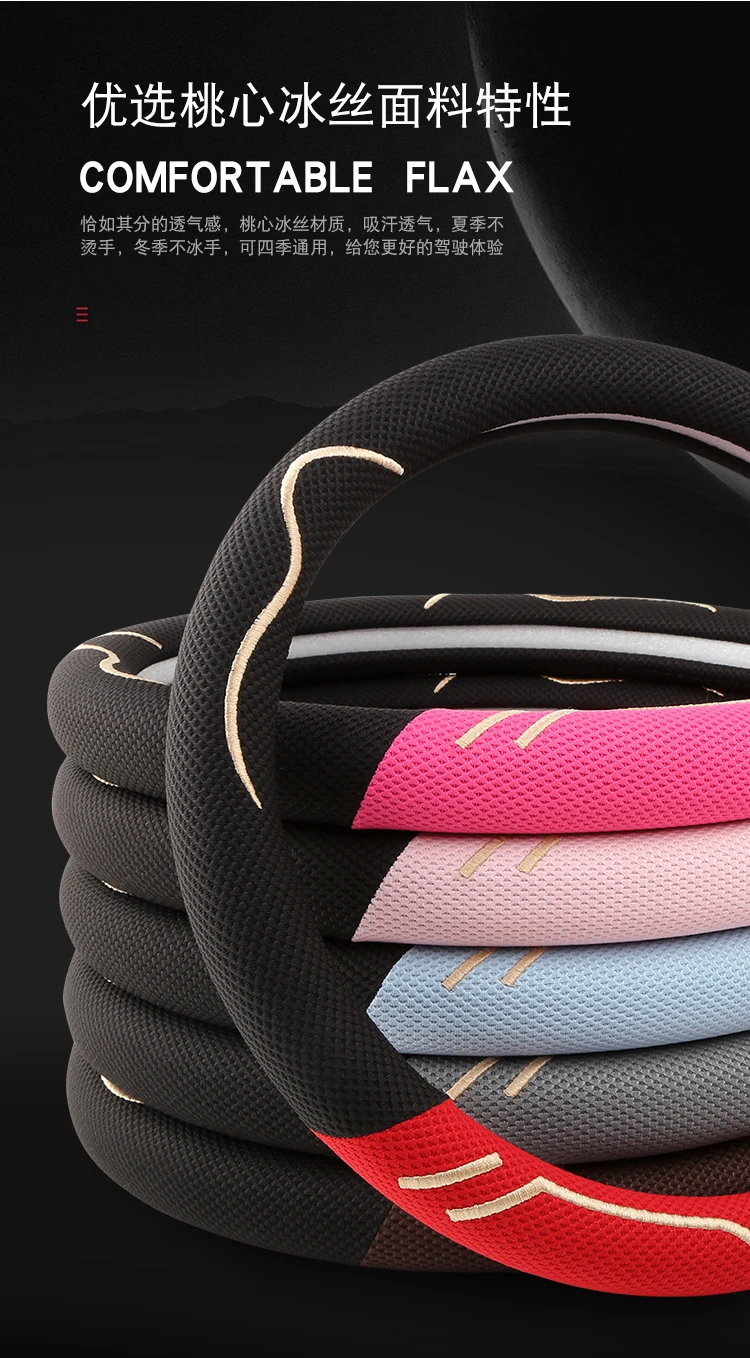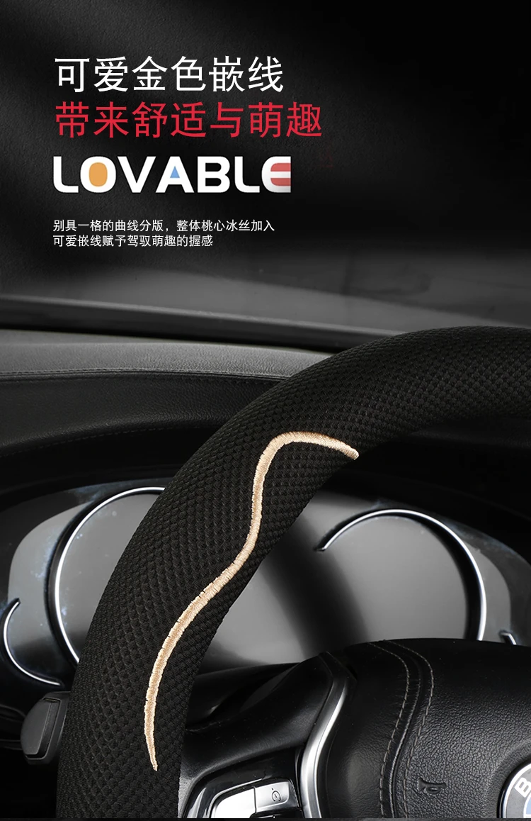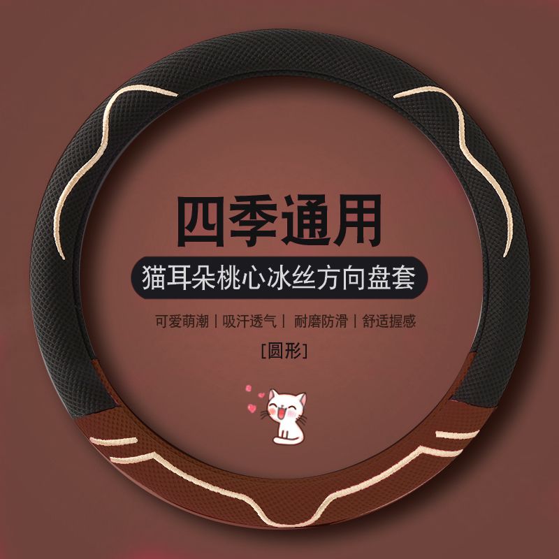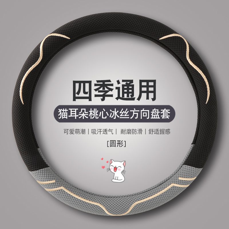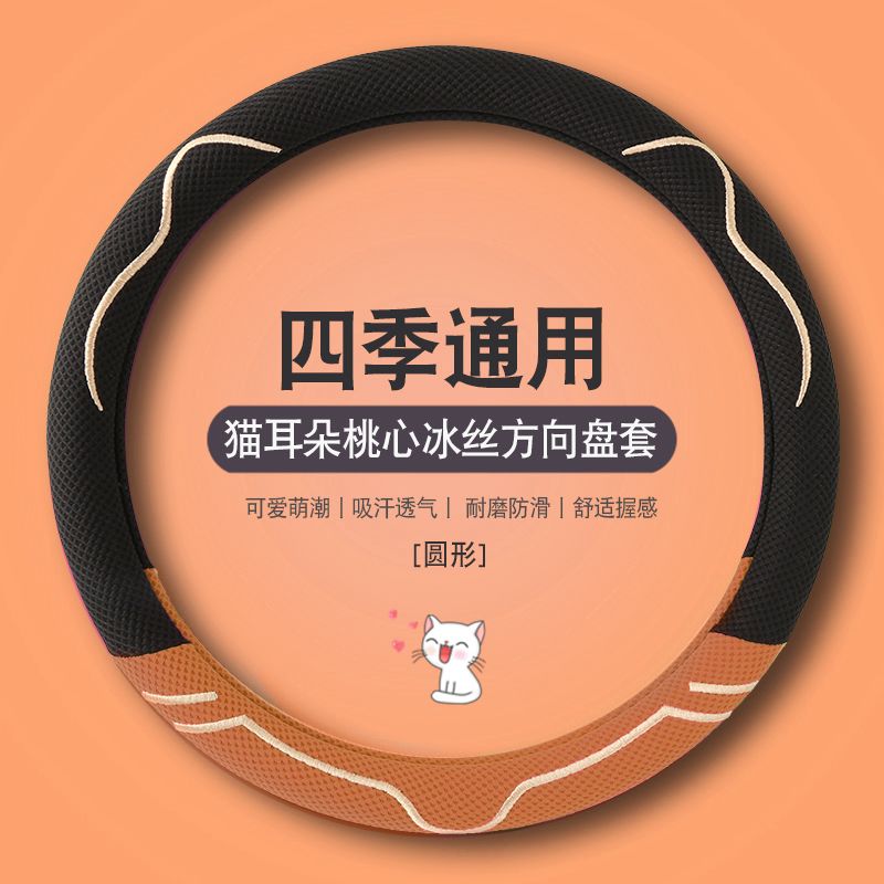 2024新款冰丝卡通可爱女四季通用网红汽车方向盘套夏季防滑透气
