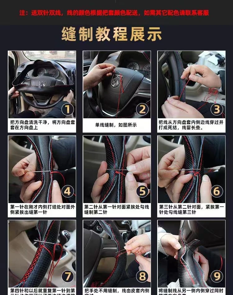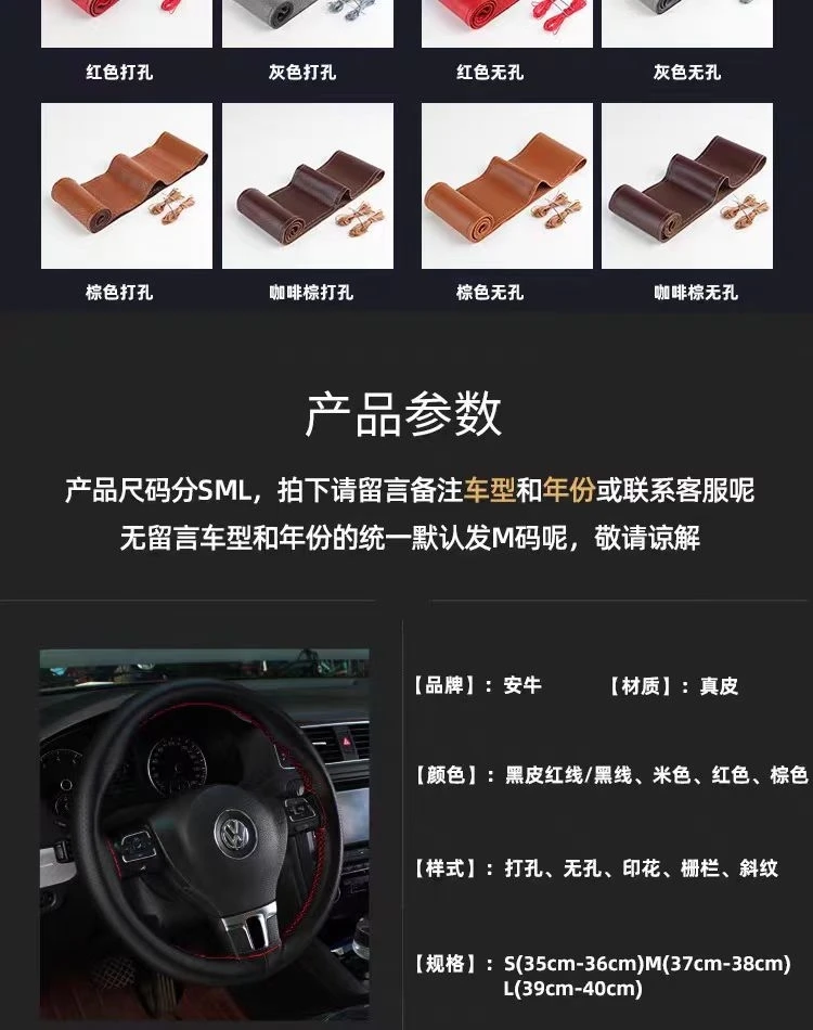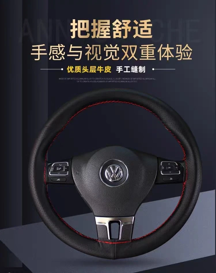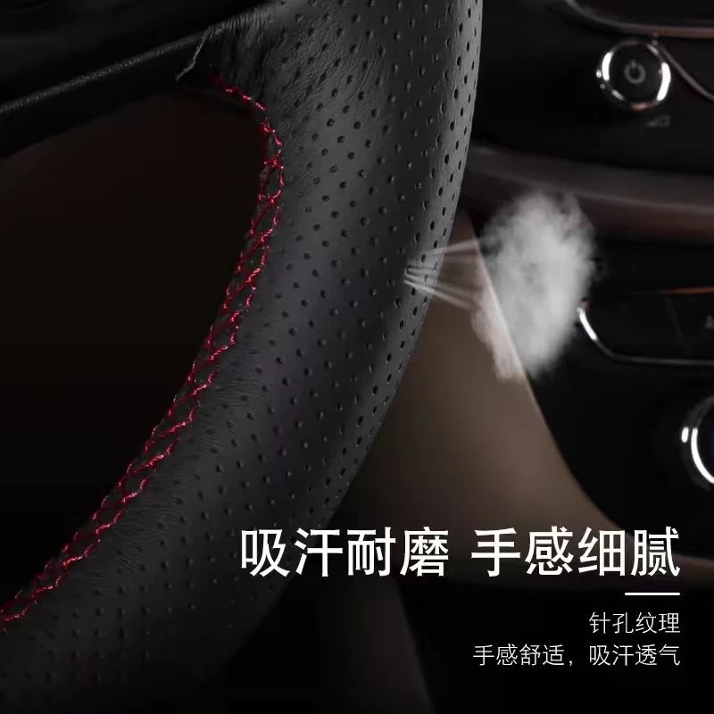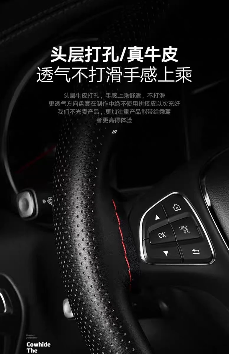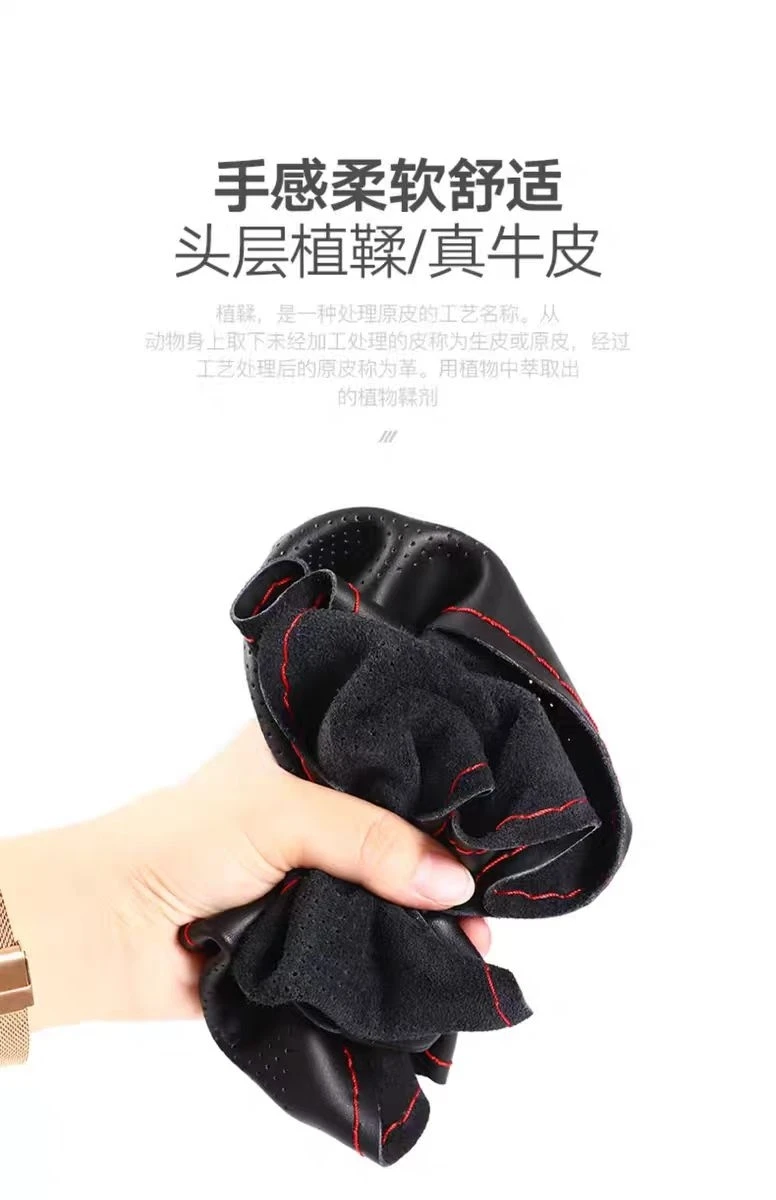 汽车方向盘套真皮手缝四季通用把套防滑吸汗头层皮套汽车方向盘套