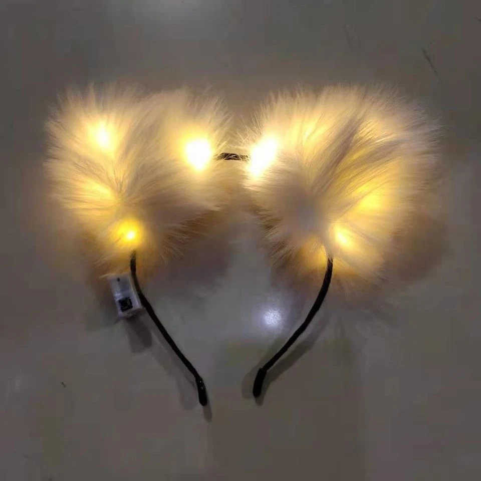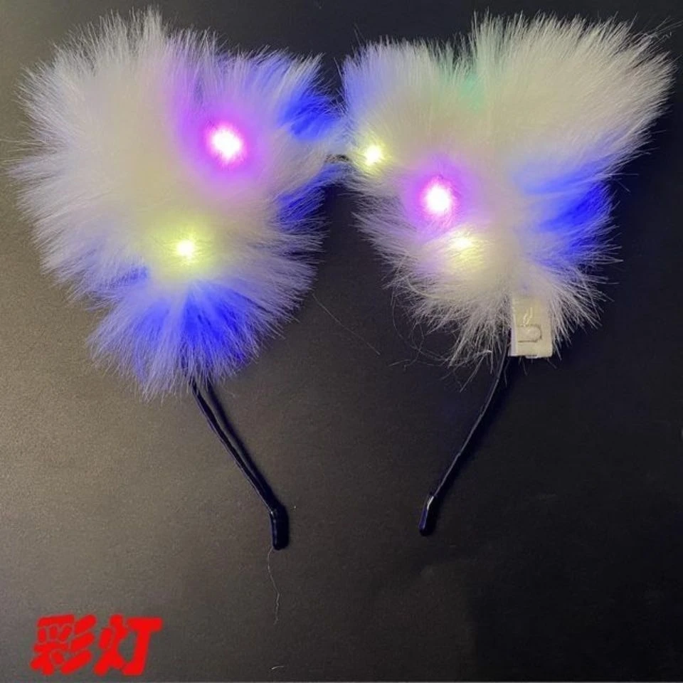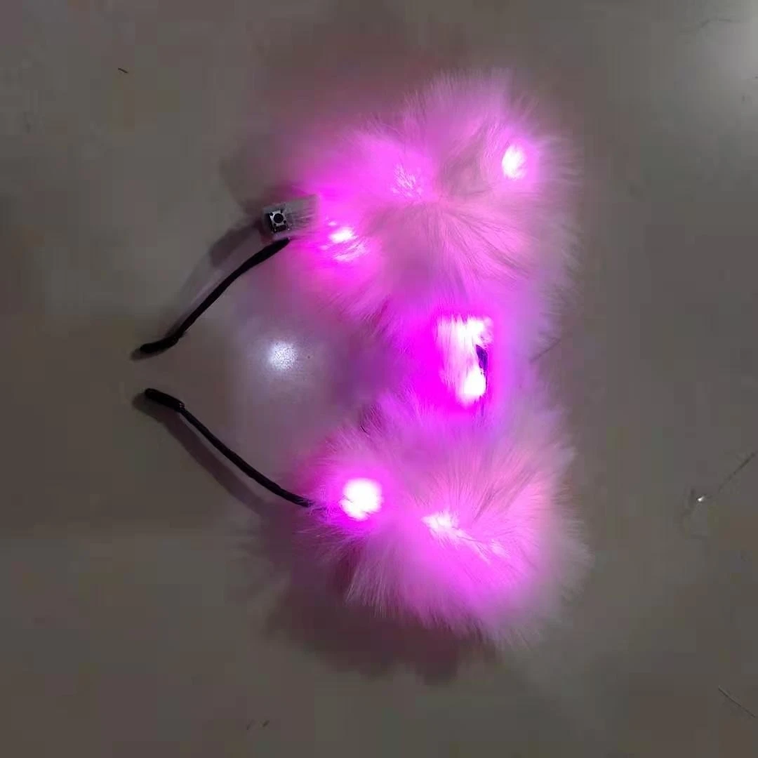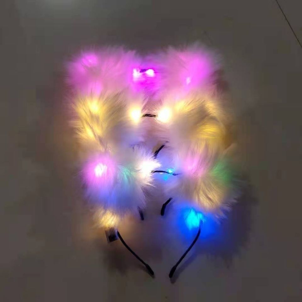 新款发光狐狸发箍毛绒耳朵头饰儿童可爱猫耳朵头箍发光头饰地摊热