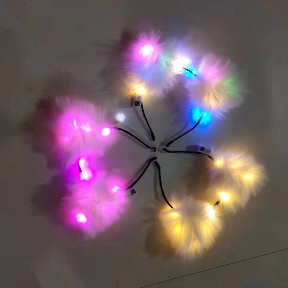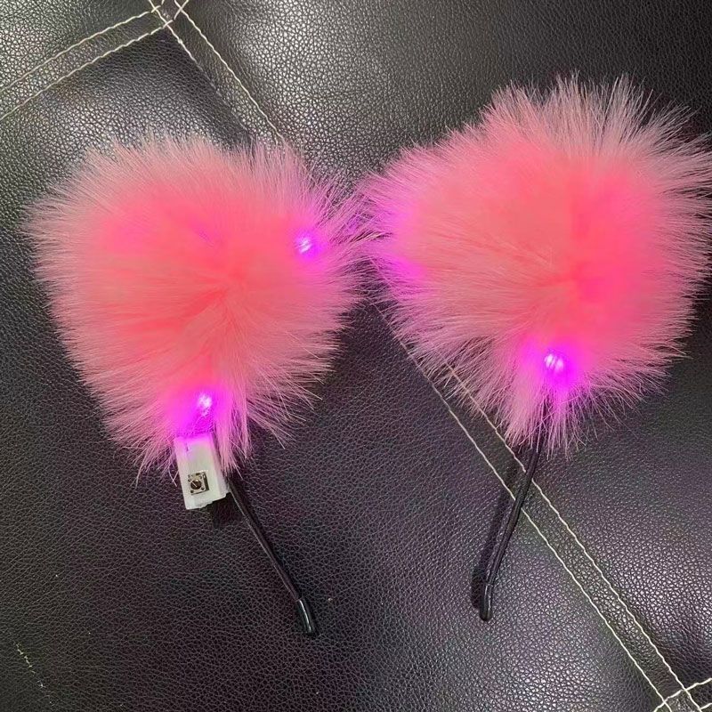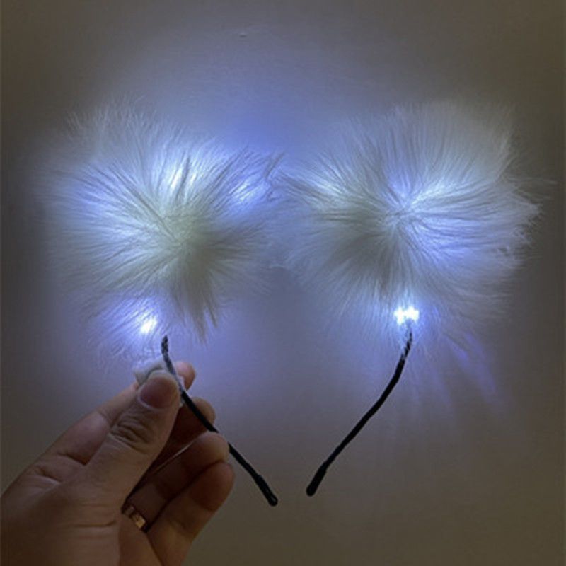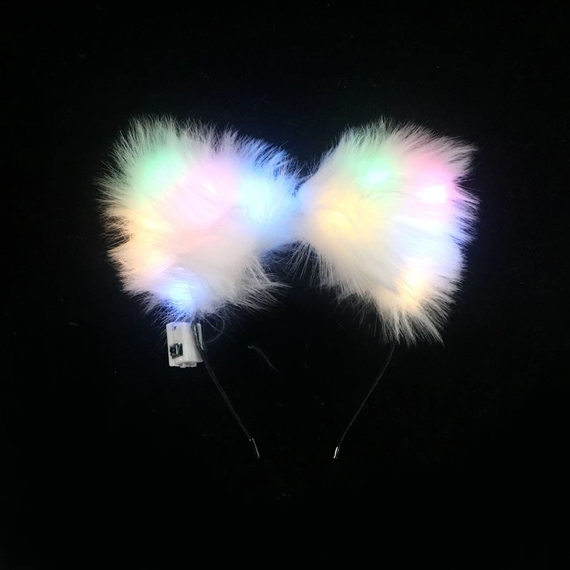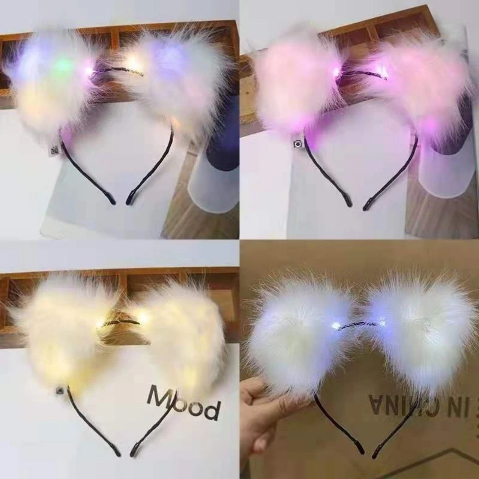 新款发光狐狸发箍毛绒耳朵头饰儿童可爱猫耳朵头箍发光头饰地摊热