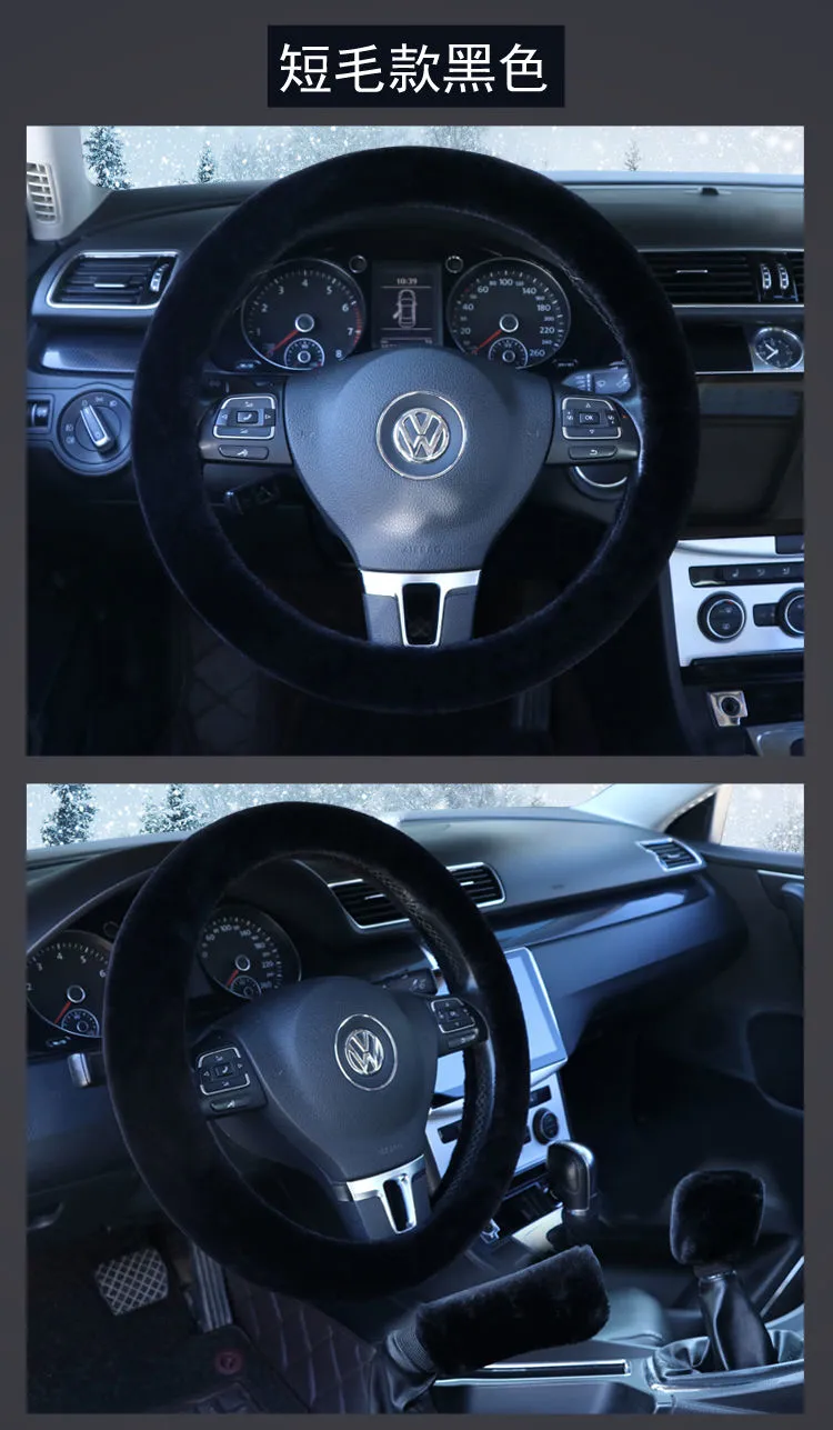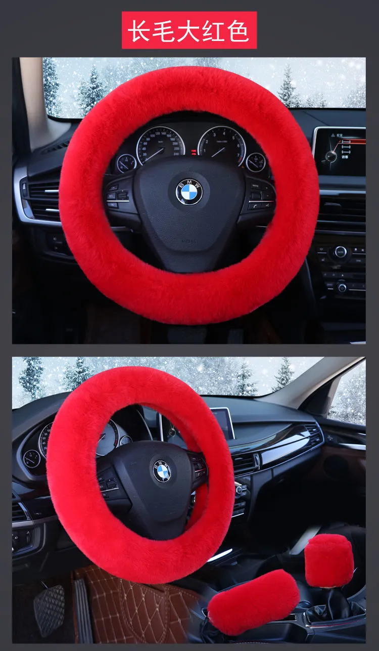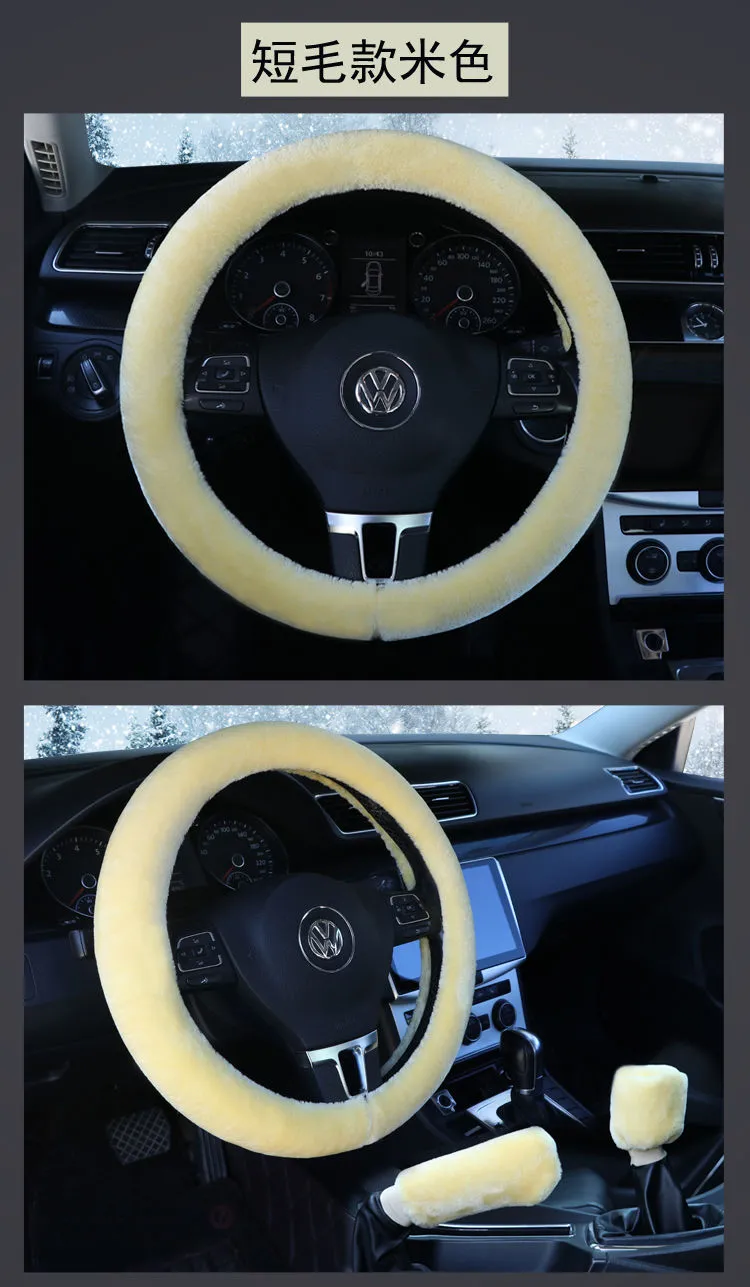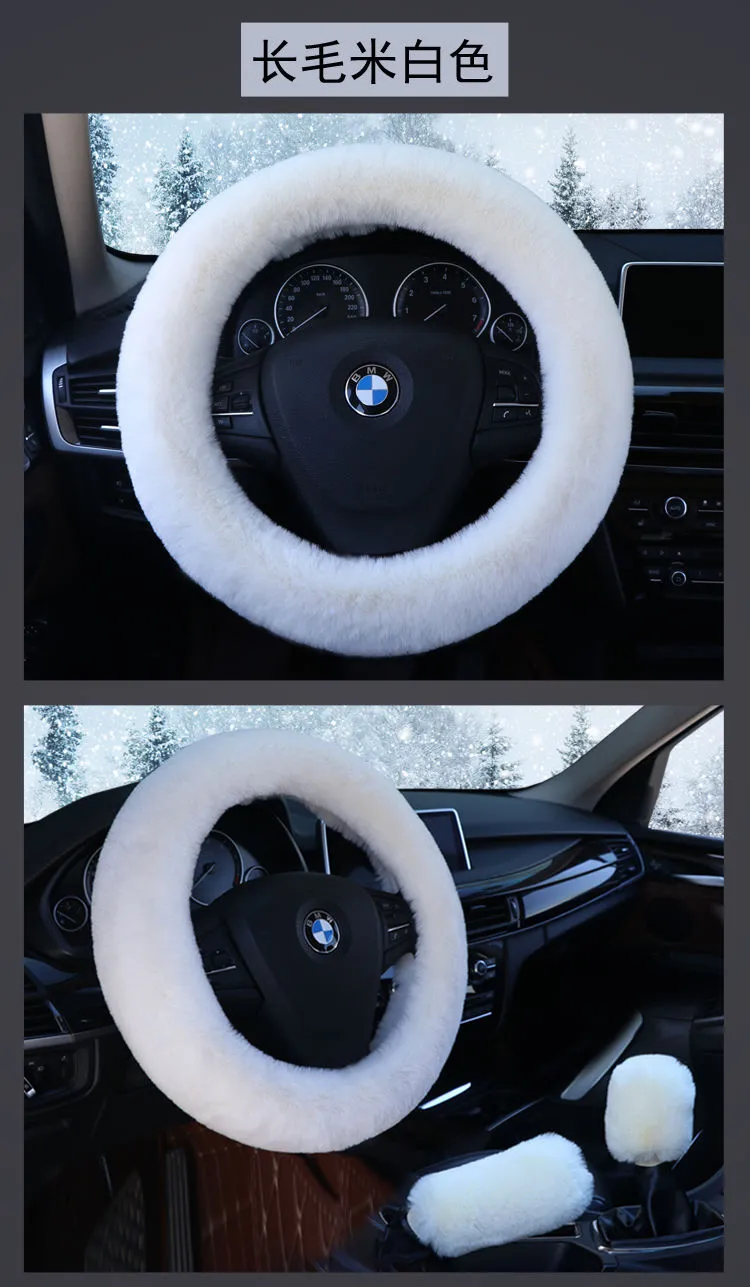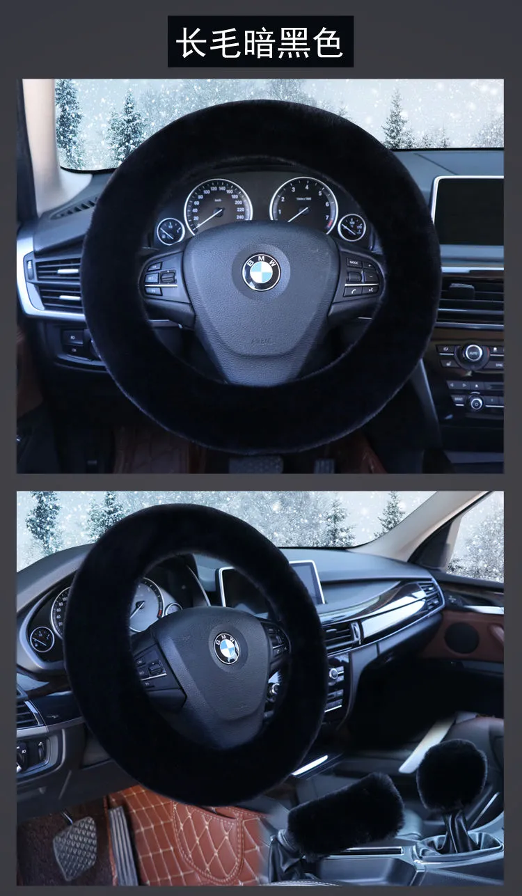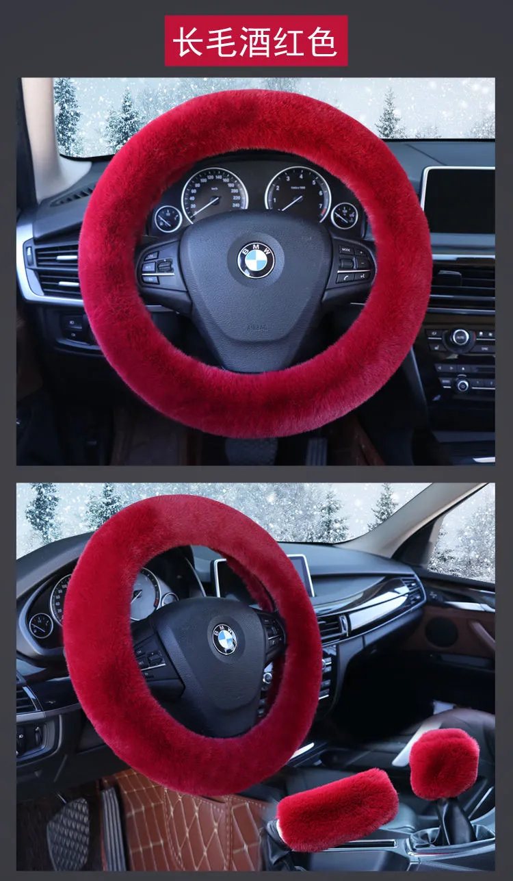 冬季长毛绒方向盘套男女新款保暖防滑汽车通用把套档位手刹三件套