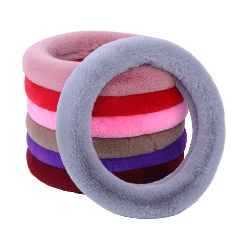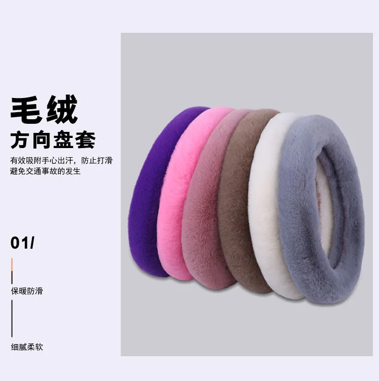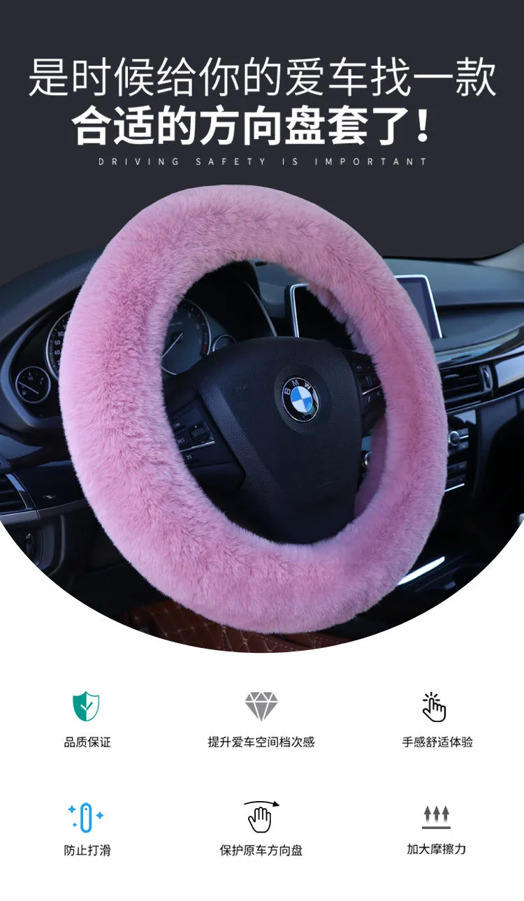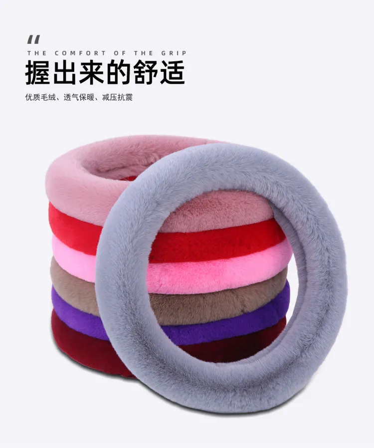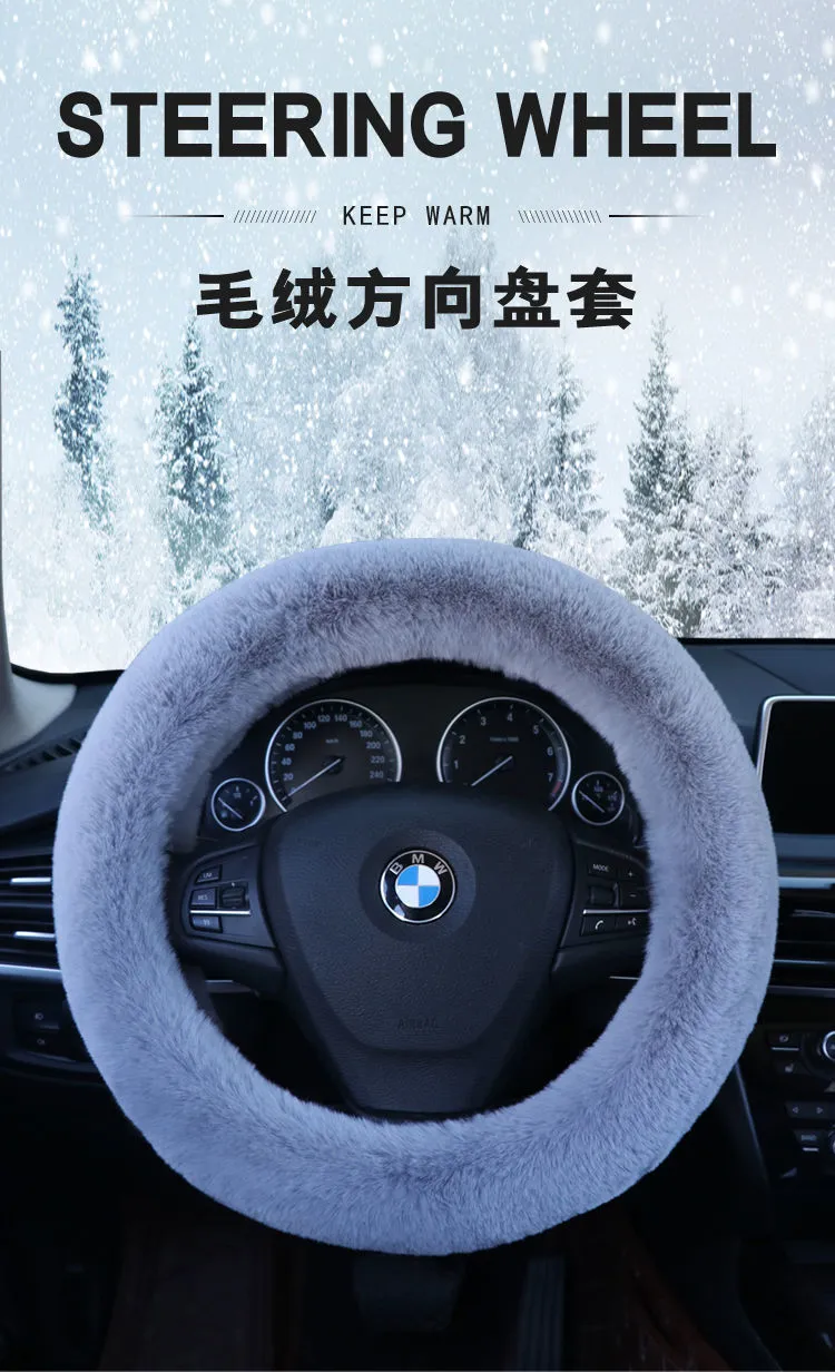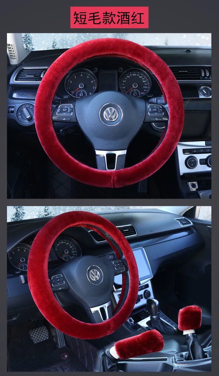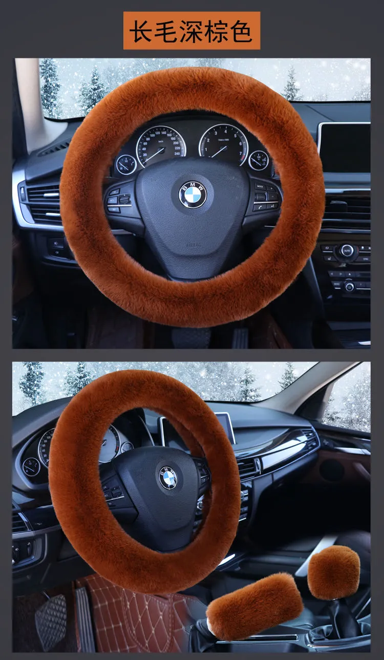 冬季长毛绒方向盘套男女新款保暖防滑汽车通用把套档位手刹三件套